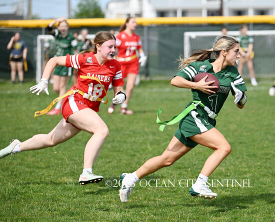 OCEAN CITY – The Ocean City High School girls flag football team hosted rival Mainland Regional May 12 at the Sixth Street field. The Red Raiders (5-7) beat the visiting Mustangs (4-7-1). It was a close game to the end, with big pass plays and runs to touchdowns. Ocean City prevailed, 26-20. See recent feature […]
