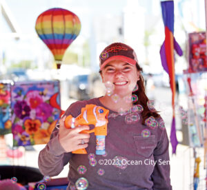 Ashley Rauenzahn of boardwalk business Air Circus blows bubbles to heighten the festive mood of the annual Spring Block Party that attracted tens of thousands of people to Asbury Avenue Saturday. Hundreds of vendors were along the avenue from Fifth to 14th streets with a wide array of items and food for sale.