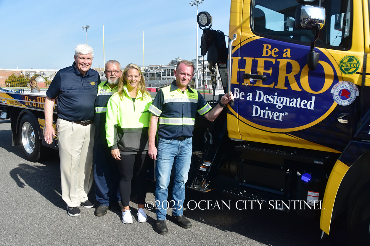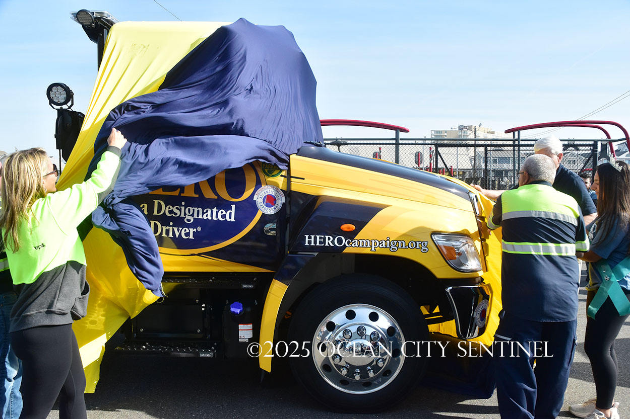 Each year, the HERO Campaign unveils one or more vehicles wrapped in its logo, usually police patrol cars, now numbering 41. This year, for the first time, a tow truck was unveiled.