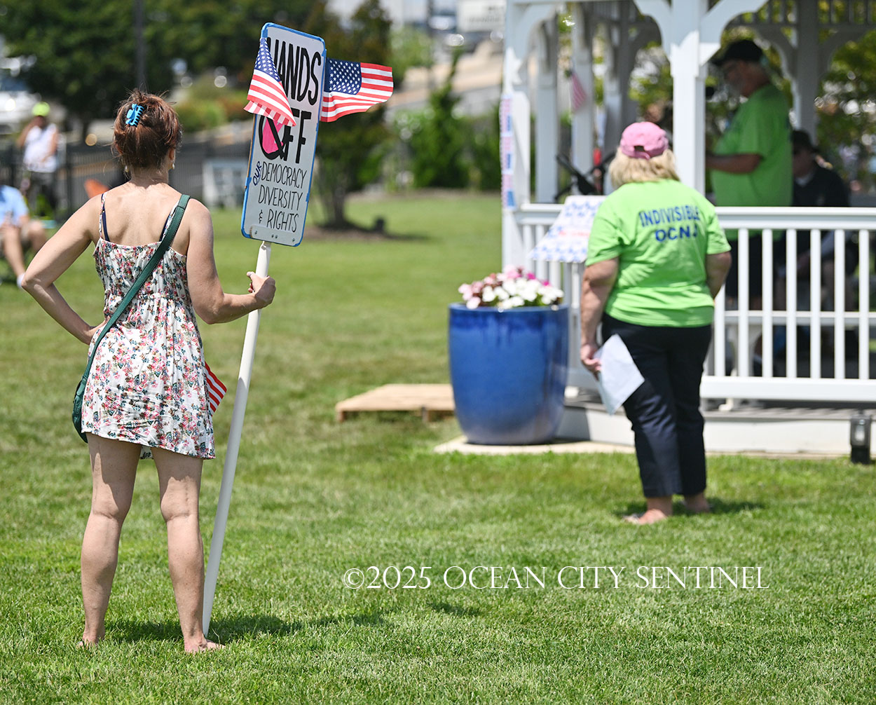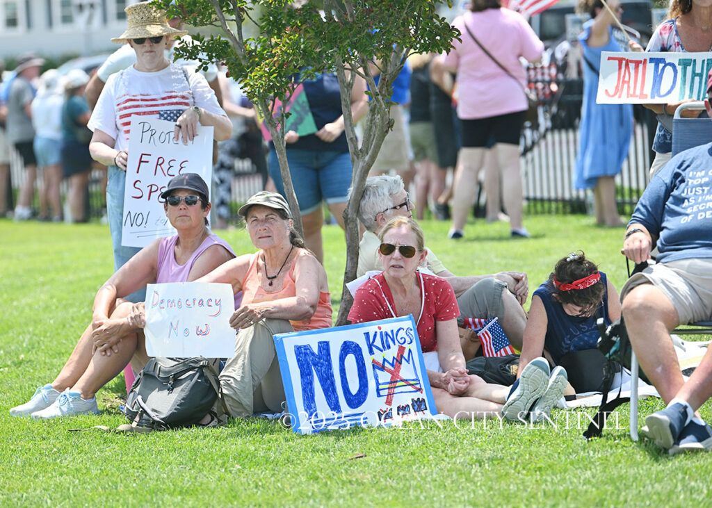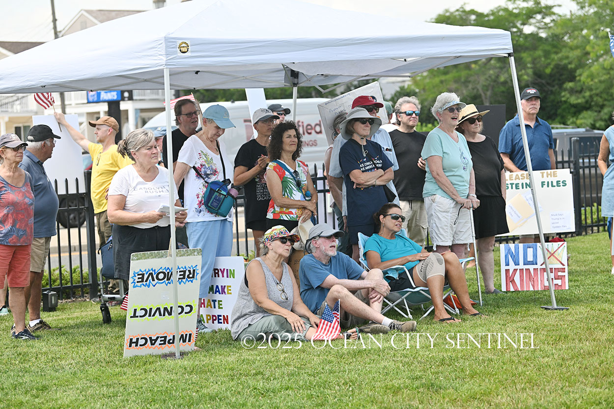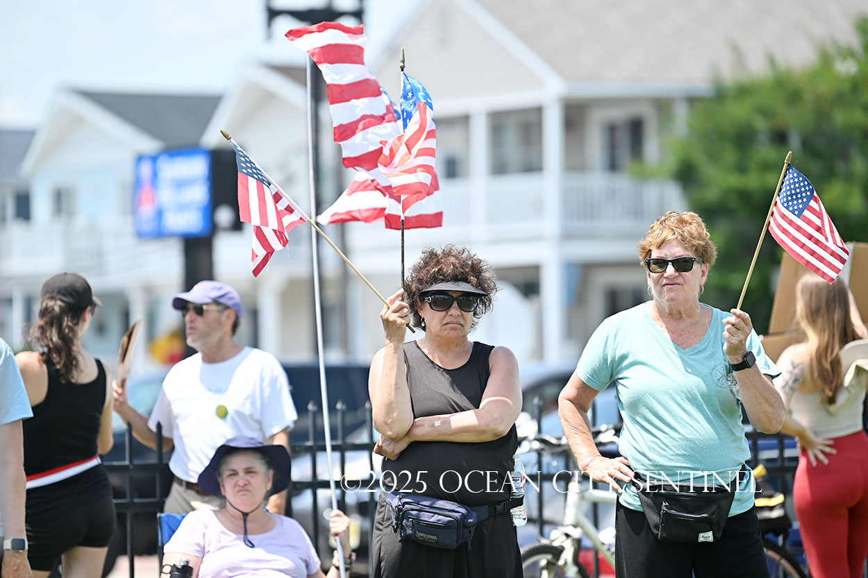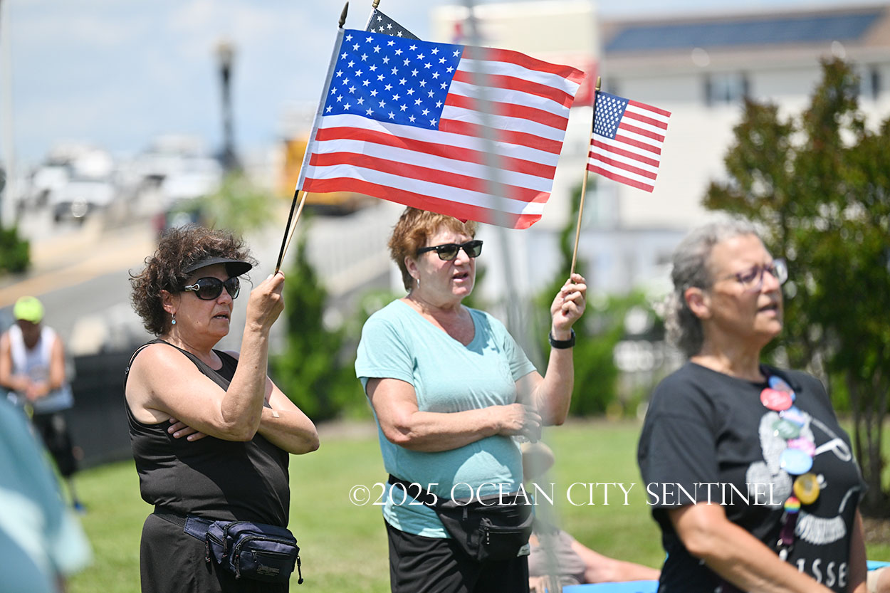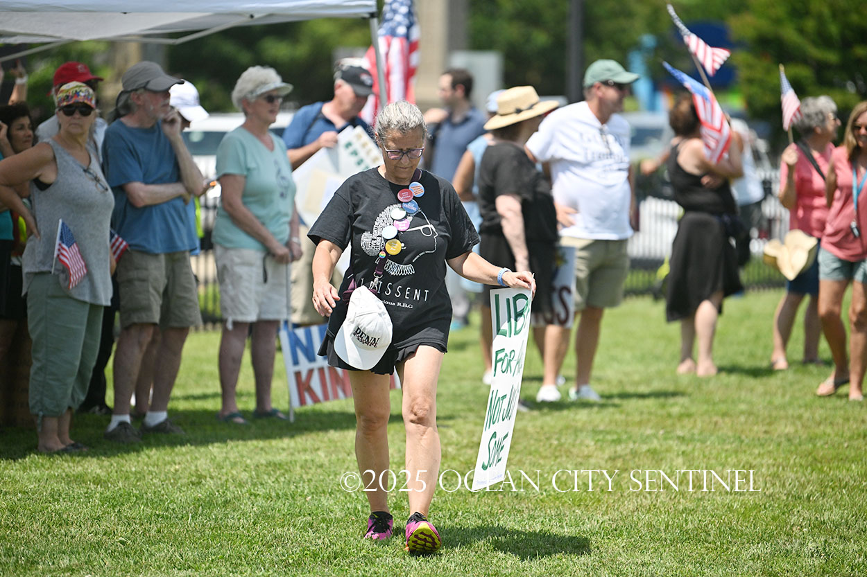 The rally, matching others that were taking place across the nation, was organized by Indivisible Ocean City, which held a massive “No Kings” rally just weeks ago with a crowd that Ocean City police estimated at 800 but organizers believe numbered more than 2,000.