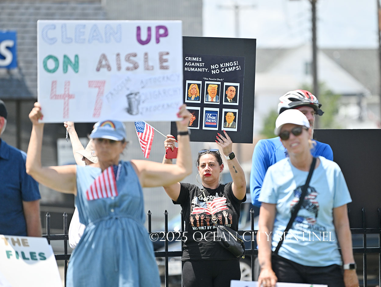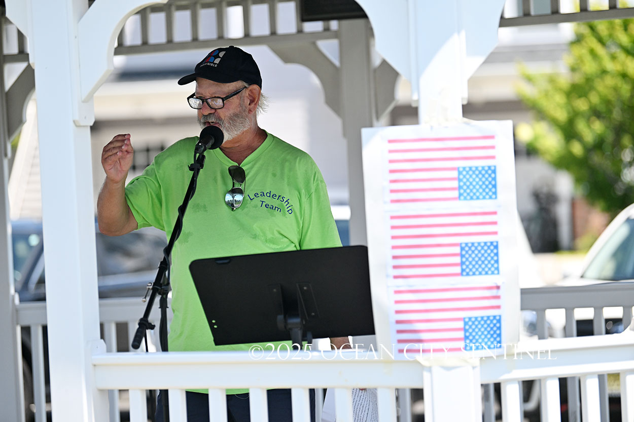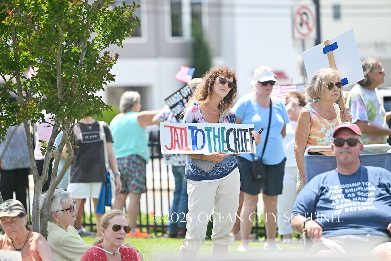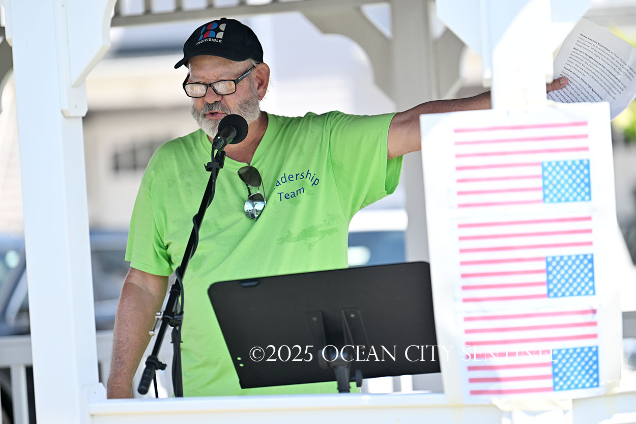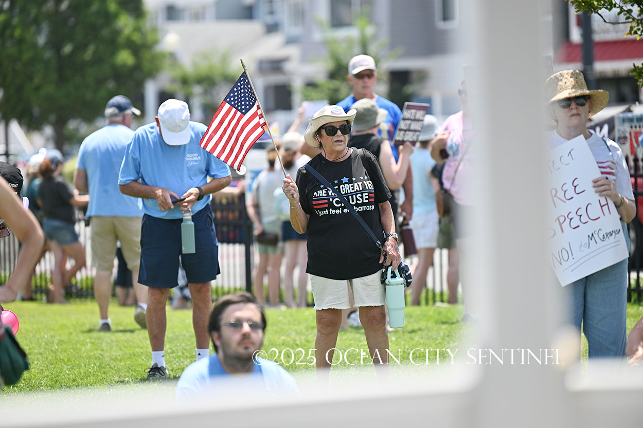 The rally, matching others that were taking place across the nation, was organized by Indivisible Ocean City, which held a massive “No Kings” rally just weeks ago with a crowd that Ocean City police estimated at 800 but organizers believe numbered more than 2,000.