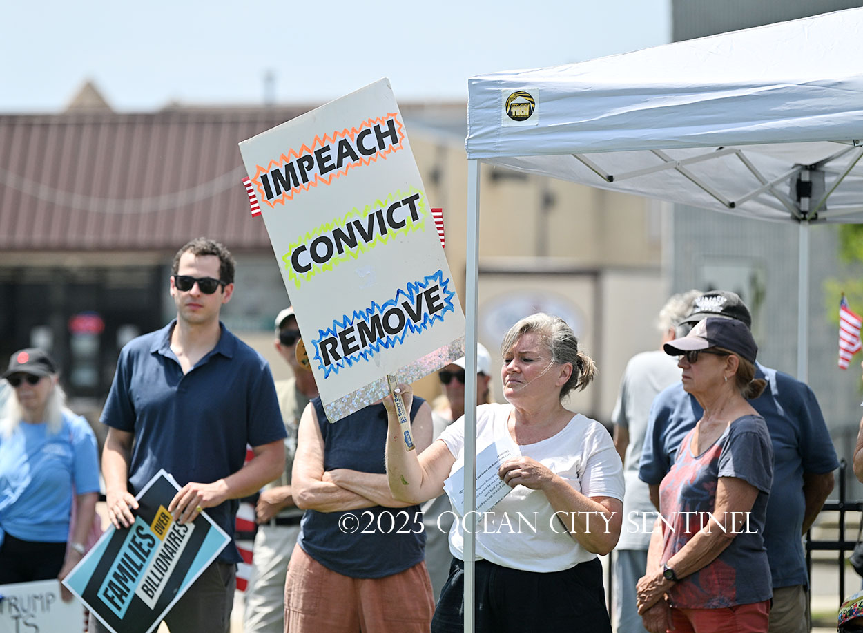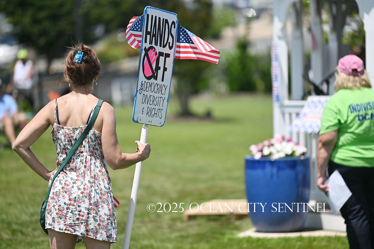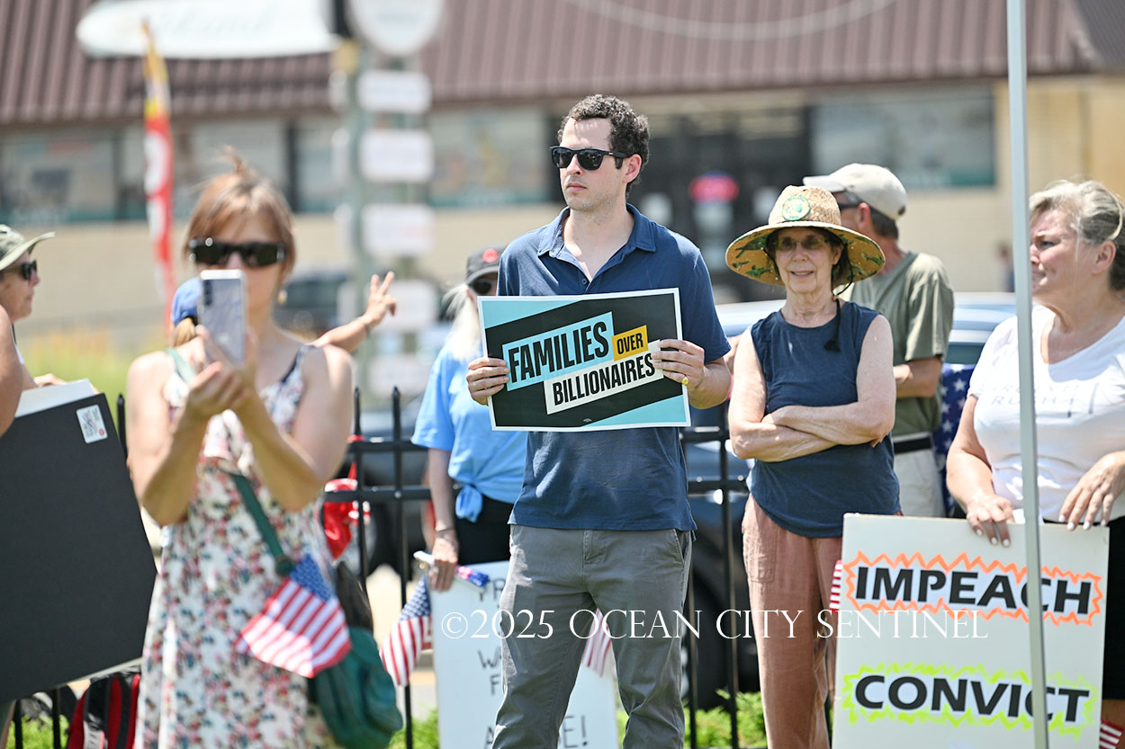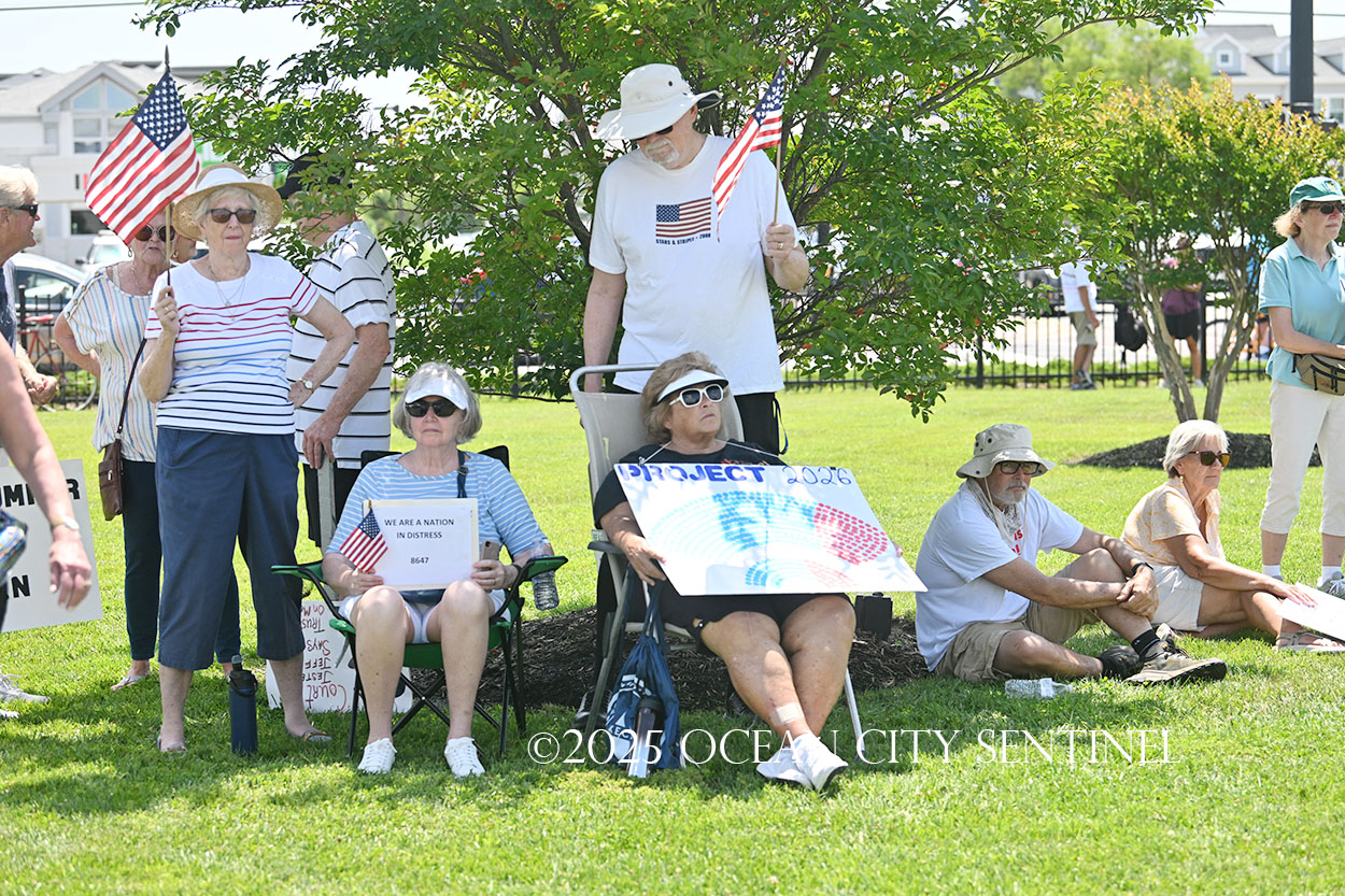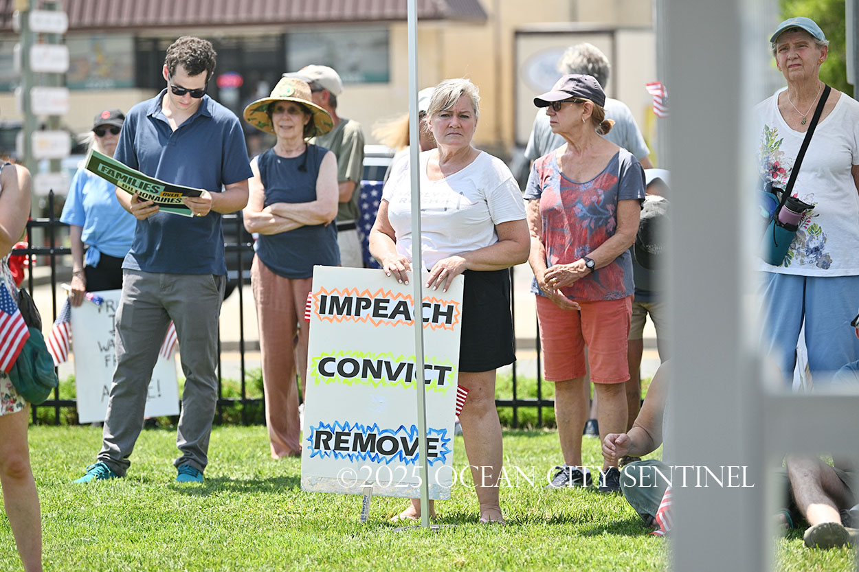 The rally, matching others that were taking place across the nation, was organized by Indivisible Ocean City, which held a massive “No Kings” rally just weeks ago with a crowd that Ocean City police estimated at 800 but organizers believe numbered more than 2,000.