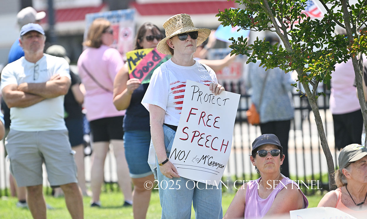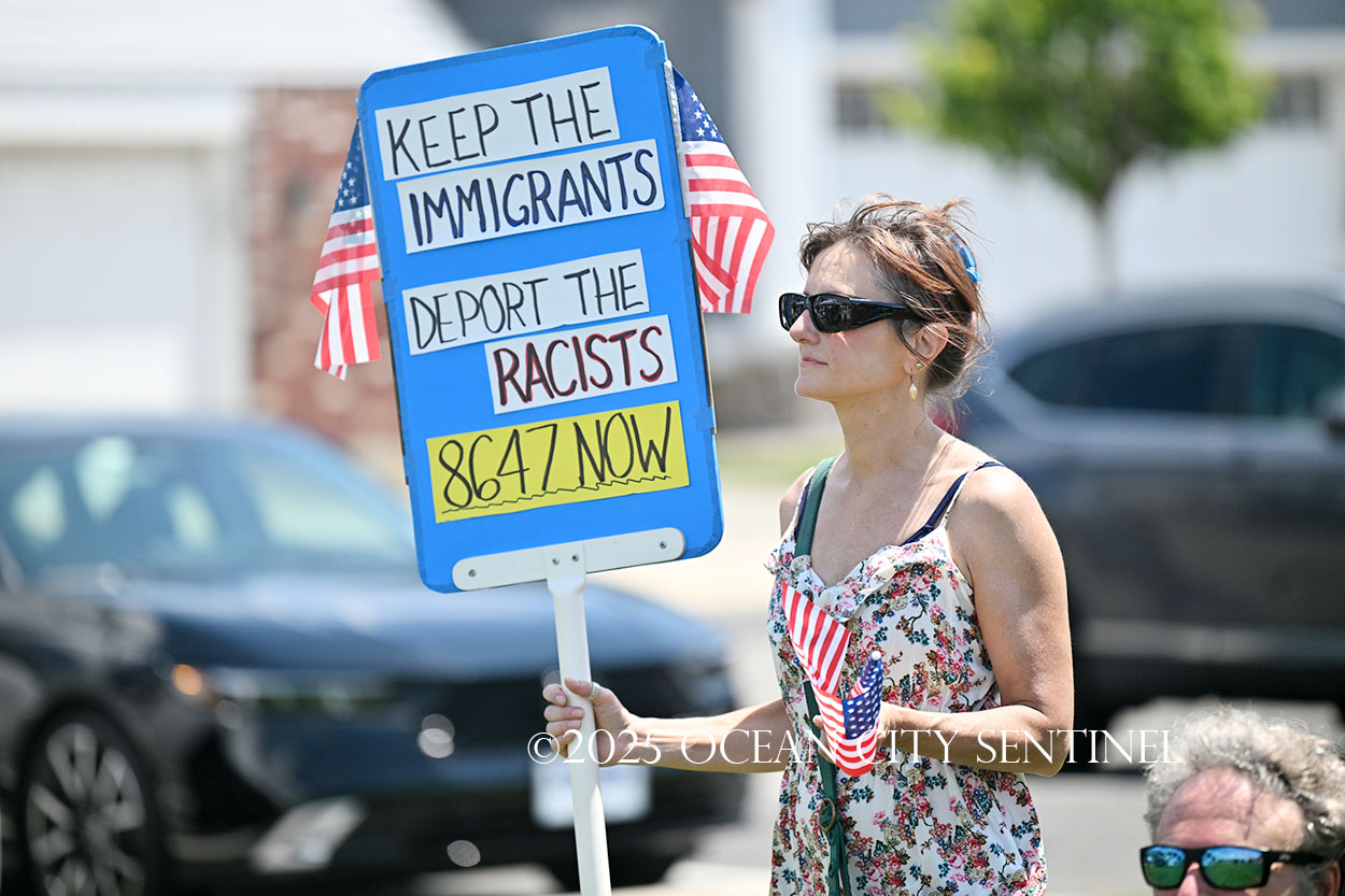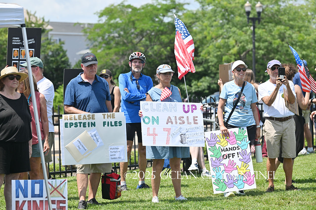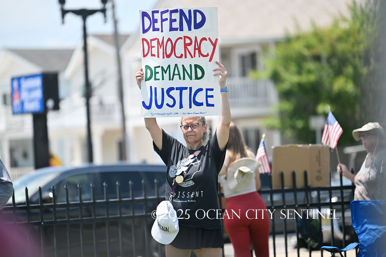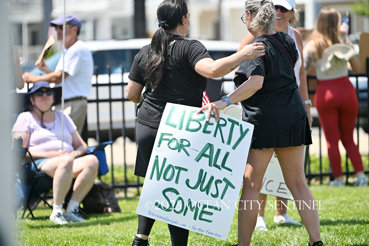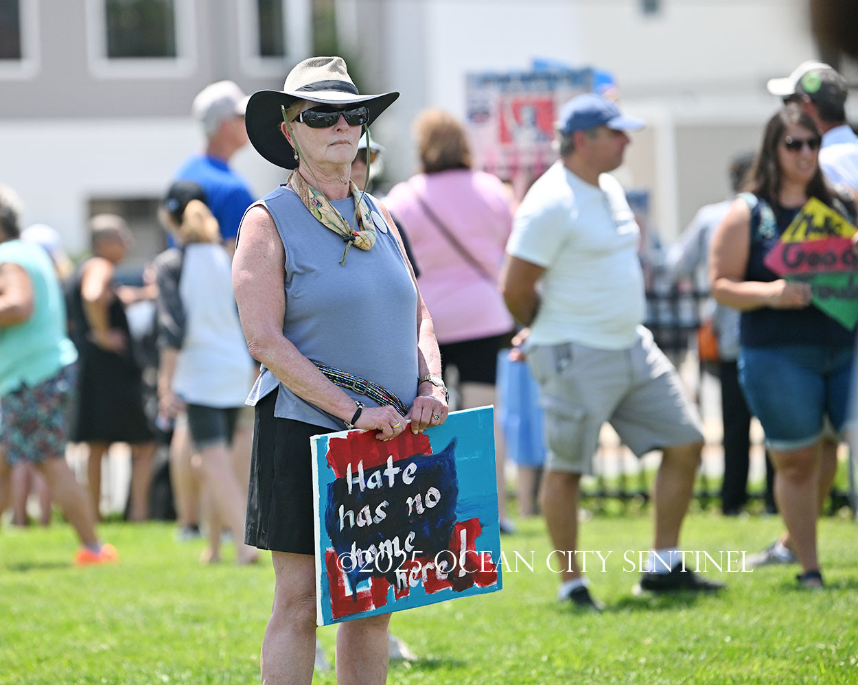 The rally, matching others that were taking place across the nation, was organized by Indivisible Ocean City, which held a massive “No Kings” rally just weeks ago with a crowd that Ocean City police estimated at 800 but organizers believe numbered more than 2,000.