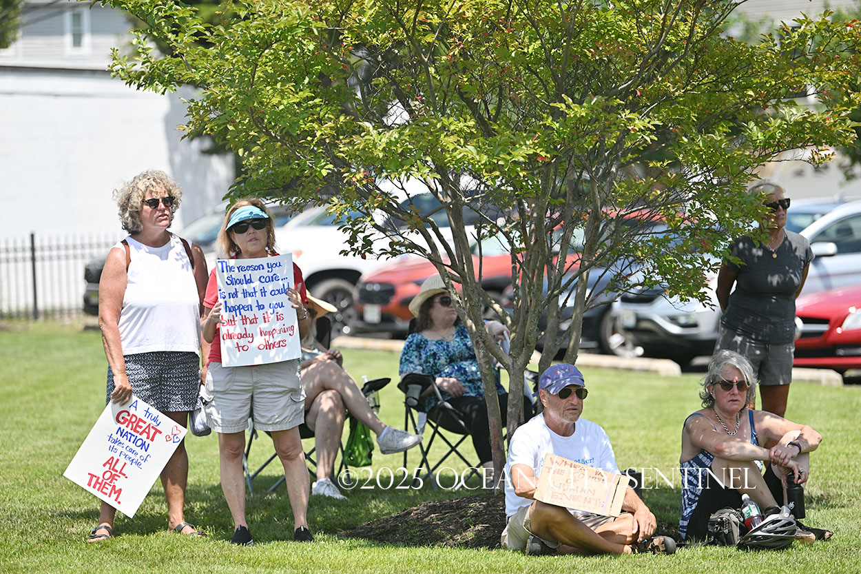It was brutally hot at noon July 17 when roughly 150 people gathered in the gazebo park at the Ocean City base of the Route 52 causeway, where they spent more than an hour listening to speeches, holding up placards for passing motorists and then adjourning to march along the causeway to the Welcome Center and back.
