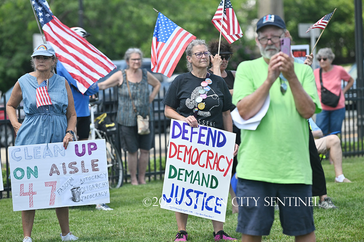He reminded the protesters the president criticized former U.S. Sen. John McCain, who was a POW during the Vietnam war, for being captured after the plane he was flying was shot down, that Trump got in an argument with a Gold Star family and said former U.S. Congressman John Dingle, a World War II veteran, would be going to hell.