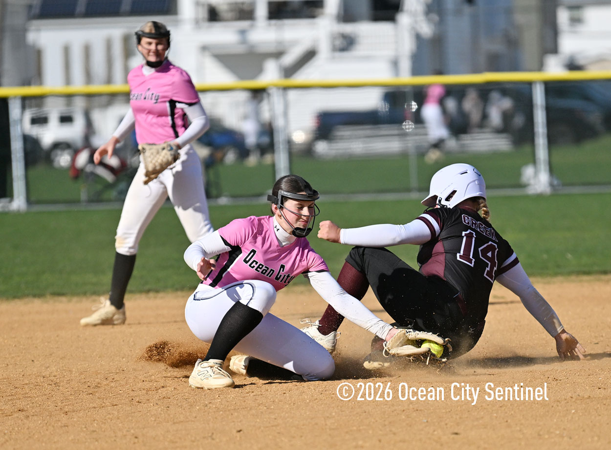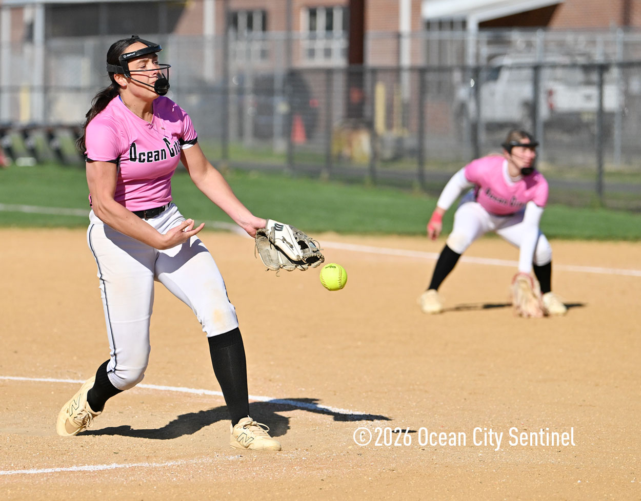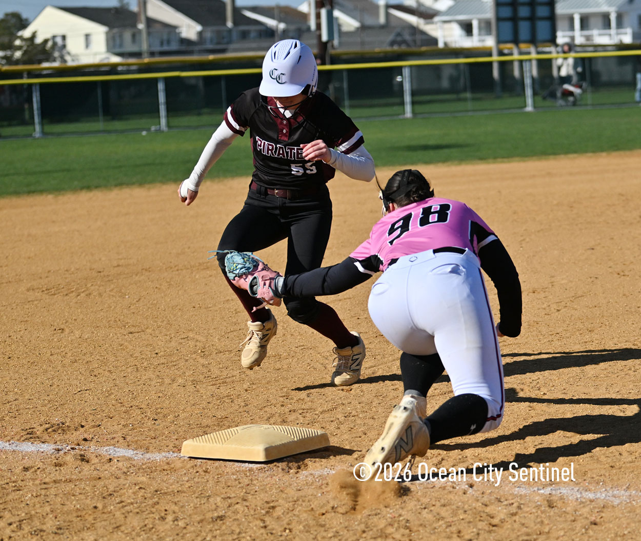 The Red Raider girls were down 8-0 at the top of the second inning. Two big Ocean City home runs made a dent, 8-2, in the bottom of the third, but the Cedar Creek Pirates quickly added five more runs in the fourth for a 13-2 lead while Ocean City High School didn’t add any.