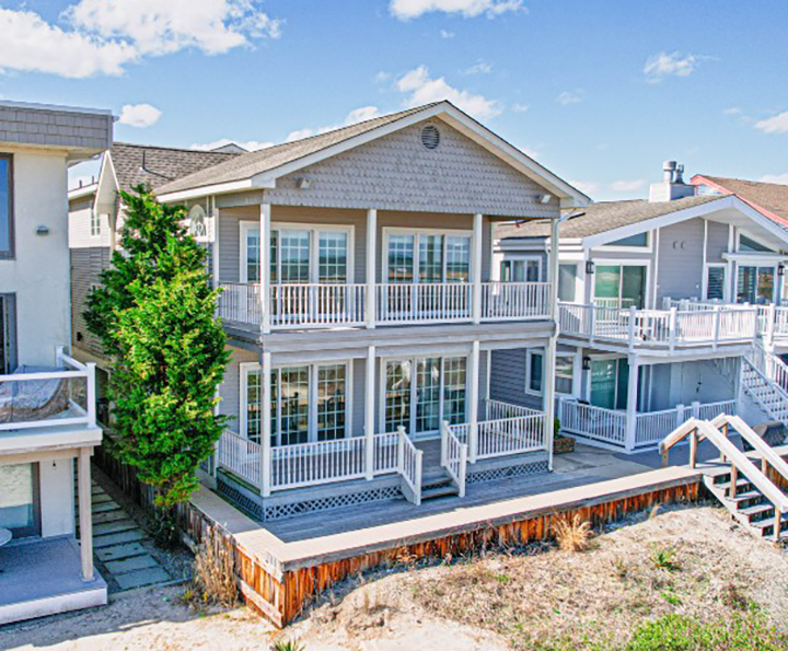 Each of the two units has a covered waterfront porch the width of the home, providing the perfect vantage point to check the tide and waves before heading out to the beach, or sitting in the shade with a cold drink in hand between sunbathing and heading out to the boardwalk for evening entertainment.