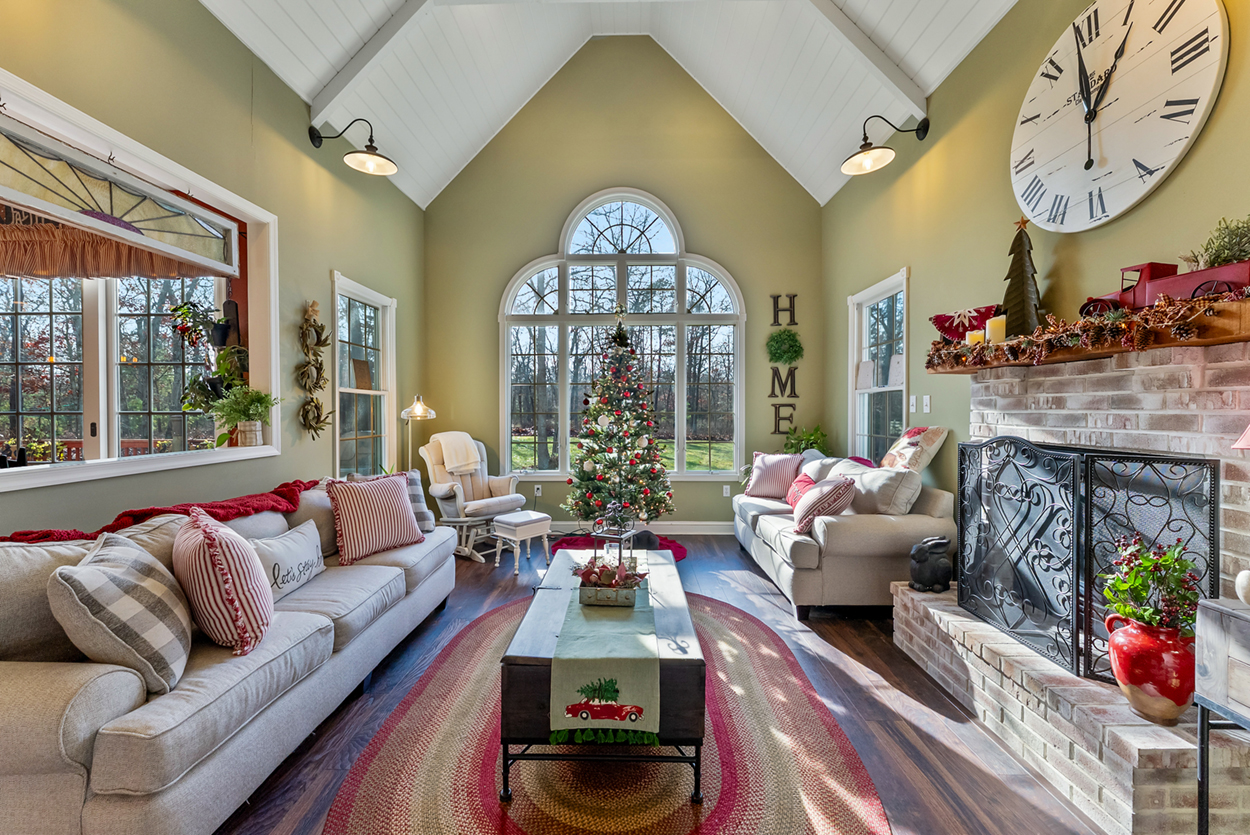 While the eat-in kitchen is where everybody is going to want to gather during the day, in the evening they will move to what Tumlety called the heart of the home — the stunning newly remodeled great room, flooded with natural light and featuring soaring ceilings, exposed beams, custom lighting and a dramatic 12-foot floor-to-ceiling transom window with views of the backyard.