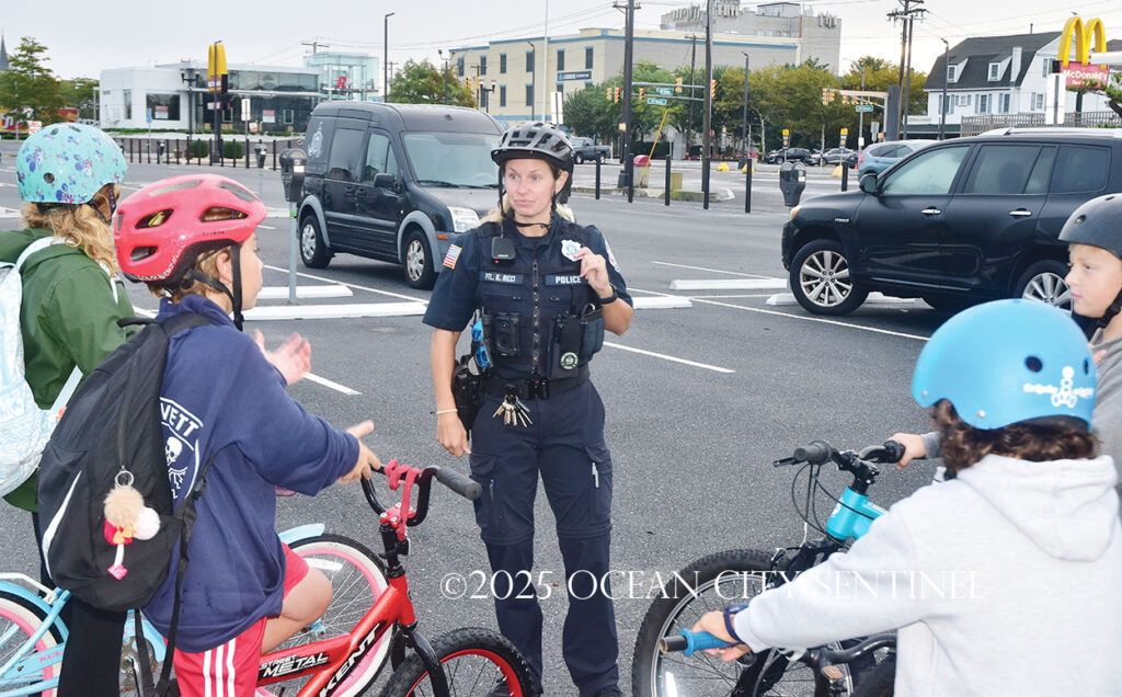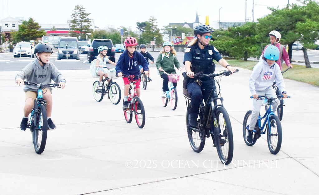 OCEAN CITY — Intermediate school students rode to school with some of Ocean City’s finest last week after securing their helmets and performing a bicycle maintenance check.