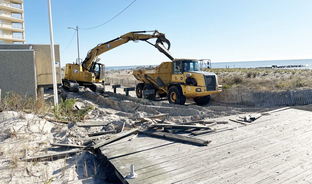 Ocean City is tearing up the boardwalk from Fifth Street through St. Charles Place to rebuild it. The work is expected to be complete in April. This view from Friday, Oct. 24, is looking north, above, and south, below, from Park Place. (Photos by David Nahan/Sentinel staff)