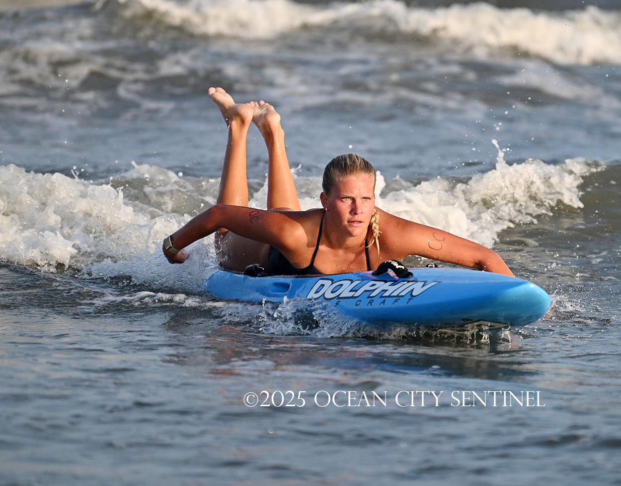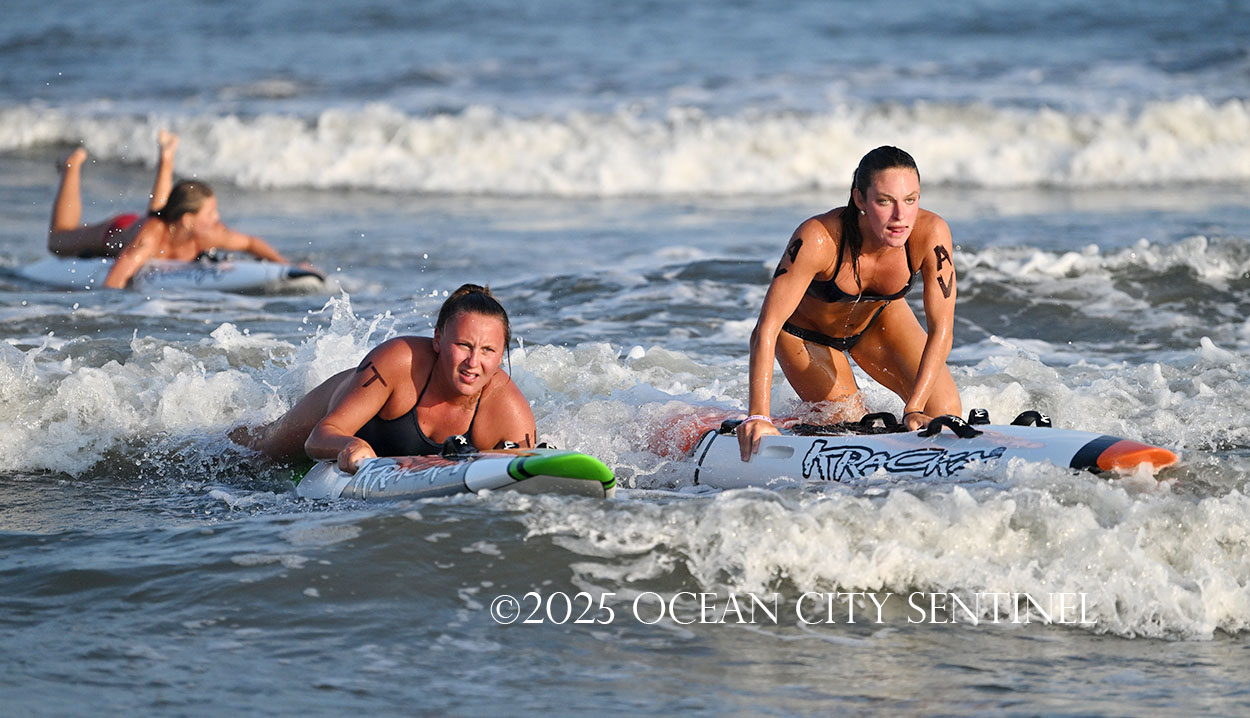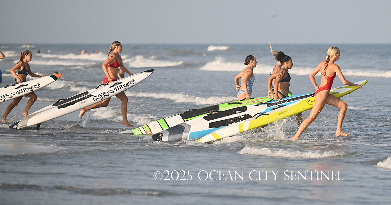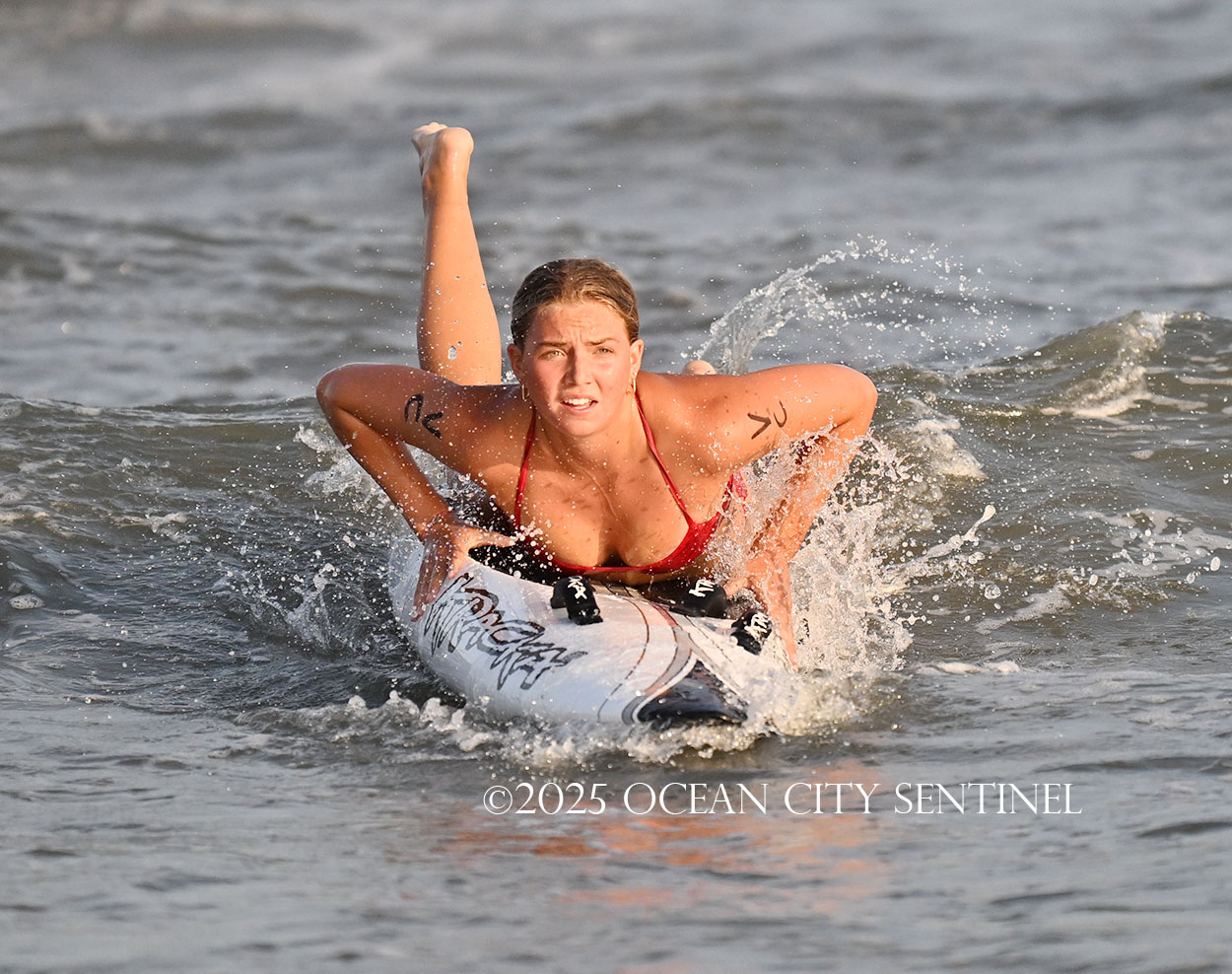 Brigantine padded its lead when standout paddleboarder Grace Emig won the women’s event a good distance ahead of the field. She was leading Ocean City’s Brynn Gallagher when she caught a wave and glided into the beach. Gallagher was second, Sea Isle City’s Kylie Fry third, Longport’s Megan Fox fourth and Margate’s Marina Zapping fifth.