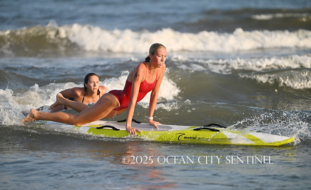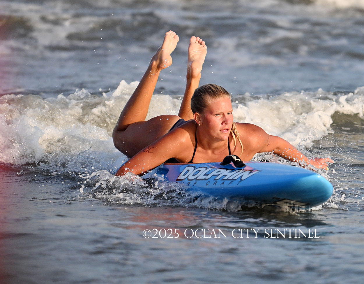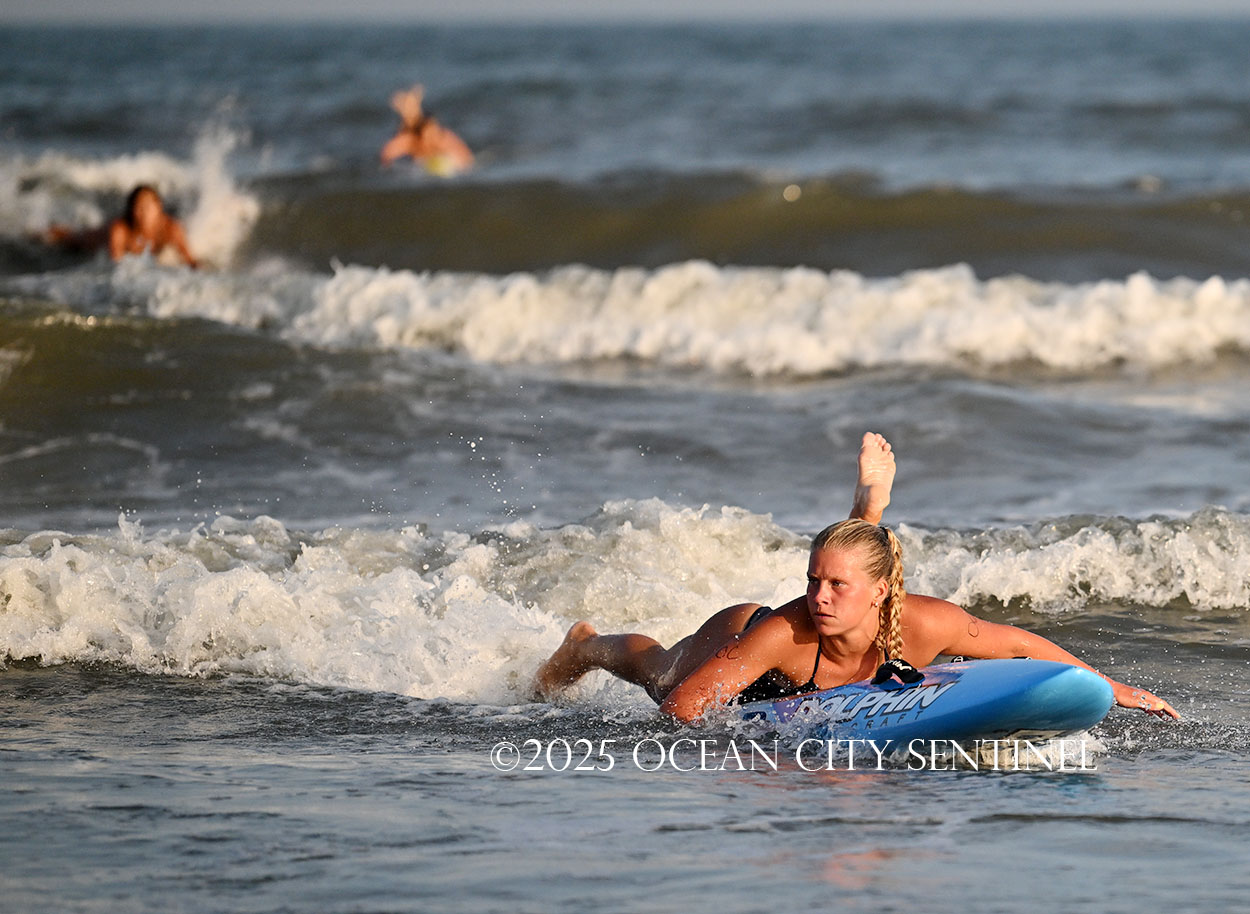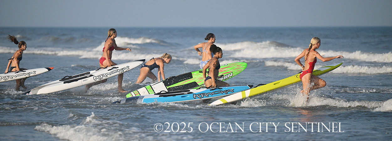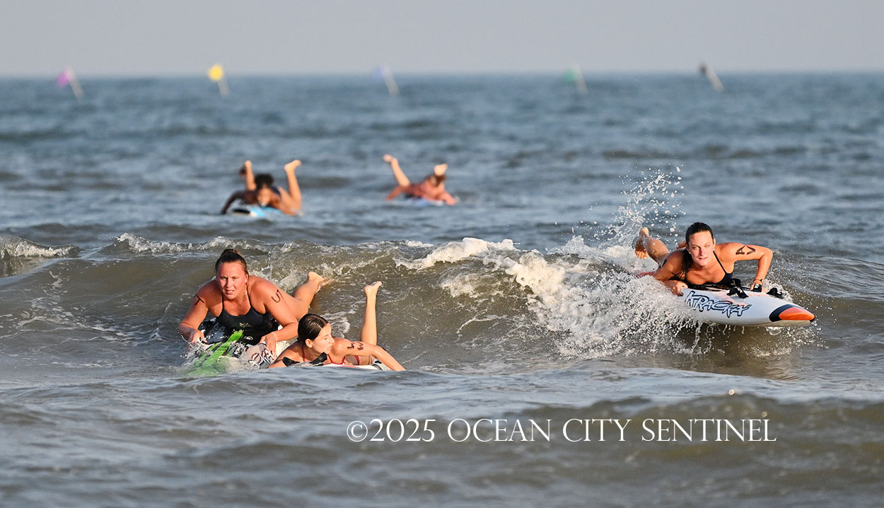 Brigantine padded its lead when standout paddleboarder Grace Emig won the women’s event a good distance ahead of the field. She was leading Ocean City’s Brynn Gallagher when she caught a wave and glided into the beach. Gallagher was second, Sea Isle City’s Kylie Fry third, Longport’s Megan Fox fourth and Margate’s Marina Zapping fifth.