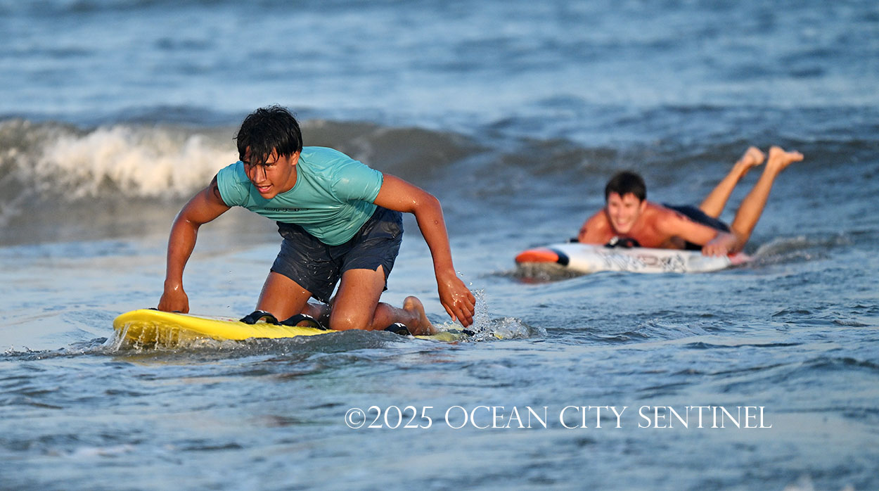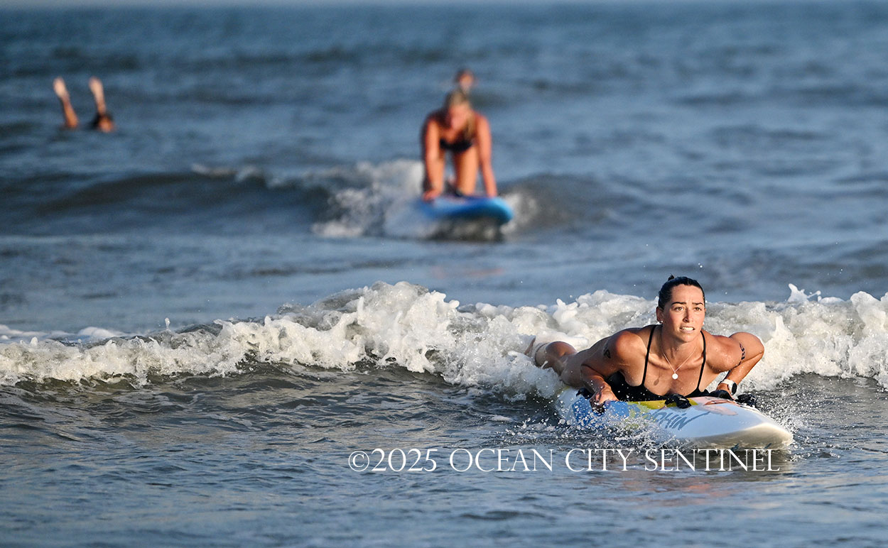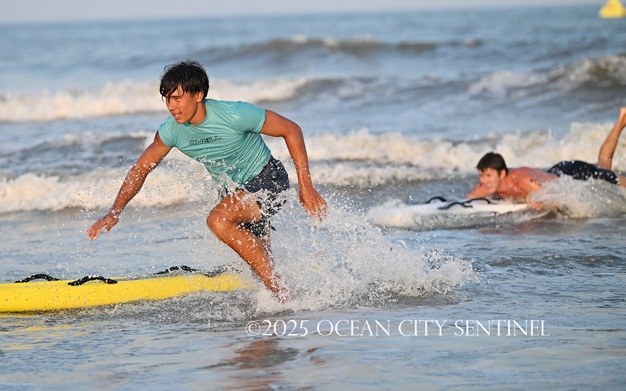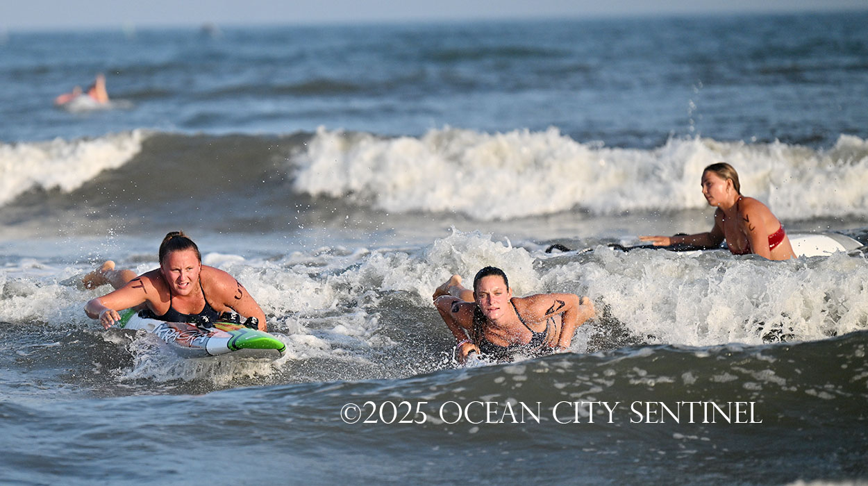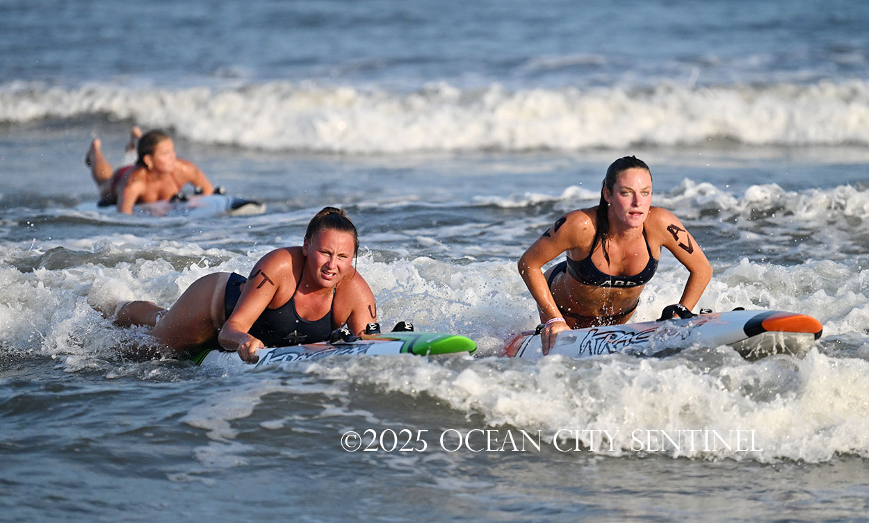 Brigantine padded its lead when standout paddleboarder Grace Emig won the women’s event a good distance ahead of the field. She was leading Ocean City’s Brynn Gallagher when she caught a wave and glided into the beach. Gallagher was second, Sea Isle City’s Kylie Fry third, Longport’s Megan Fox fourth and Margate’s Marina Zapping fifth.