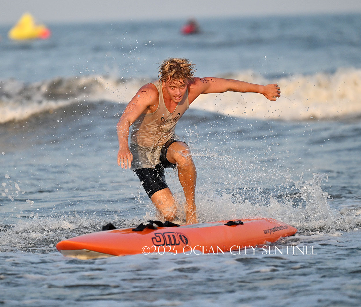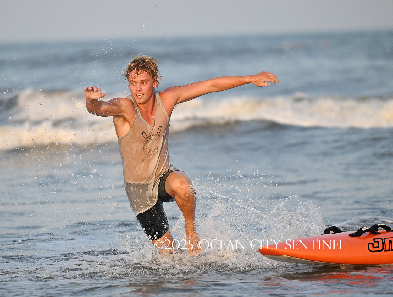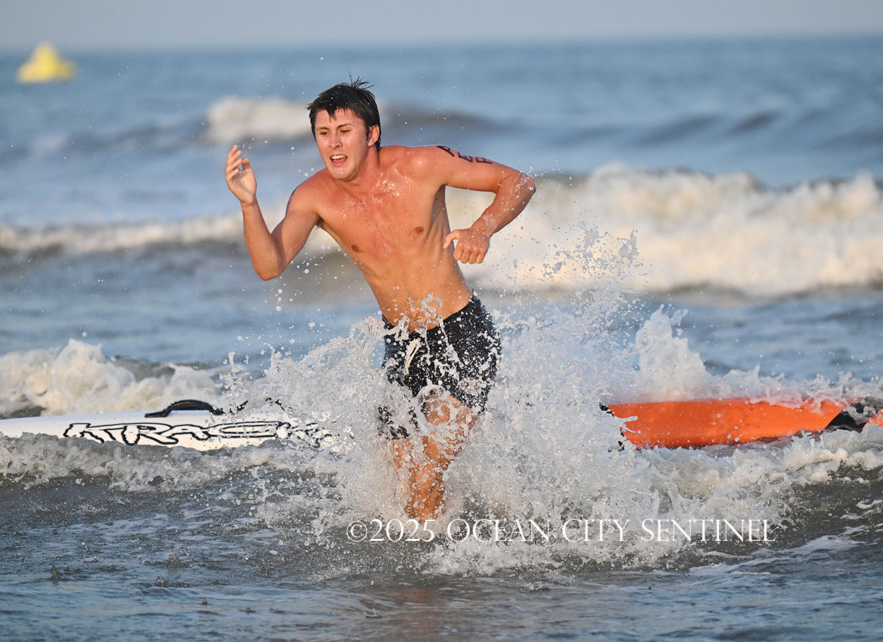 The Wildwood Beach Patrol, which finished sixth overall as a team, picked up big points when John Livingstone won the paddleboard. He was ahead of the field already when he caught a wave and rode it into the finish.