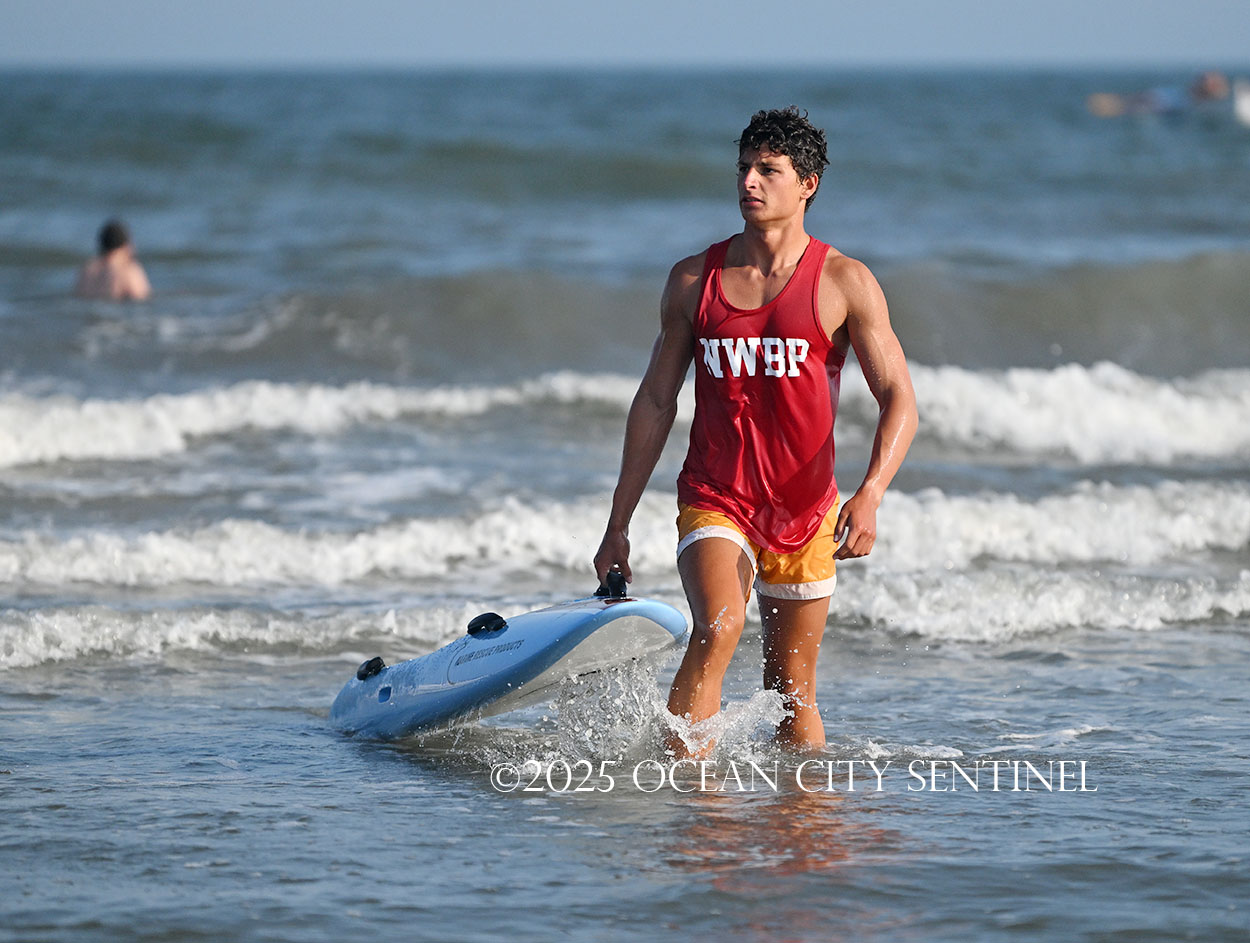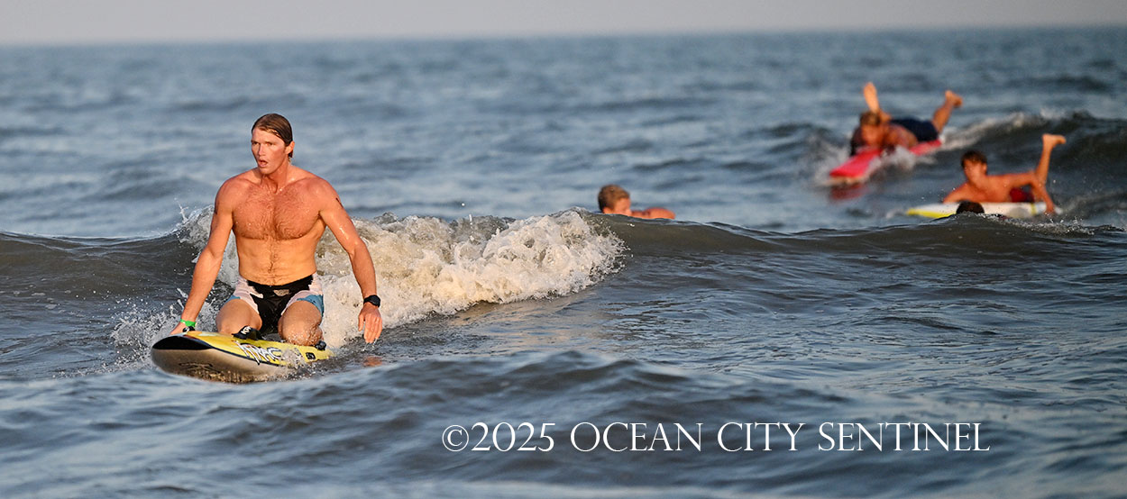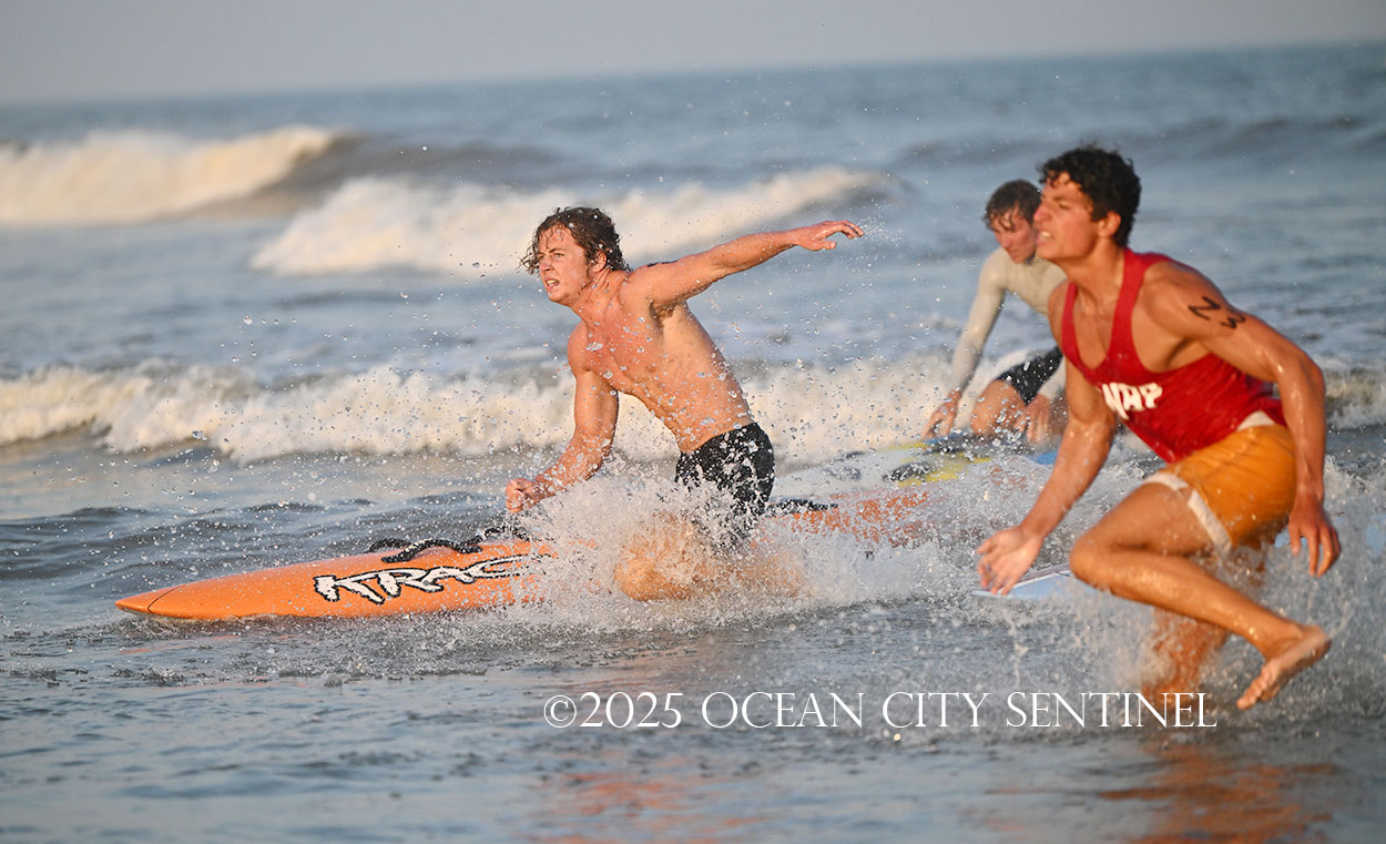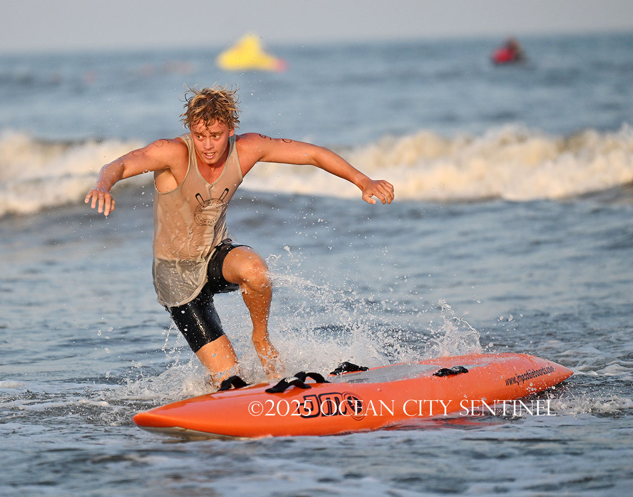 The Wildwood Beach Patrol, which finished sixth overall as a team, picked up big points when John Livingstone won the paddleboard. He was ahead of the field already when he caught a wave and rode it into the finish.