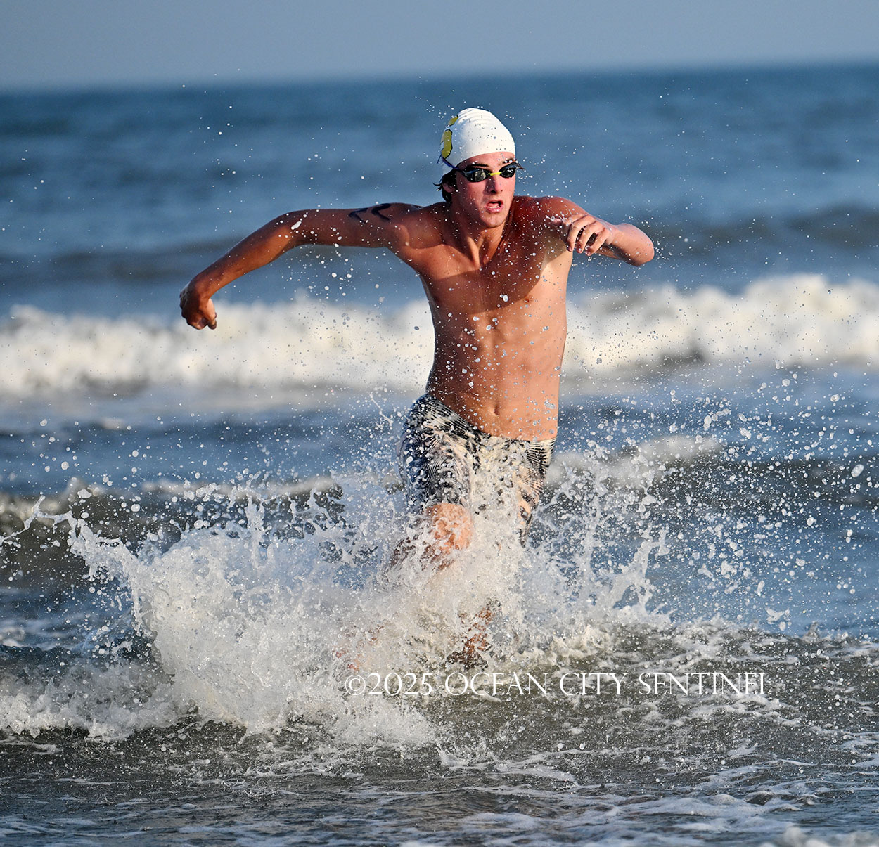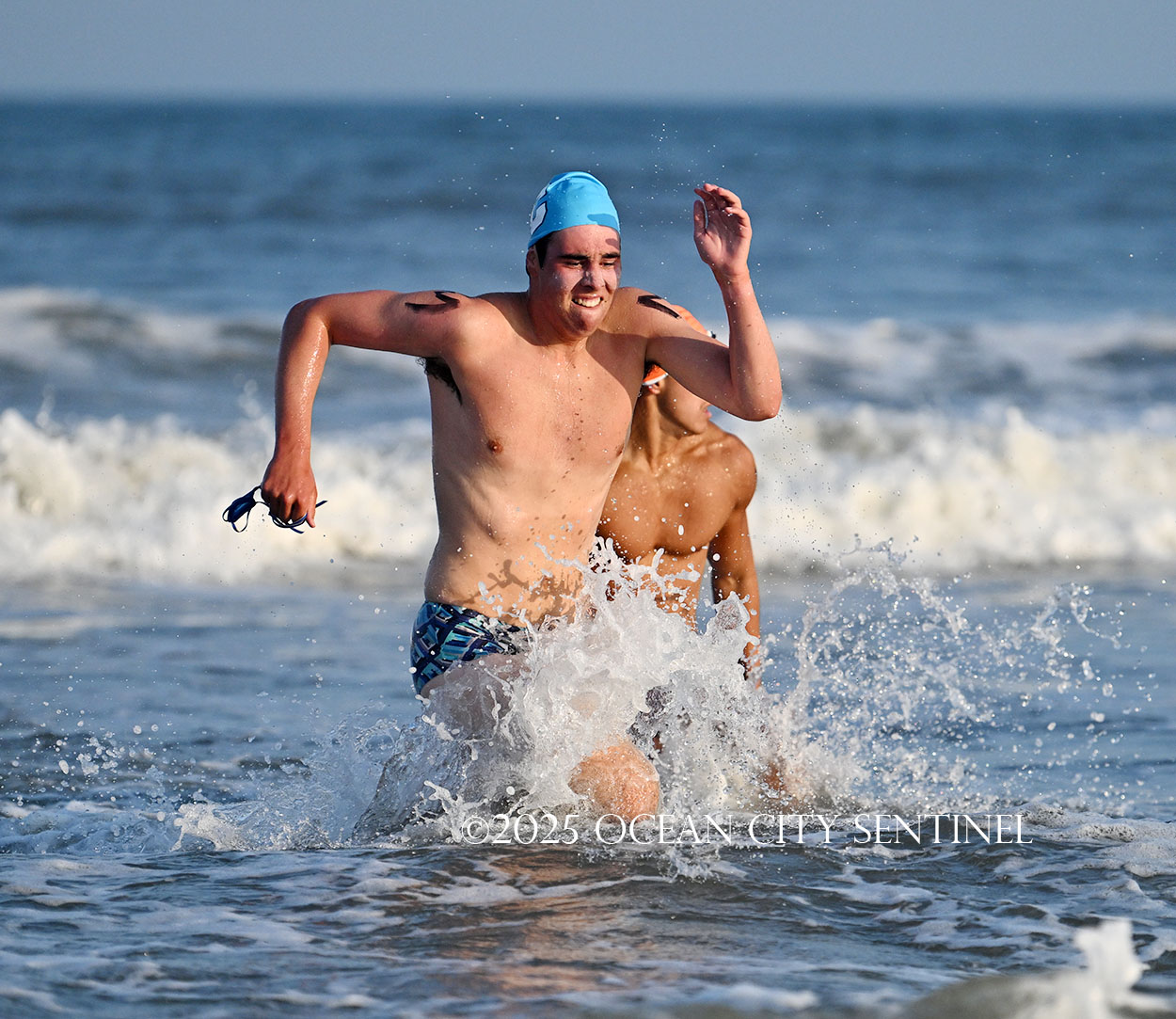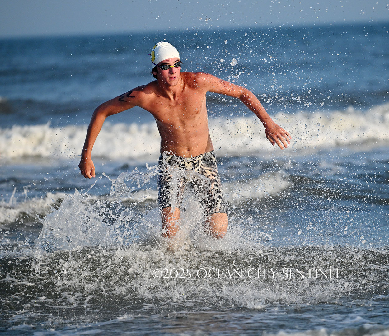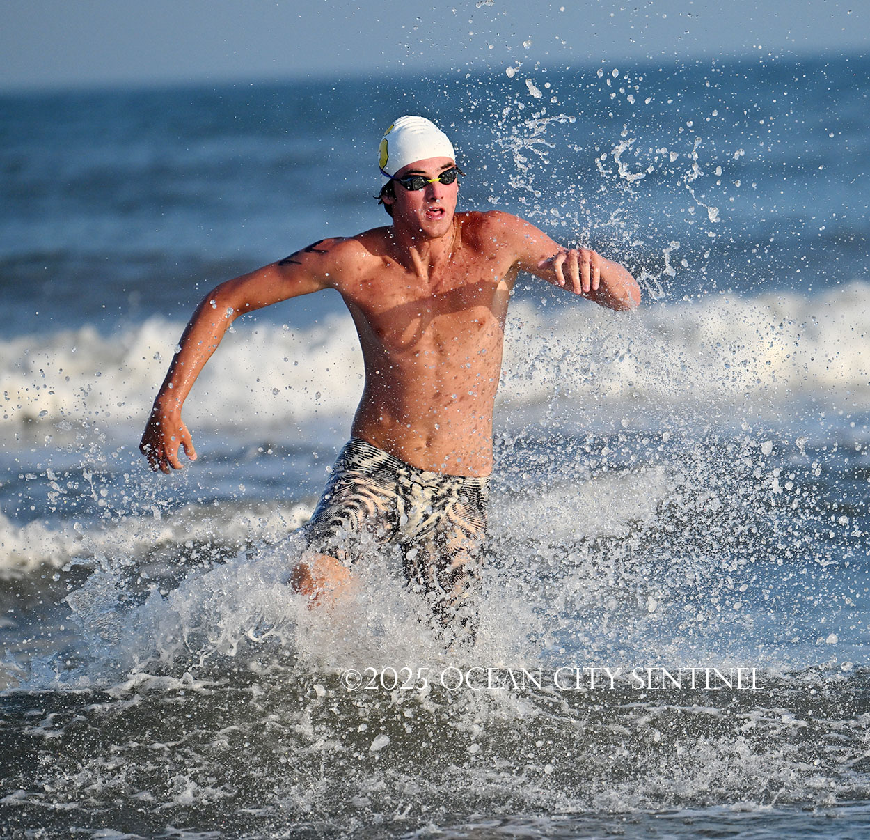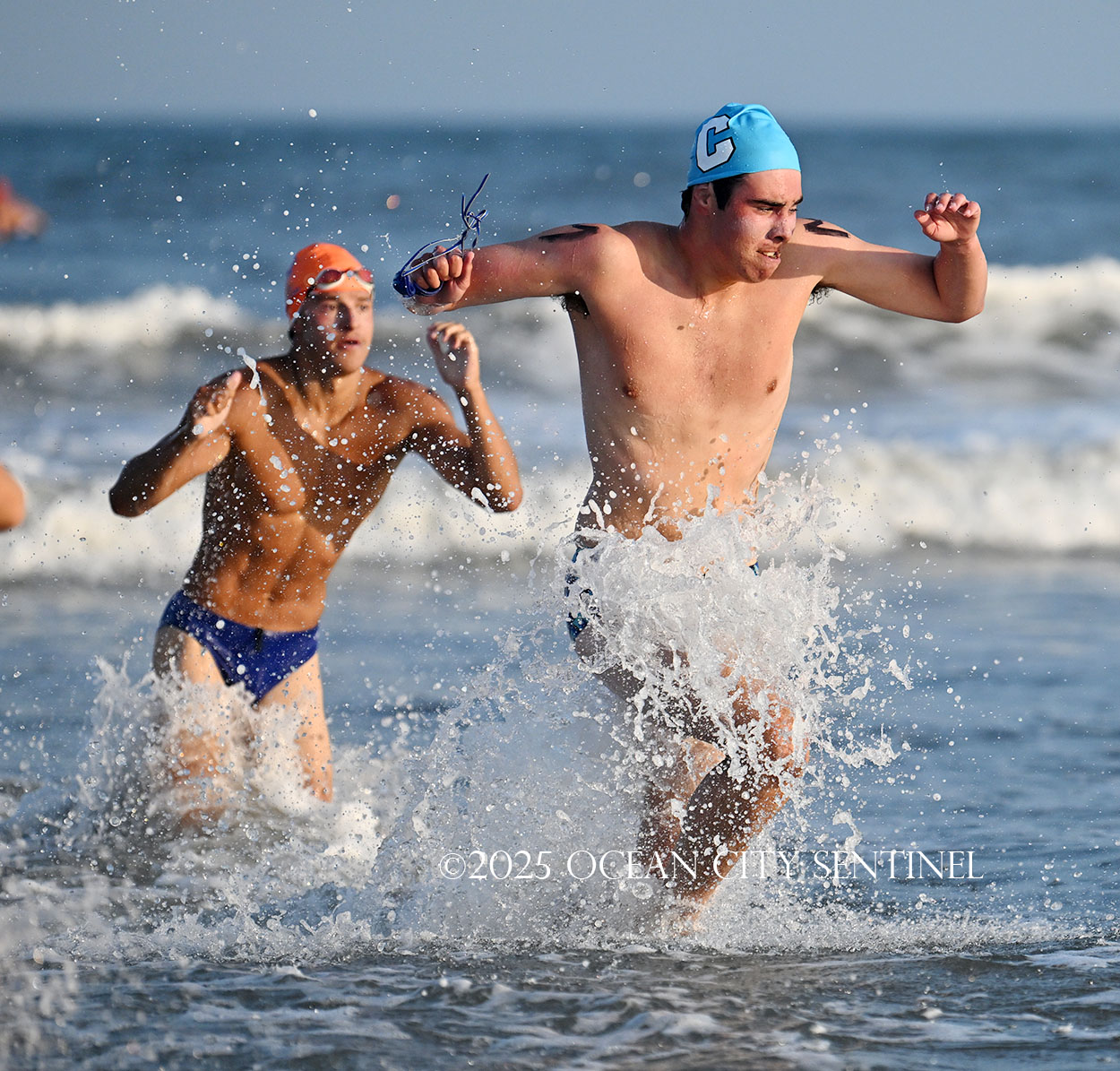 Ventnor’s Ben Iannelli was second, Margate’s Mitchell Zappone third, Ocean City’s Chase Ritter fourth, courtesy of a strong dash out of the surf, and Upper Township’s James Carr fifth.