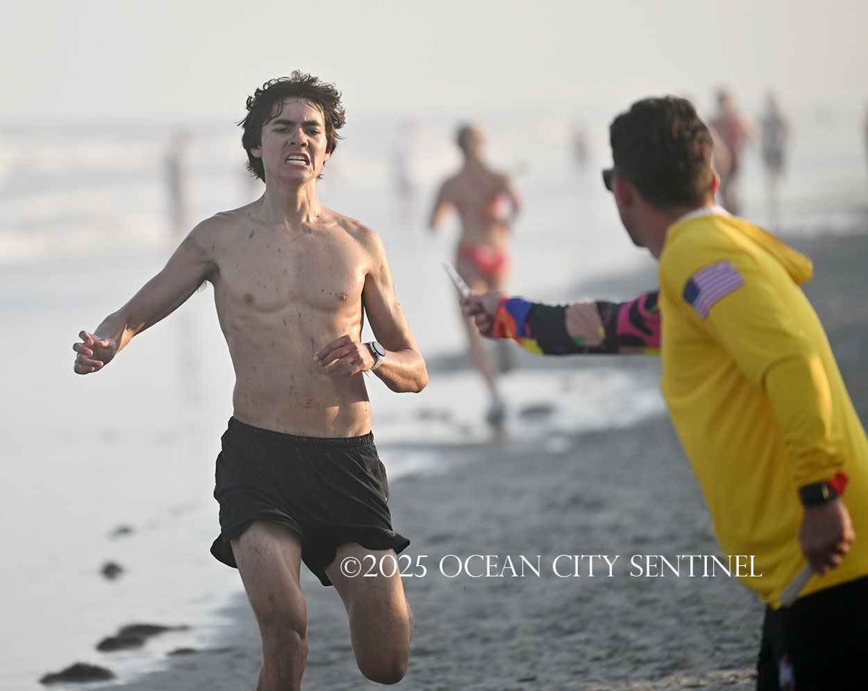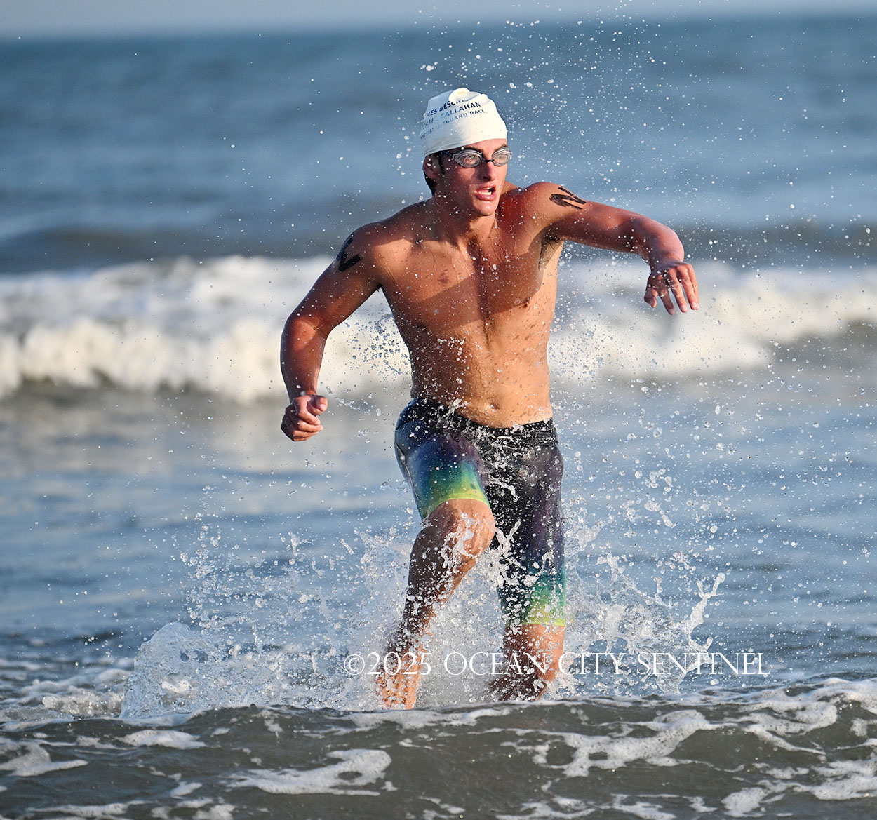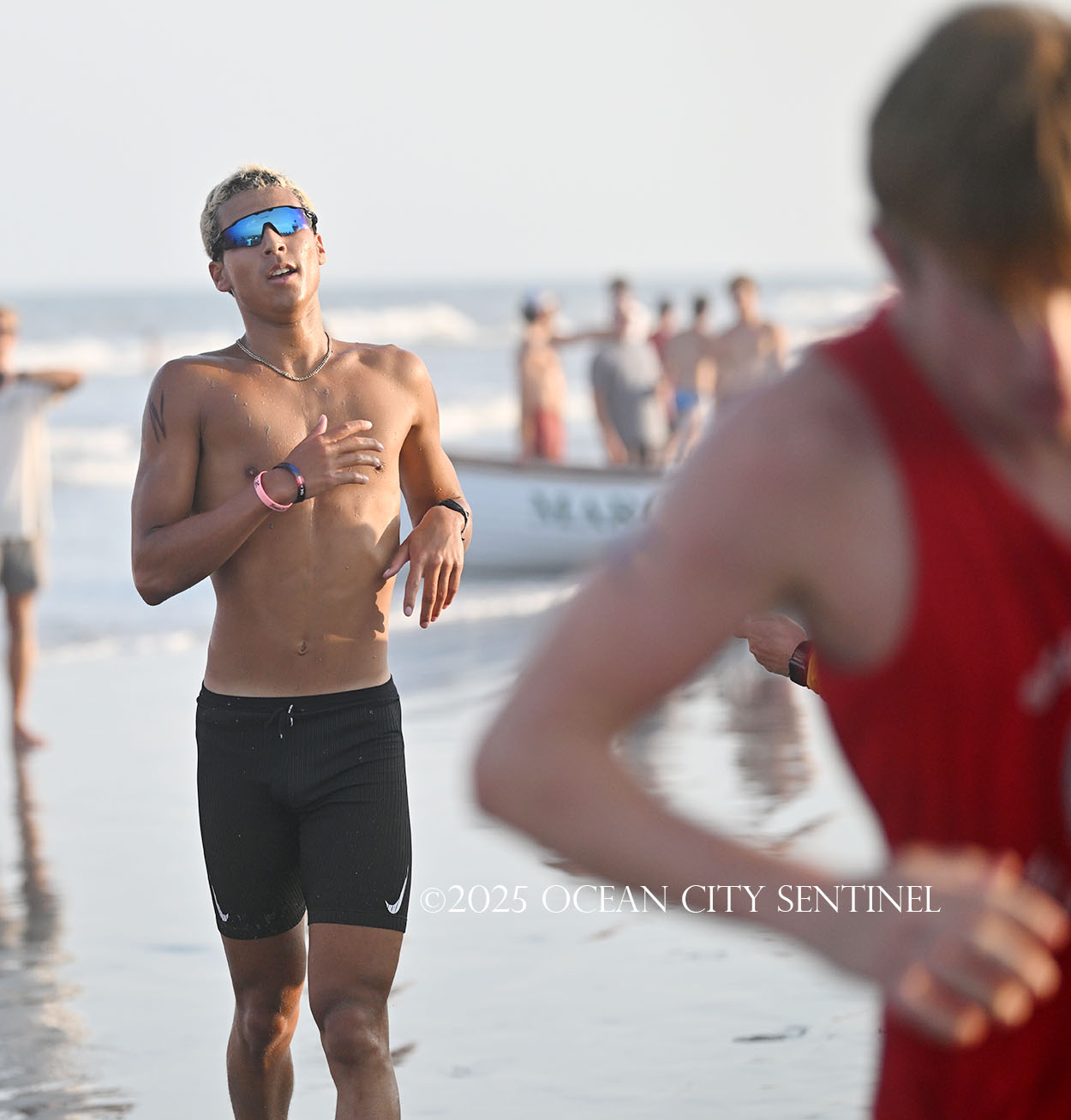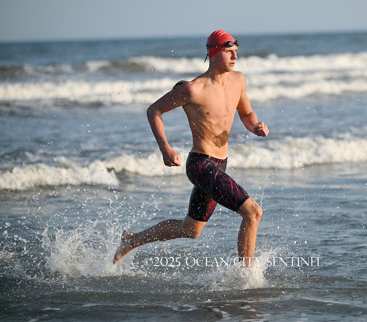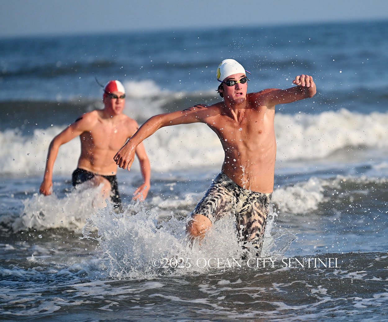 Ventnor’s Ben Iannelli was second, Margate’s Mitchell Zappone third, Ocean City’s Chase Ritter fourth, courtesy of a strong dash out of the surf, and Upper Township’s James Carr fifth.