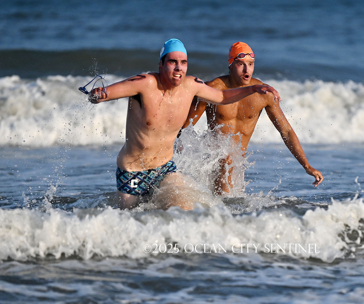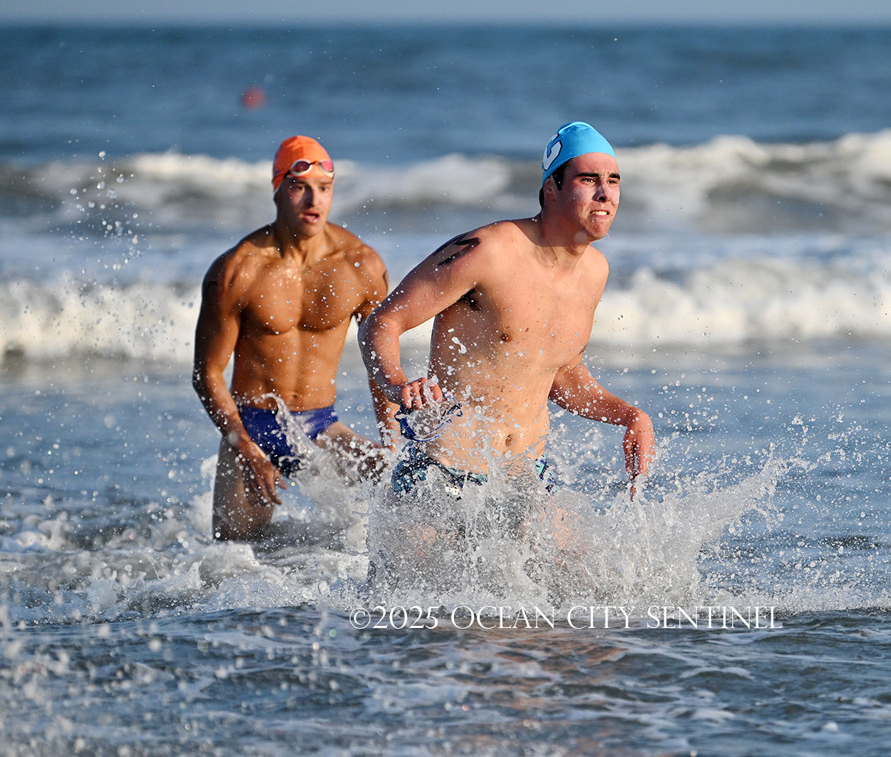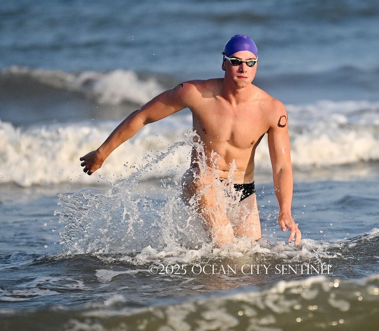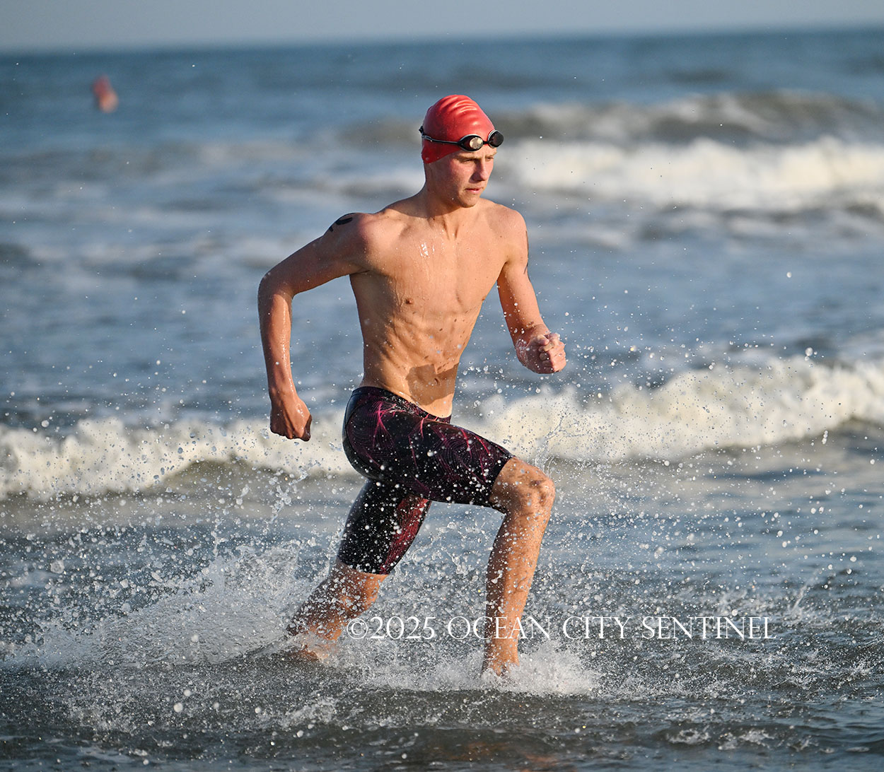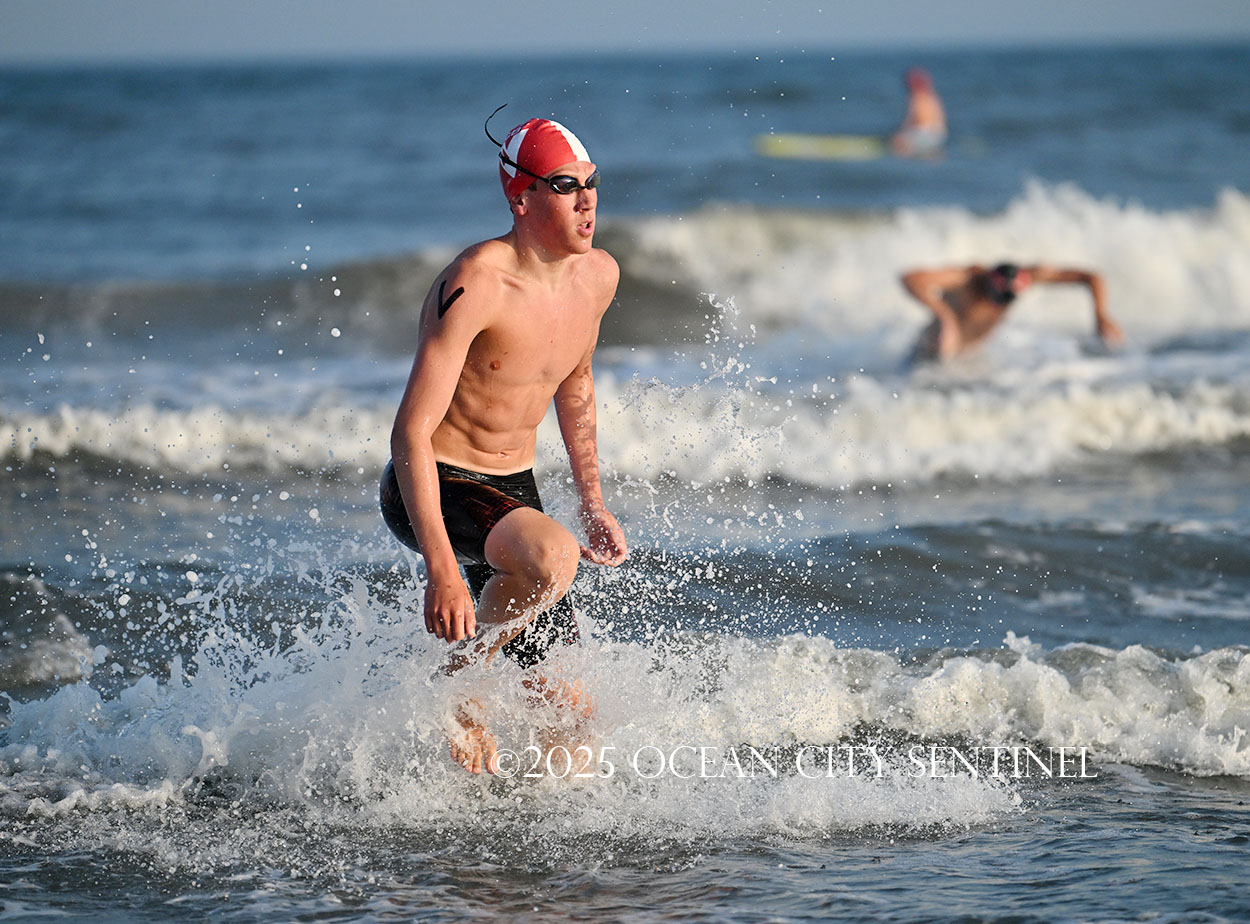 Ventnor’s Ben Iannelli was second, Margate’s Mitchell Zappone third, Ocean City’s Chase Ritter fourth, courtesy of a strong dash out of the surf, and Upper Township’s James Carr fifth.