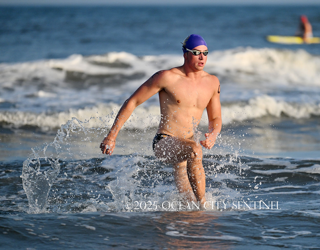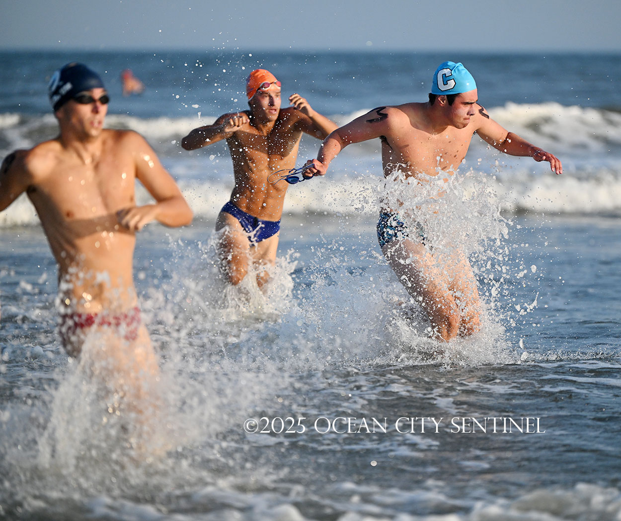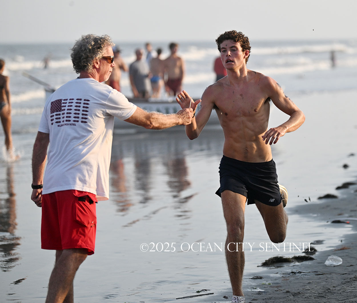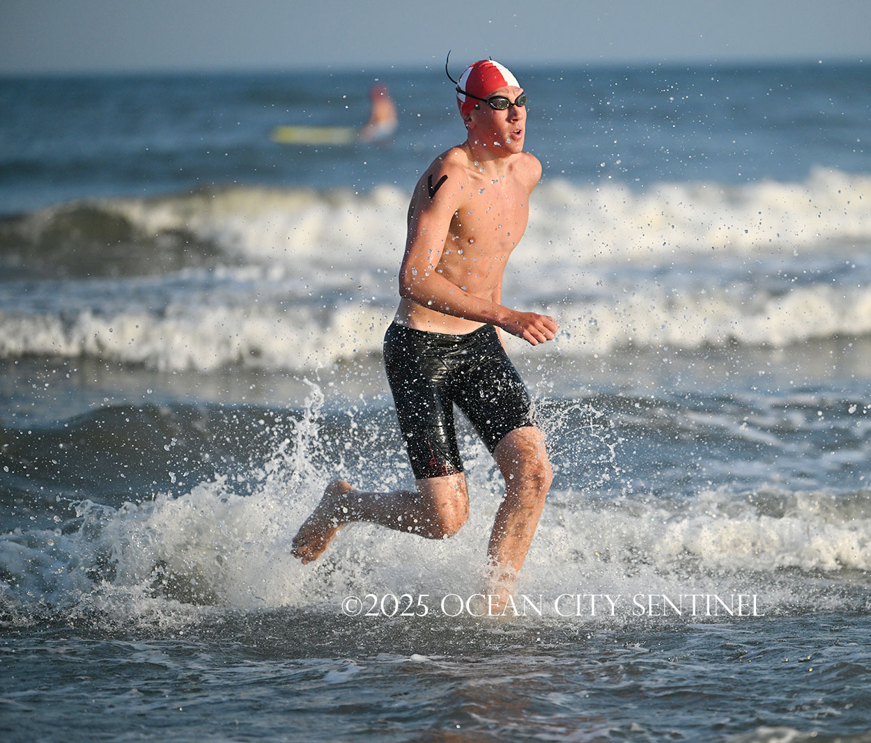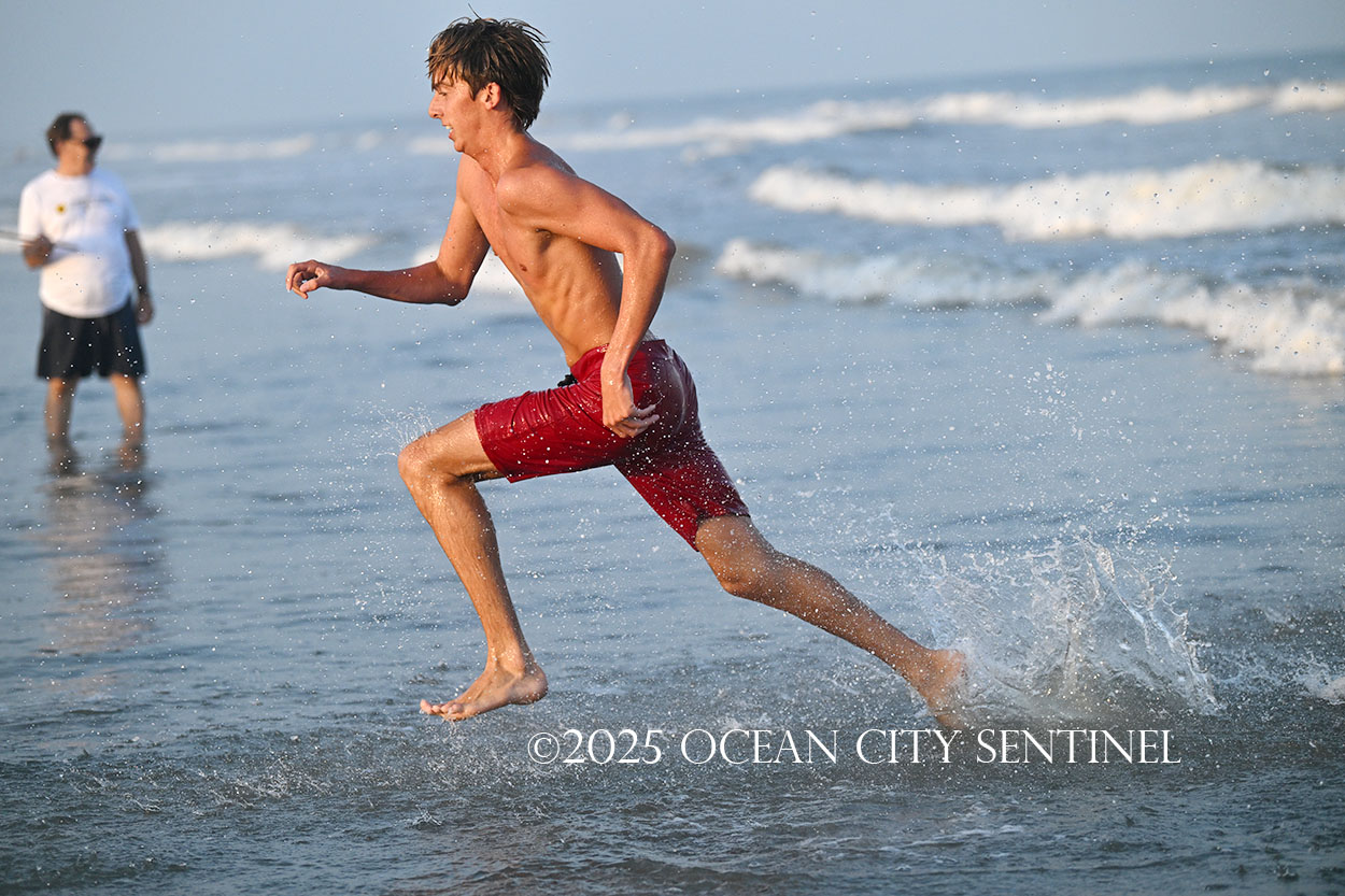 Ventnor’s Ben Iannelli was second, Margate’s Mitchell Zappone third, Ocean City’s Chase Ritter fourth, courtesy of a strong dash out of the surf, and Upper Township’s James Carr fifth.