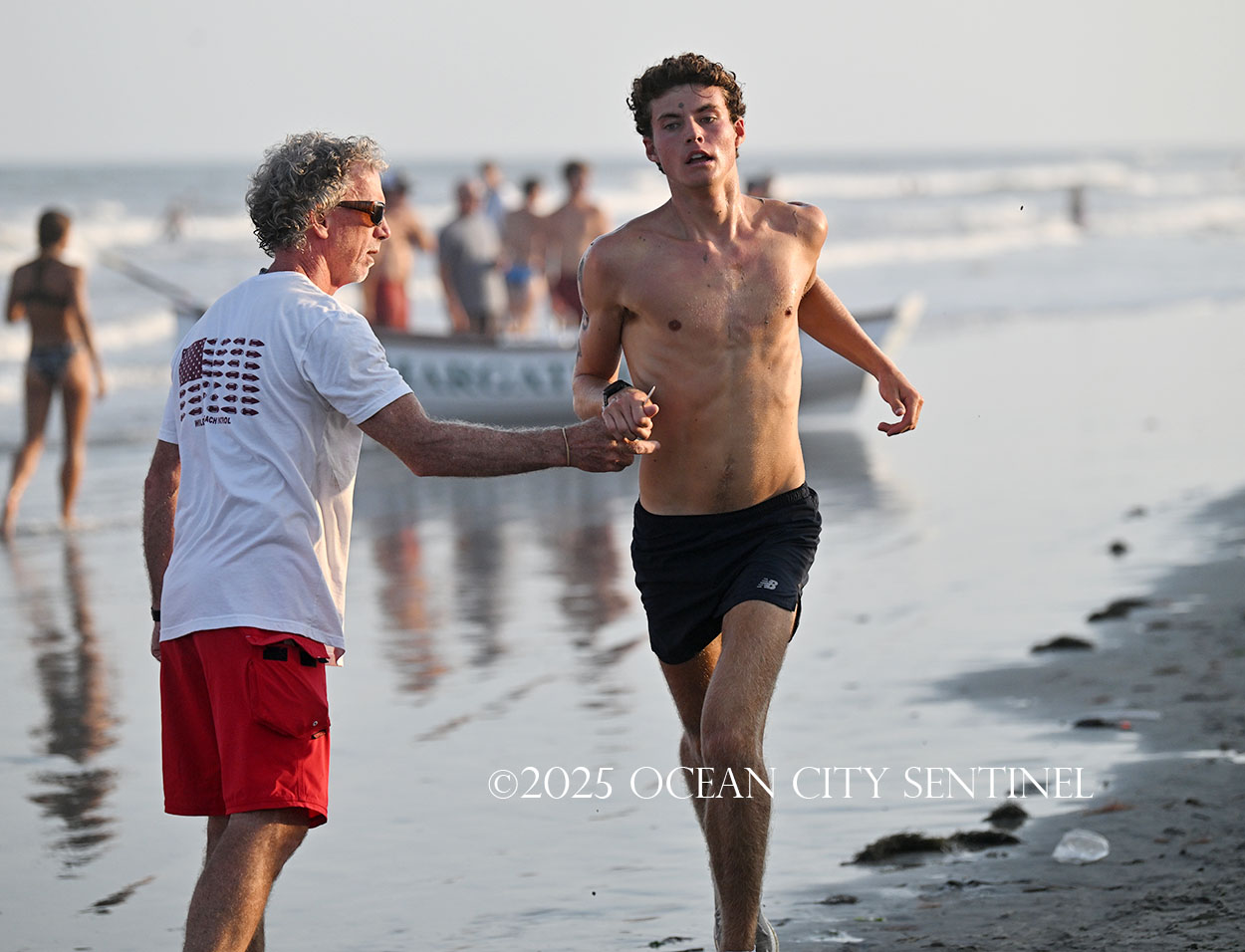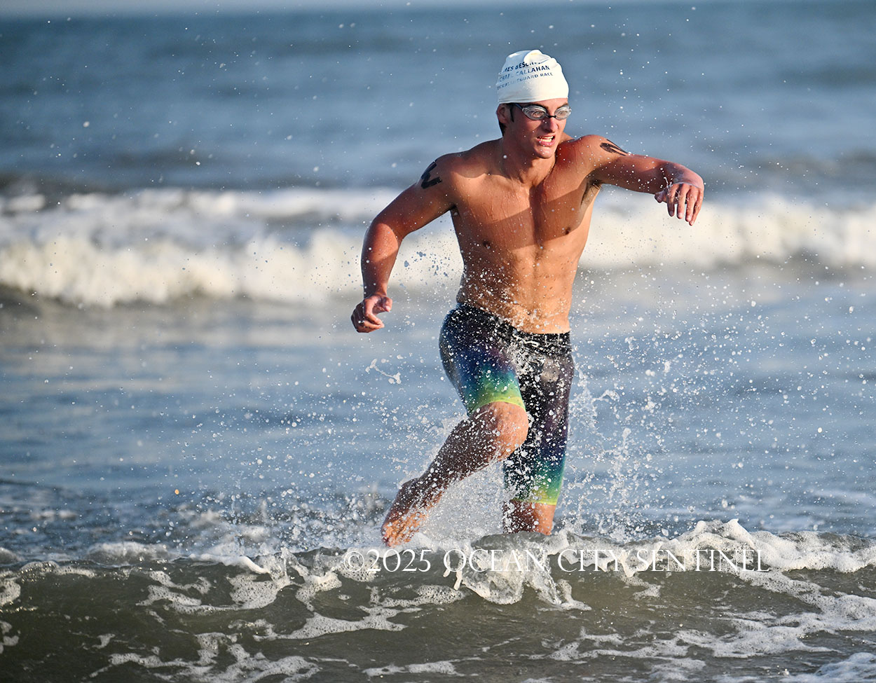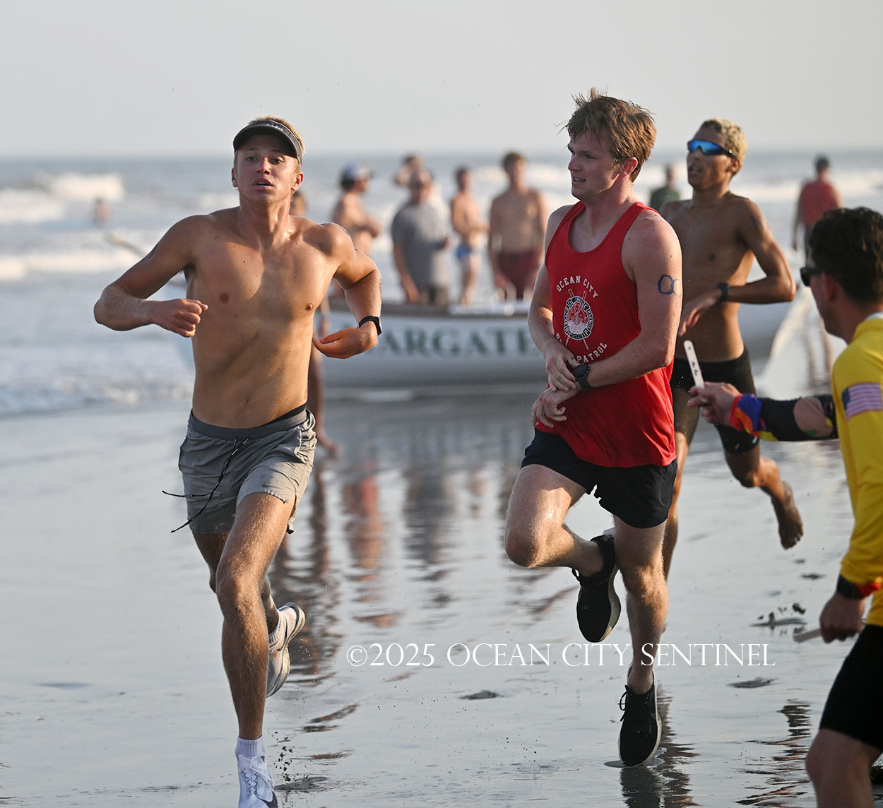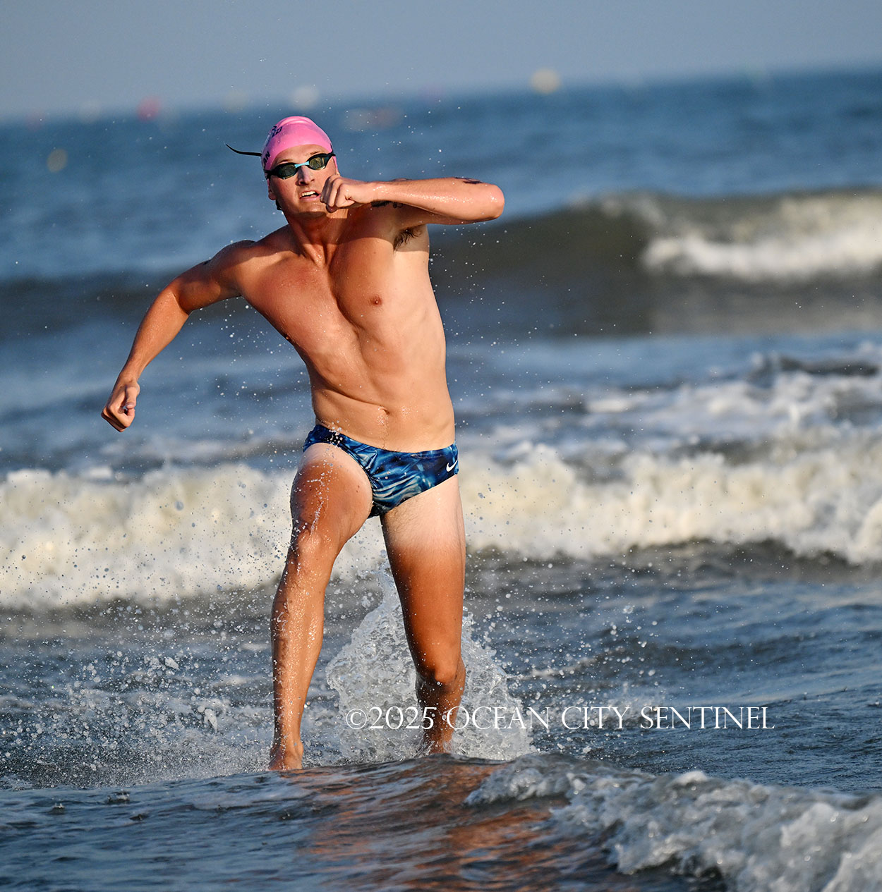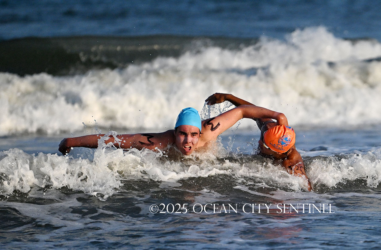 Ventnor’s Ben Iannelli was second, Margate’s Mitchell Zappone third, Ocean City’s Chase Ritter fourth, courtesy of a strong dash out of the surf, and Upper Township’s James Carr fifth.