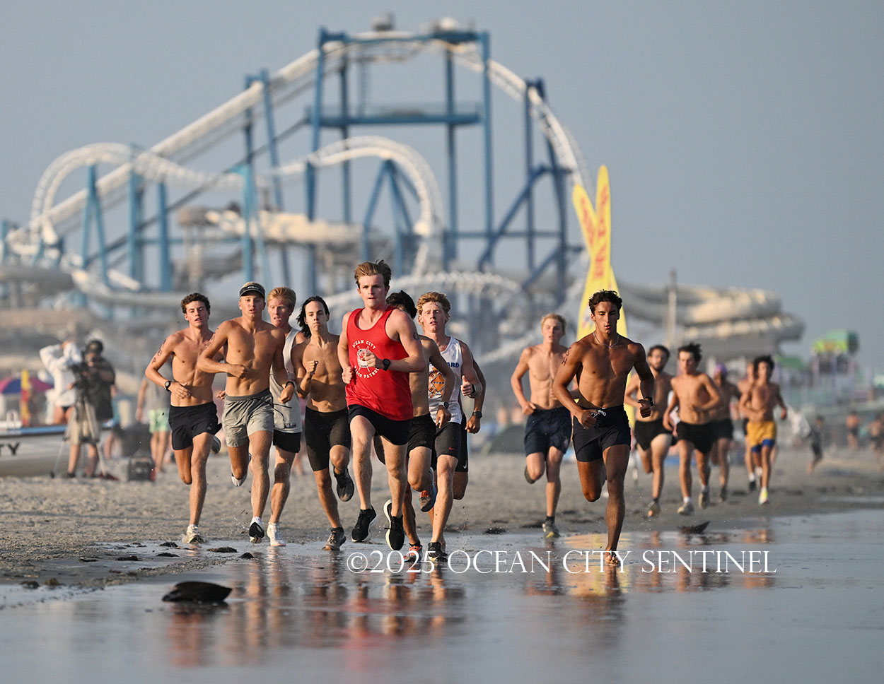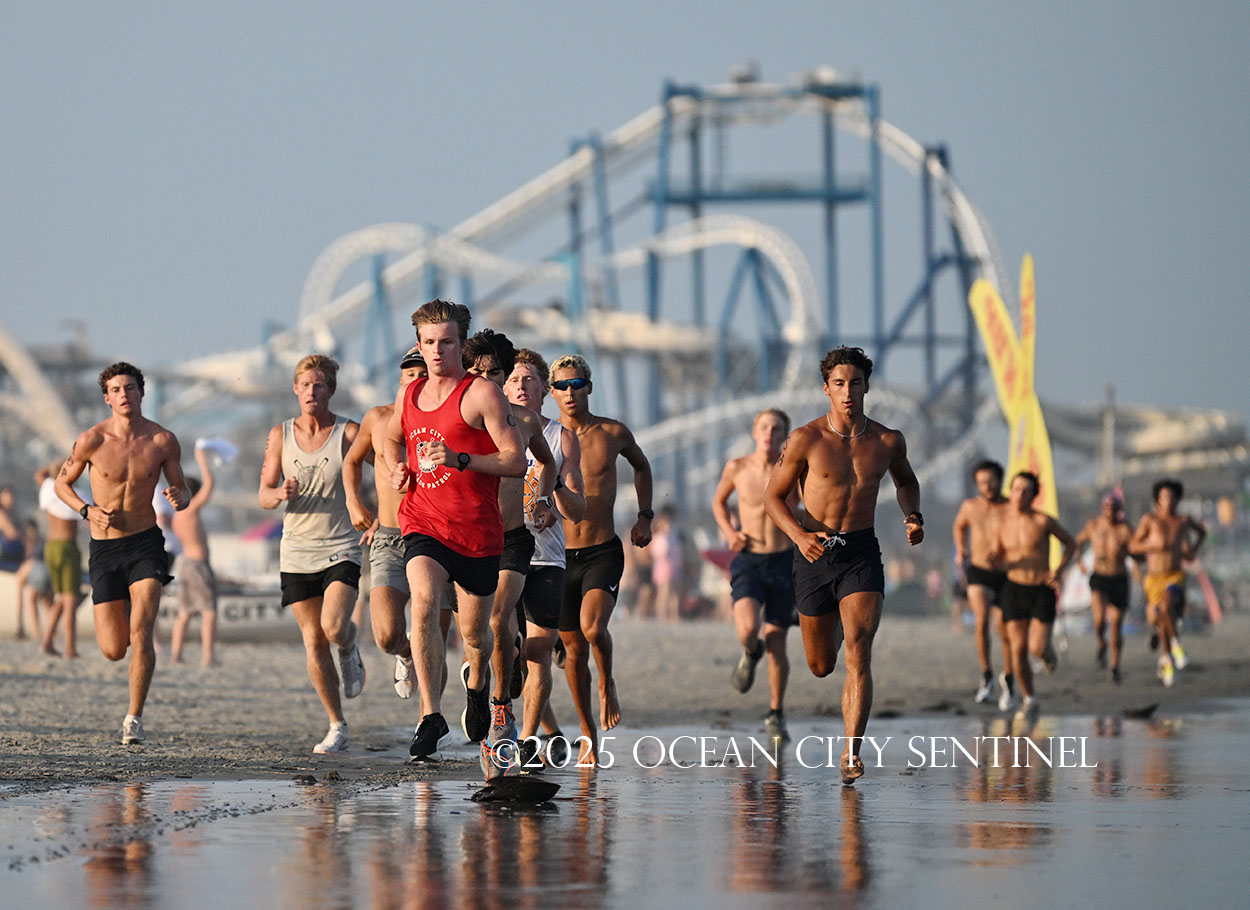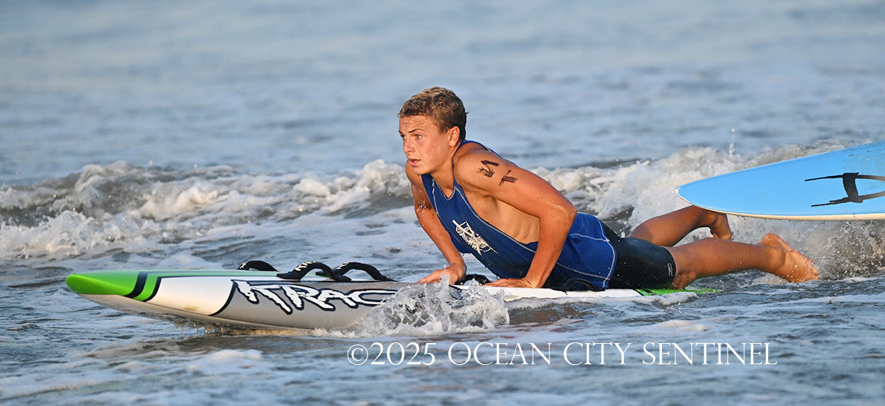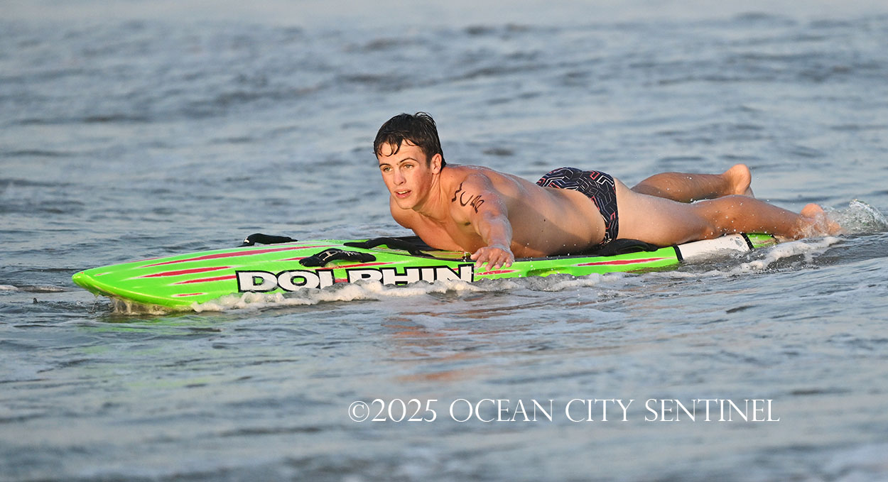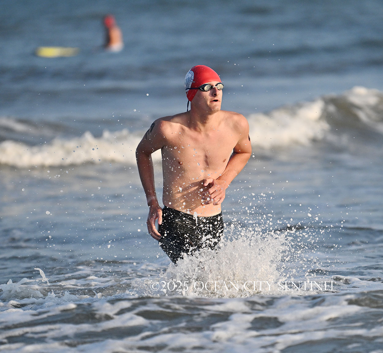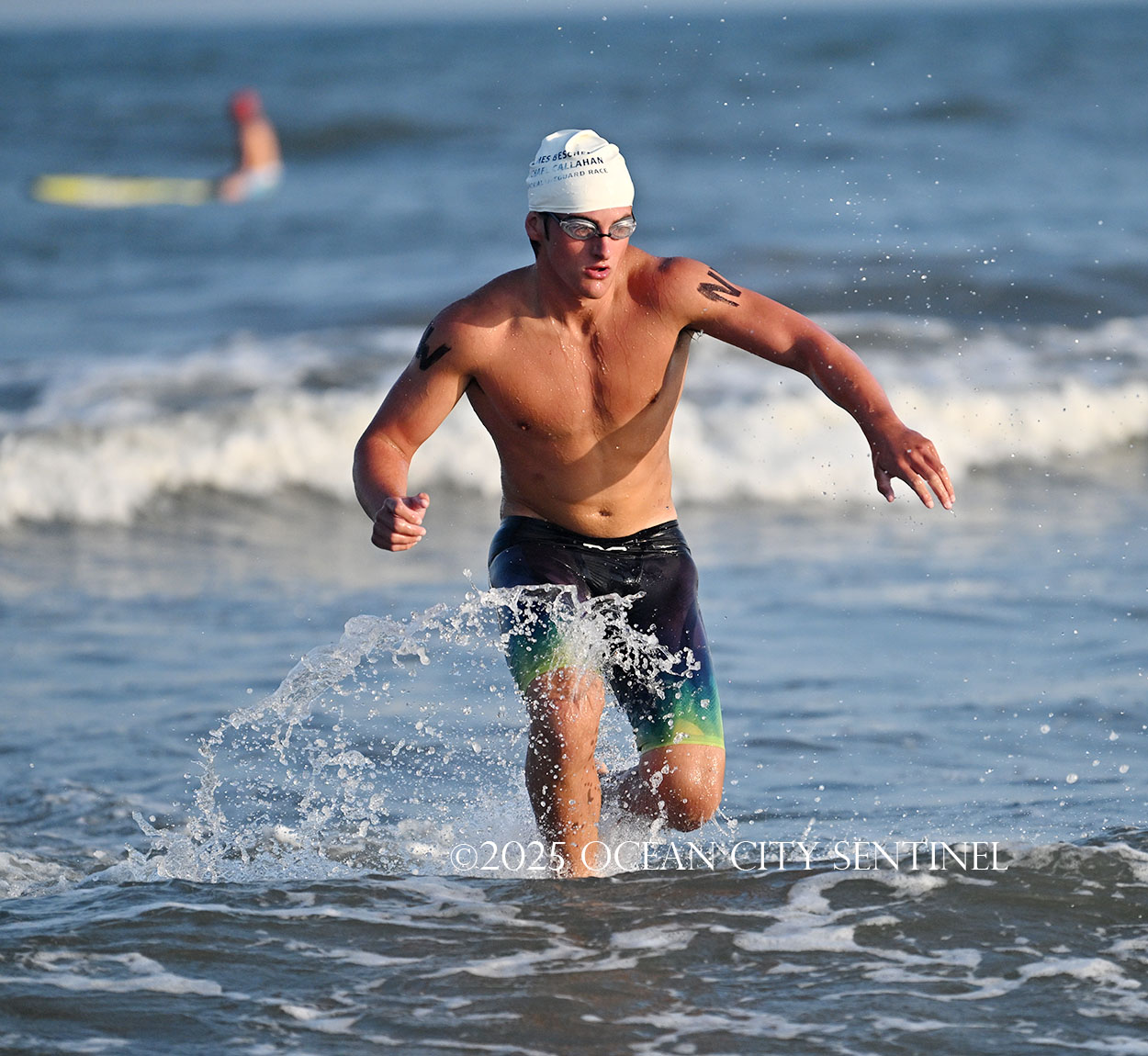 Ventnor’s Ben Iannelli was second, Margate’s Mitchell Zappone third, Ocean City’s Chase Ritter fourth, courtesy of a strong dash out of the surf, and Upper Township’s James Carr fifth.
