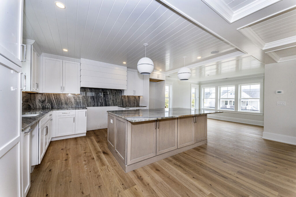 Looking for a place to gather? The wide-open great room includes a cozy sitting area centered on a gas fireplace, along with a kitchen sporting the indisputable largest center island in the city (9 feet by 5 feet and able to accommodate six to eight stools). Set in the corner with multiple windows on the beach side, the dining area is spacious enough for a large table.