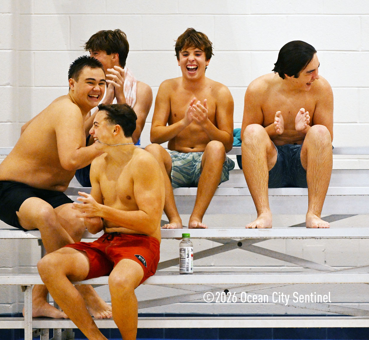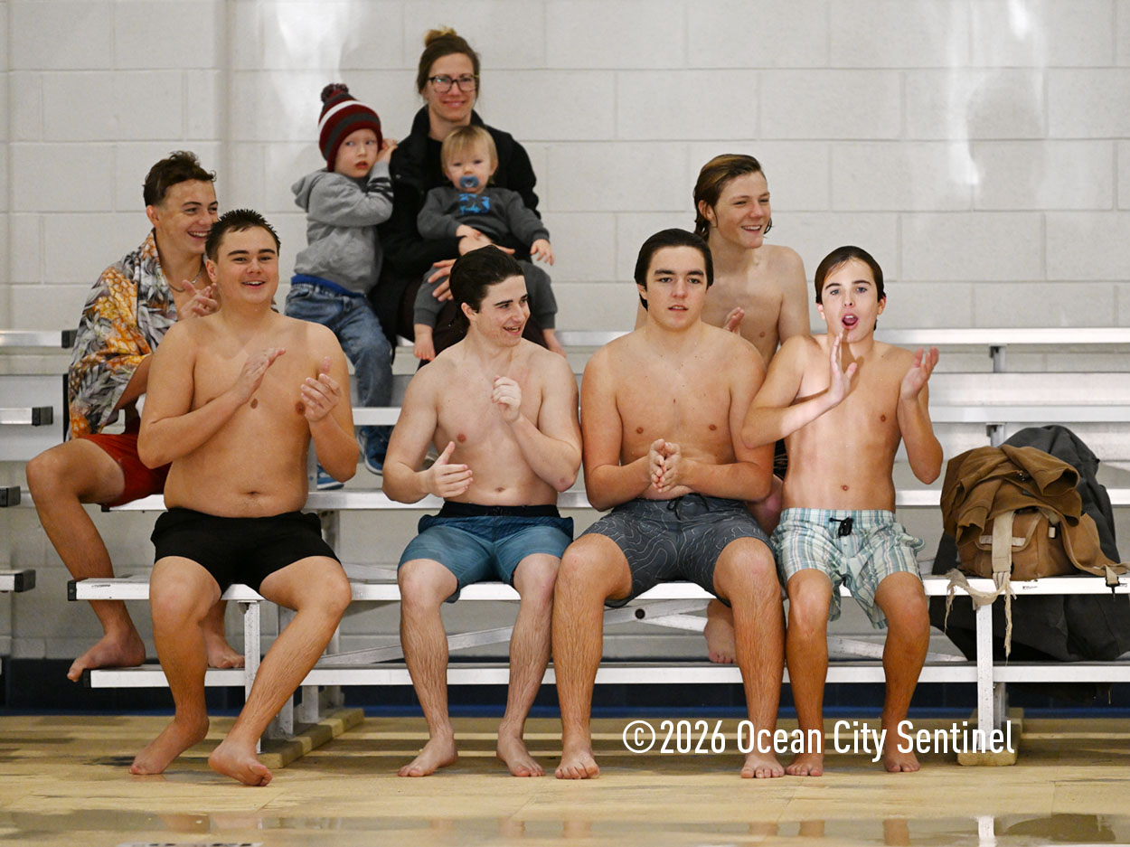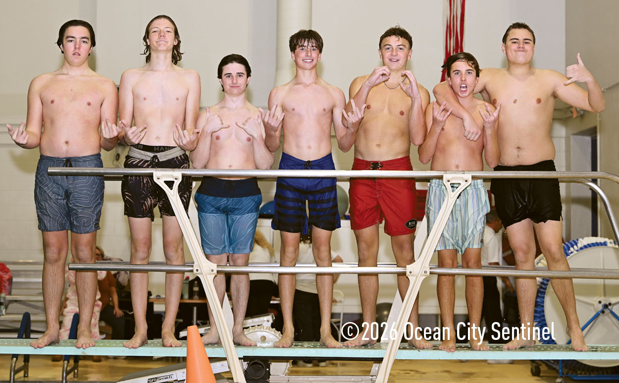 Ocean City High School divers include, left, from left, girls Emily Russo, Melana Rush, Kailyn Nilson, Natalie Graff, Lucia Palombo, Taylor Coffey and Lily Kilgallon; and, below, boys Wyatt Rush, Richard Ford, Cavan MacTiernan, Luke Chickadel, James Carr, Grady Hoffman and Gavin Oliver.