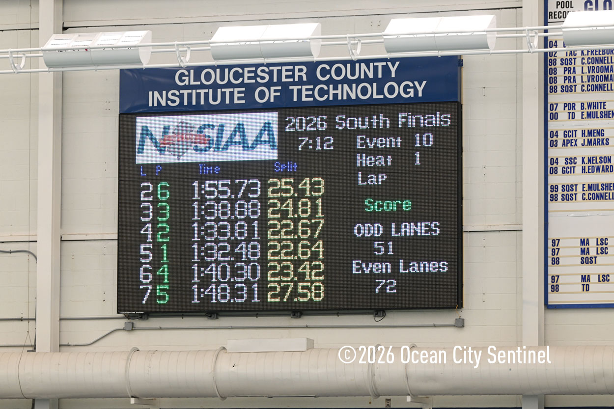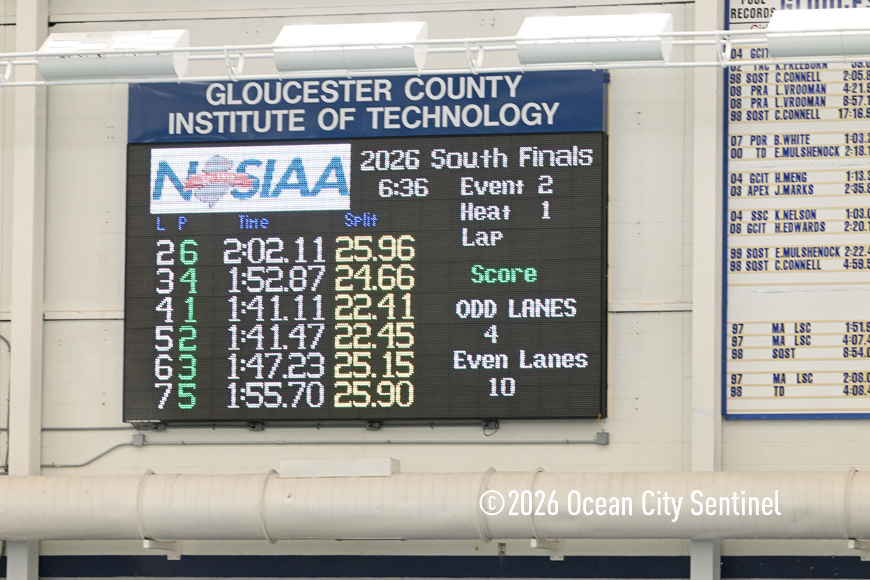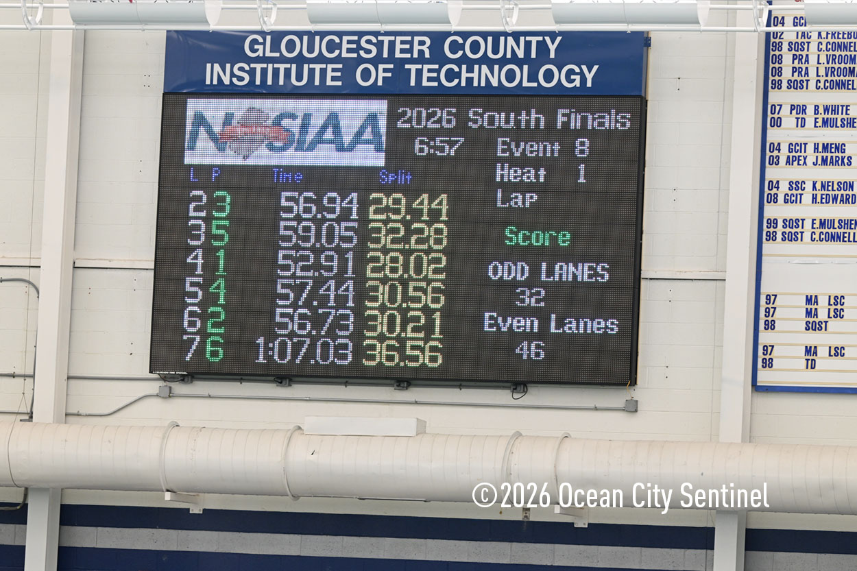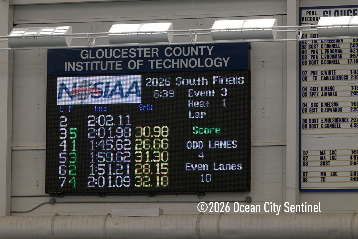 “It was great. The kids really stepped up today and had a great meet. I’m excited for them,” Booth said. “We knew coming in that this was a good possibility. Ocean City swam really well and in the beginning of the meet they were right on our heels.”