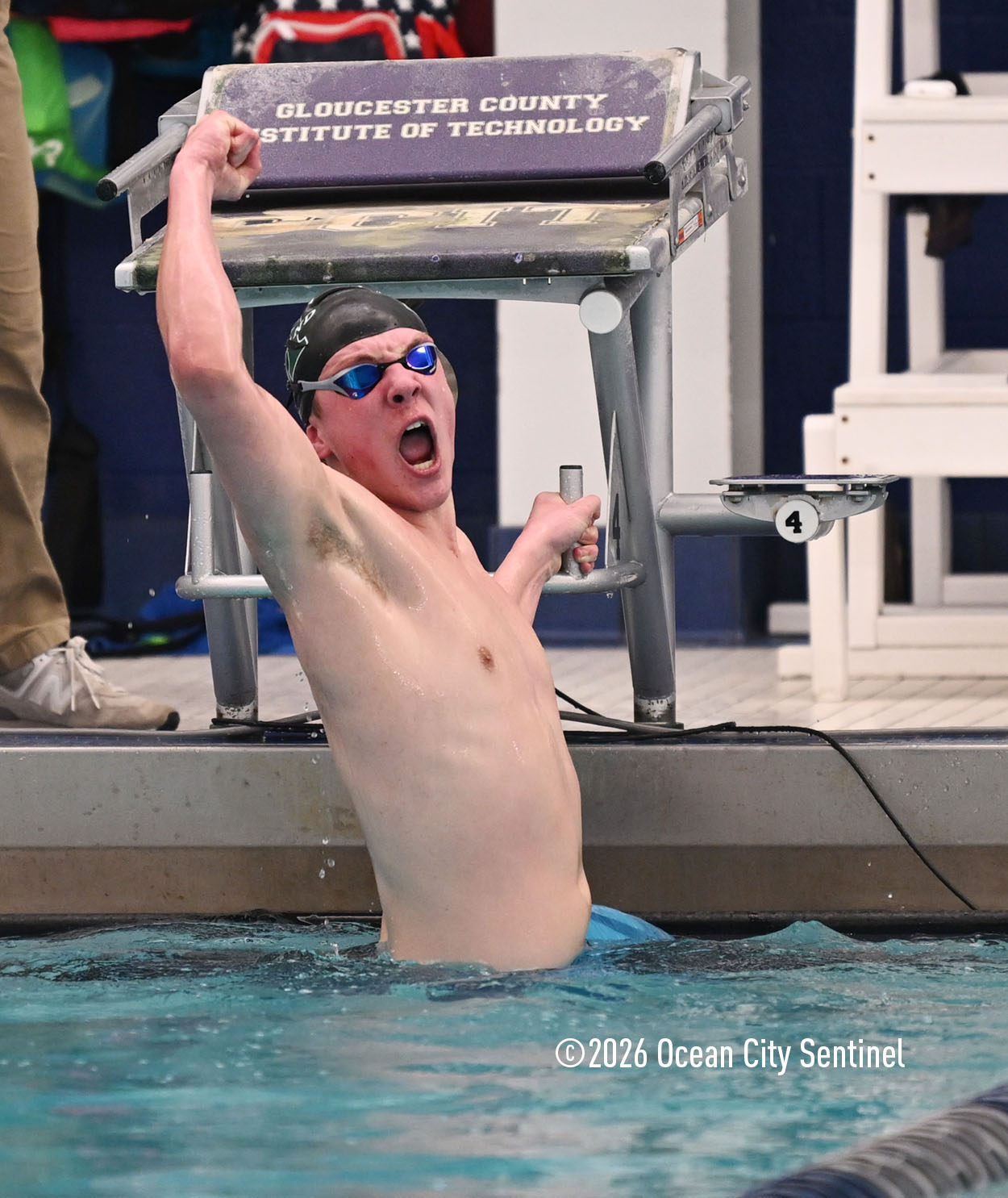 At the Gloucester County Institute of Technology pool, Mainland’s Smith, Yon, Kennedy and Robert Nirenberg won the opening 200-yard medley relay in a time of 1 minute, 40.11 seconds. Teammates Ian Pruitt, Marek Meyers, Parker Sherwood and David Simpson were third. Ocean City’s Jason Chojnacki, Mosendz, Wilson Stauffer and Jack Scherbin placed second in 1:41.47.