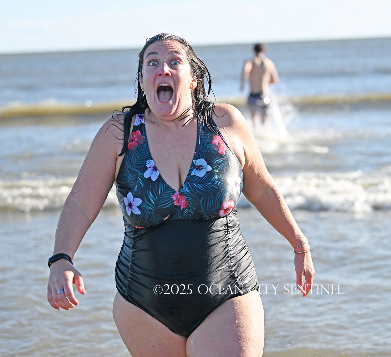 Emilie Gutierrez of Hammonton was taking the plunge “to start the new year fresh. This is my 16th year. It used to be a hangover cure,” she said, laughing, “but I don’t know now.”