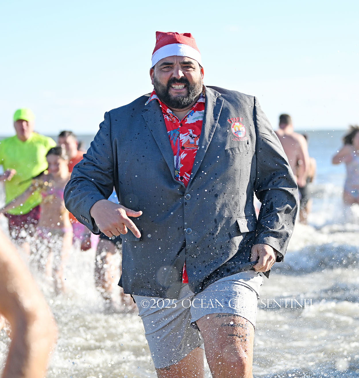 He noted the onesies keep them warm when they’re on the beach but they ditch them before going into the water. “We’re taking them out for one more ride, you know. The big man’s back in the North Pole but we’re still out here doing it,” he said.