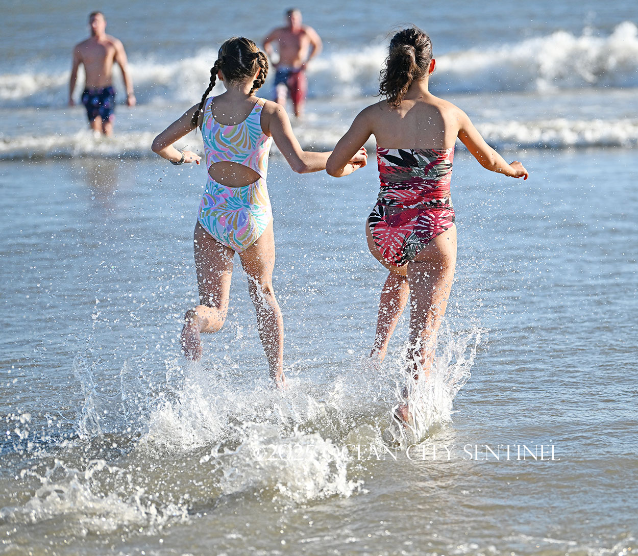 And with that, she and Arianna raced back into the water. They both fully submerged, jumped back up and ran back to the beach.