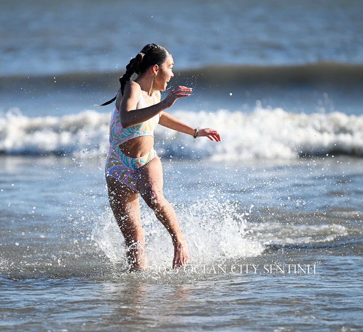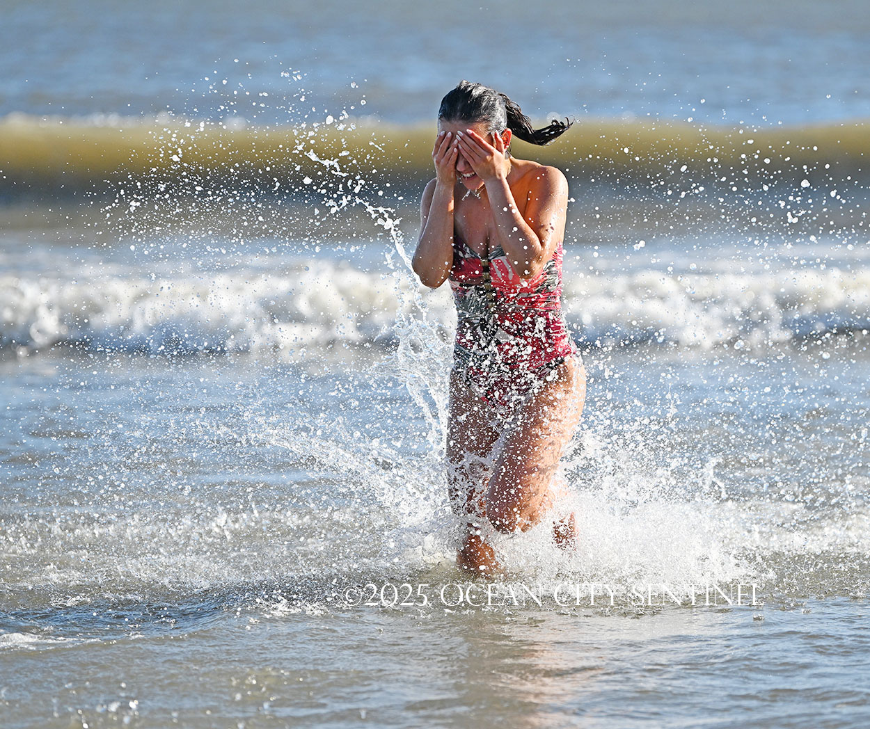 “It was much colder than I anticipated. I’ve been thinking about it a lot. I Googled the temperature of the water before I came here, but it was so fun,” she said. “It’s a once-in-a-lifetime experience to do this as Miss New Jersey, and how special is it to do it here in Ocean City?”
