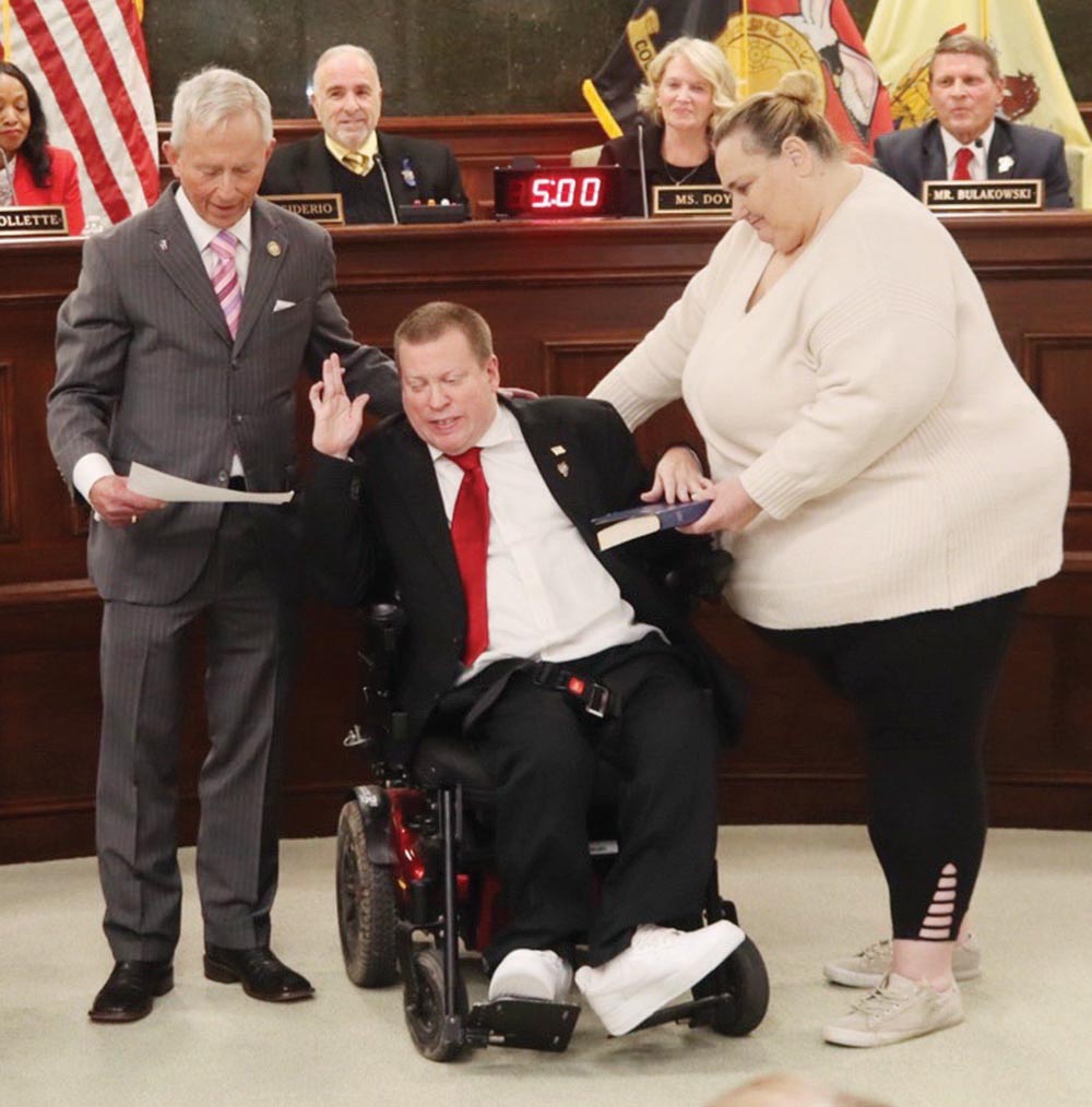 At top, U.S. Rep. Jeff Van Drew swears in Bobby Barr to his newest term on the Cape May County Board of Commissioners.