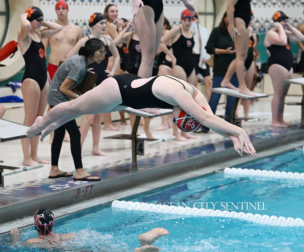 The Ocean City High School girls downed Oakcrest Jan. 12 on the road and then beat Middle Township 121-49 Friday, Jan. 16, at the Cape May County Special Services District School pool.