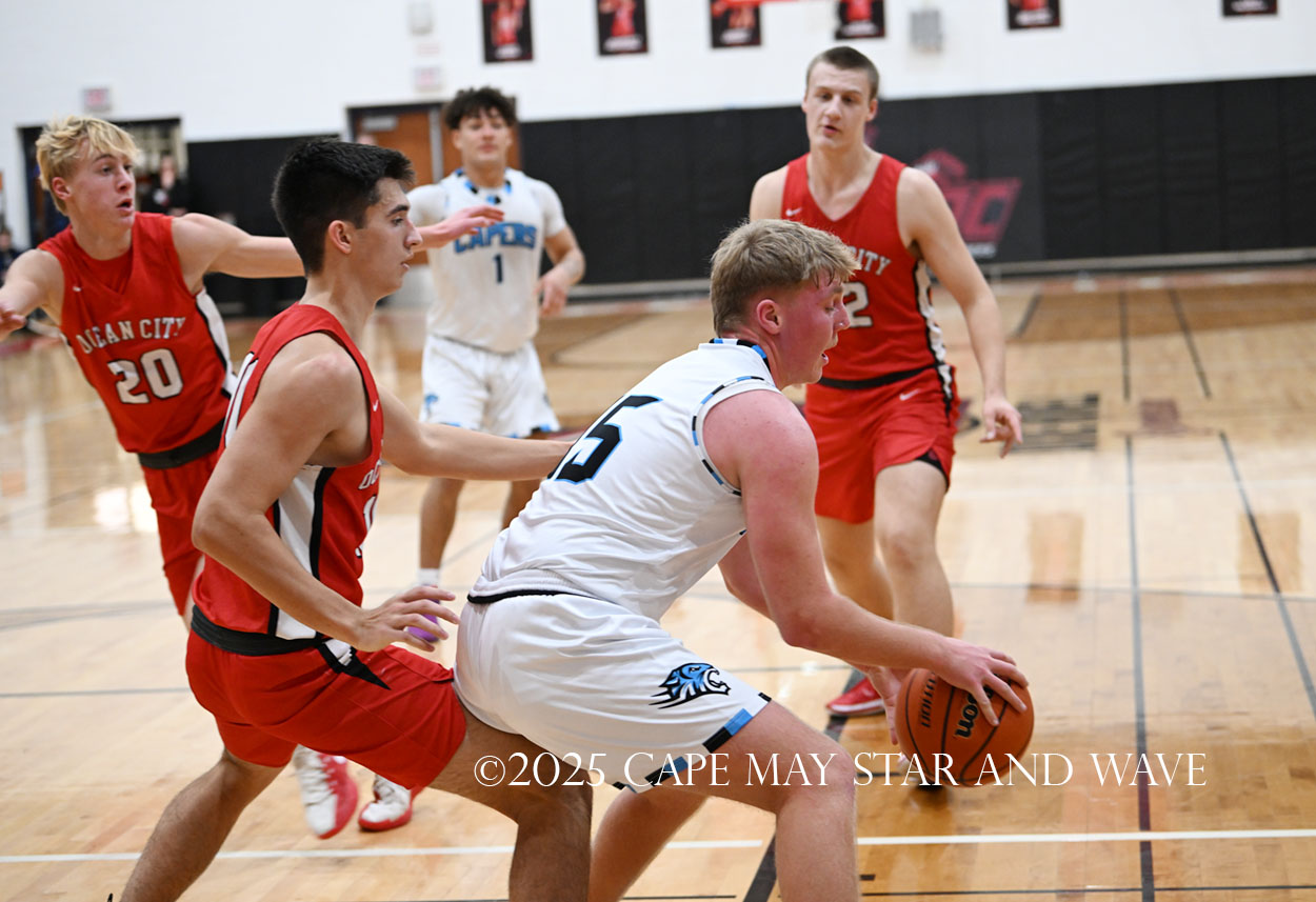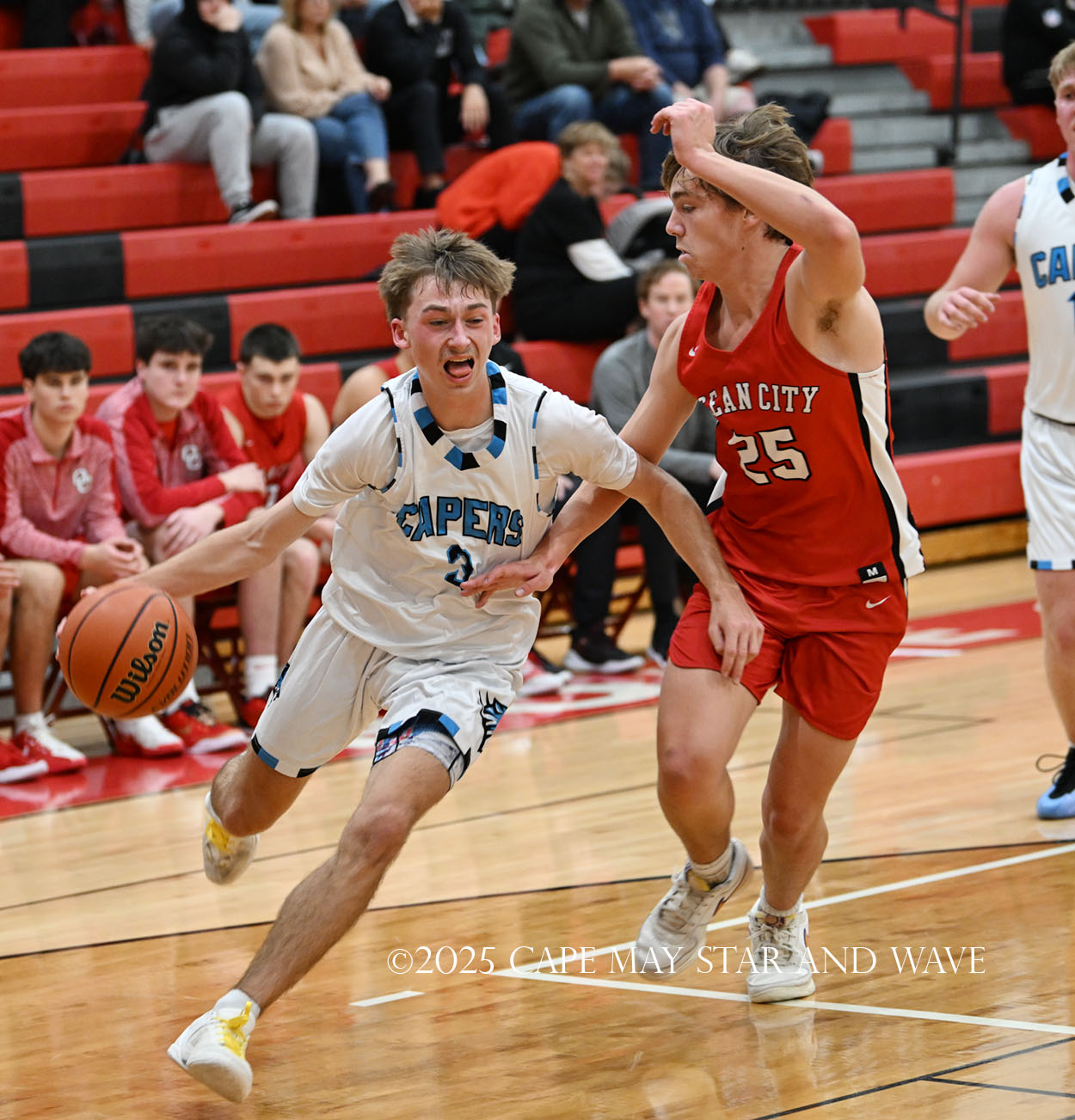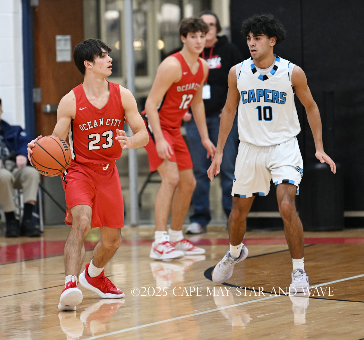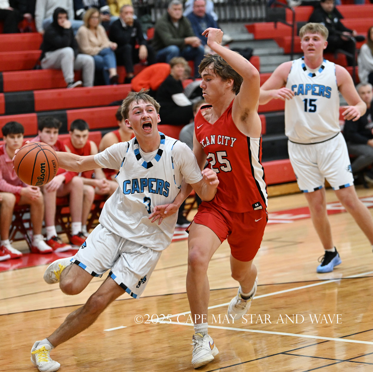 The two teams stayed neck and neck throughout the whole game but in the end Ocean City held on to win 57-53 on Dec. 21. Raider Josh Lenko led all scorers with a massive 32-point game in which he scored from all areas of the court. Caper Tiger Ty Bonner had 20 points for Lower, including eight in the fourth quarter to bring his team to within three points of the lead.