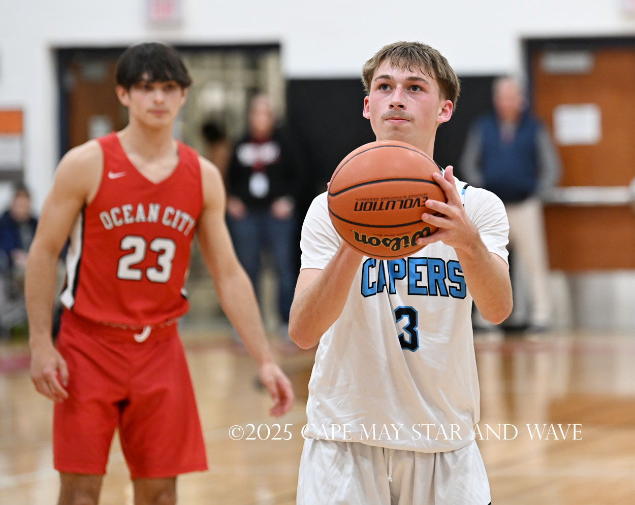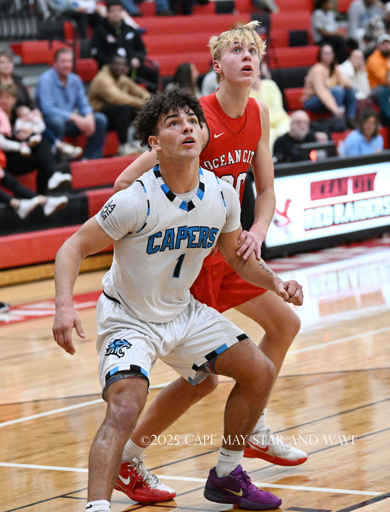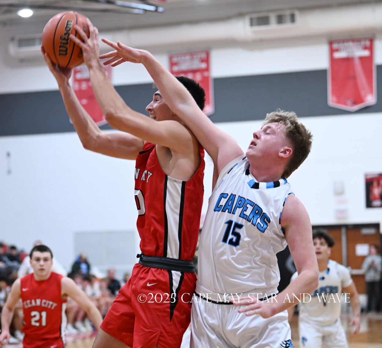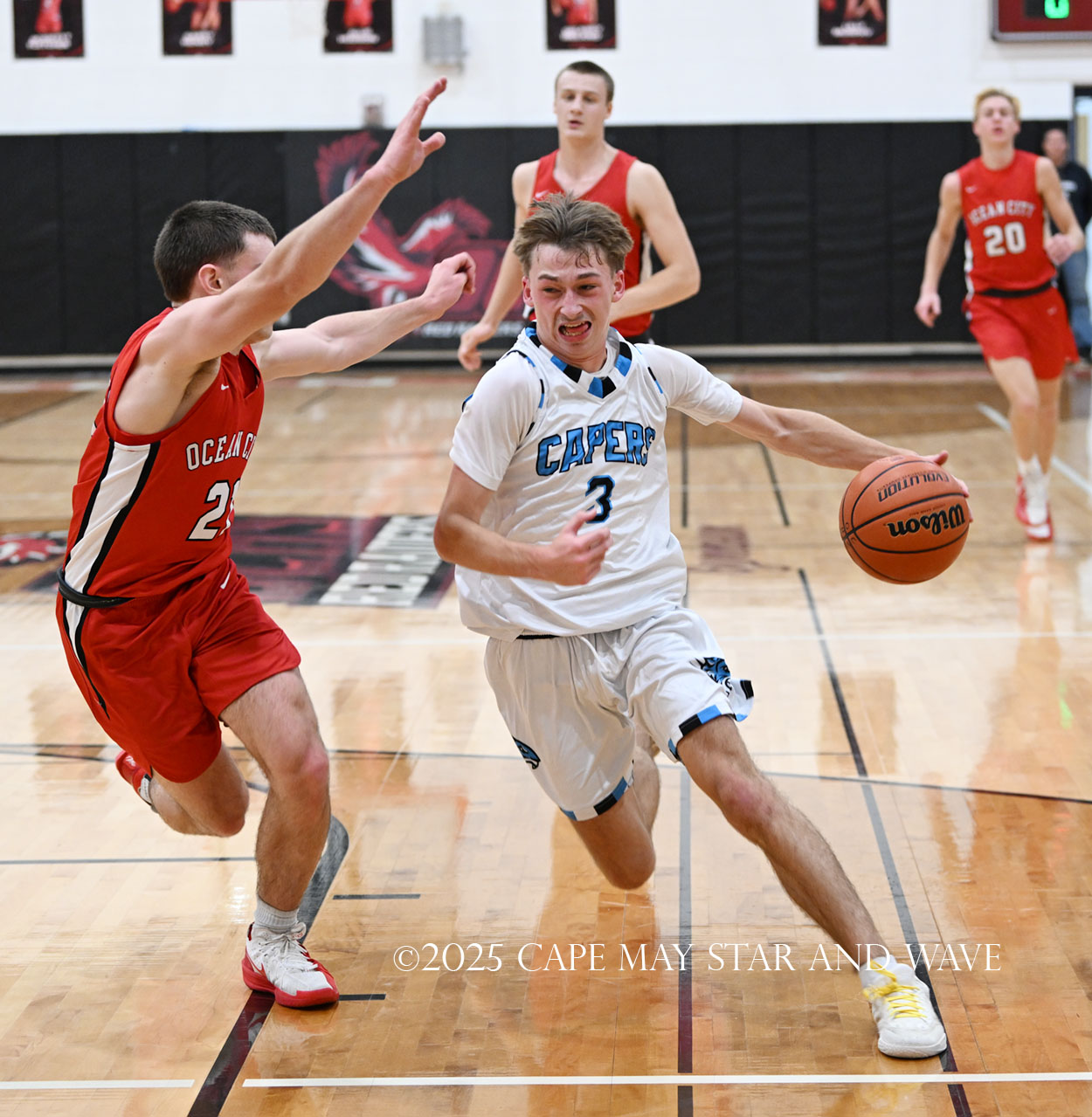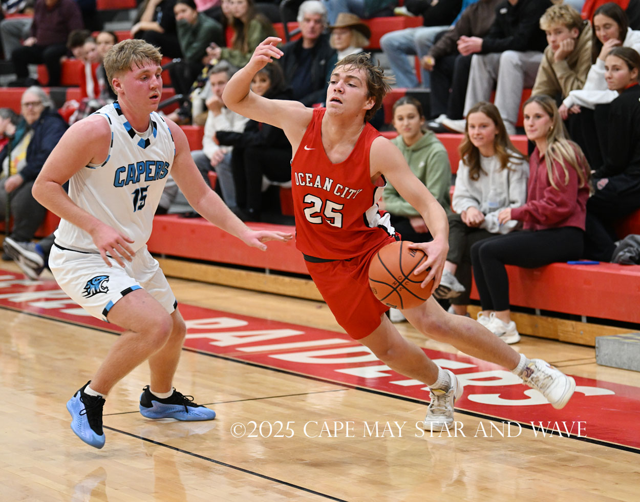 The two teams stayed neck and neck throughout the whole game but in the end Ocean City held on to win 57-53 on Dec. 21. Raider Josh Lenko led all scorers with a massive 32-point game in which he scored from all areas of the court. Caper Tiger Ty Bonner had 20 points for Lower, including eight in the fourth quarter to bring his team to within three points of the lead.