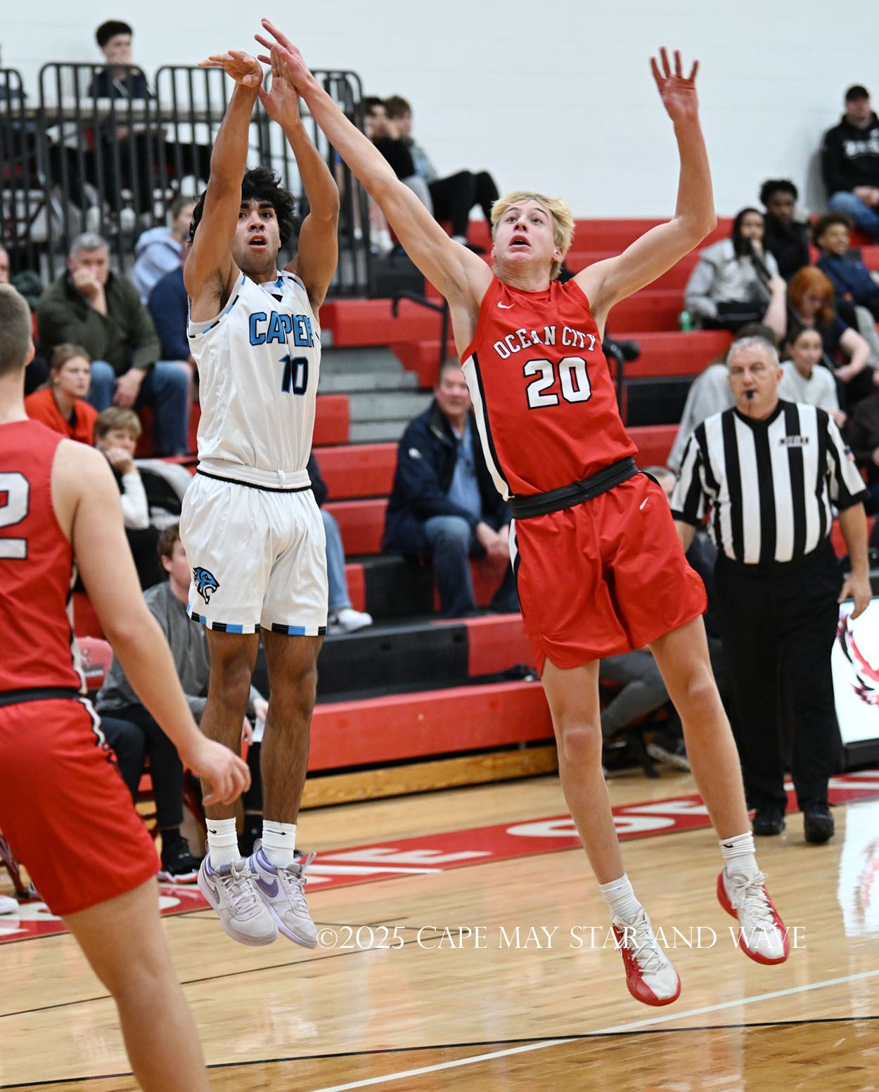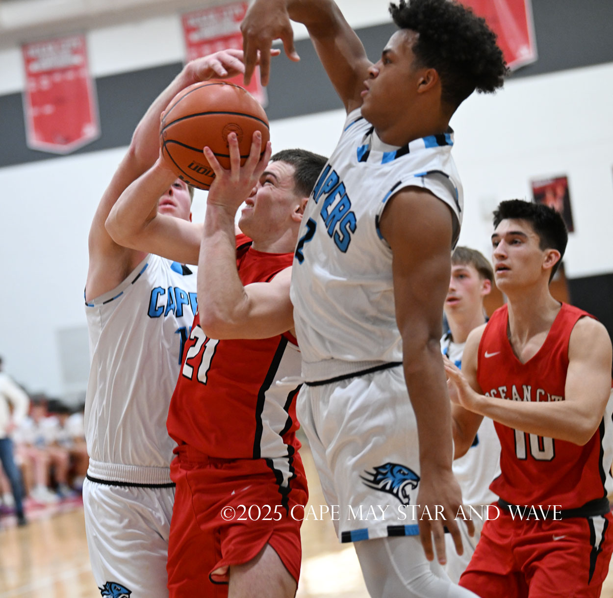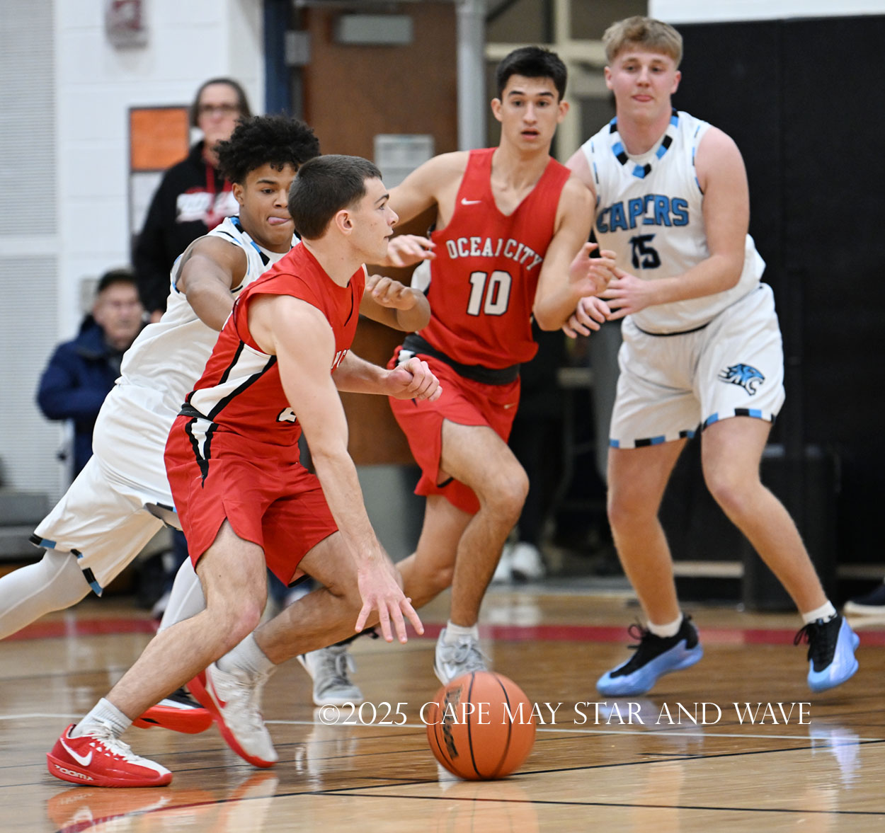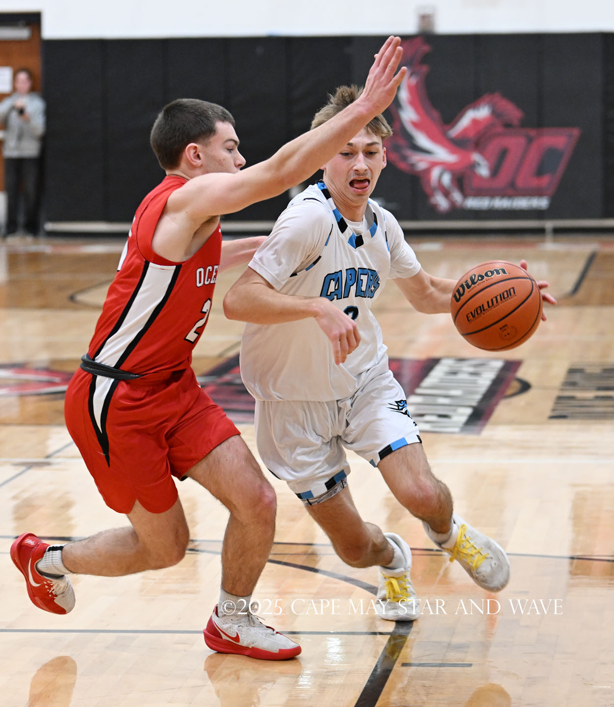 The two teams stayed neck and neck throughout the whole game but in the end Ocean City held on to win 57-53 on Dec. 21. Raider Josh Lenko led all scorers with a massive 32-point game in which he scored from all areas of the court. Caper Tiger Ty Bonner had 20 points for Lower, including eight in the fourth quarter to bring his team to within three points of the lead.