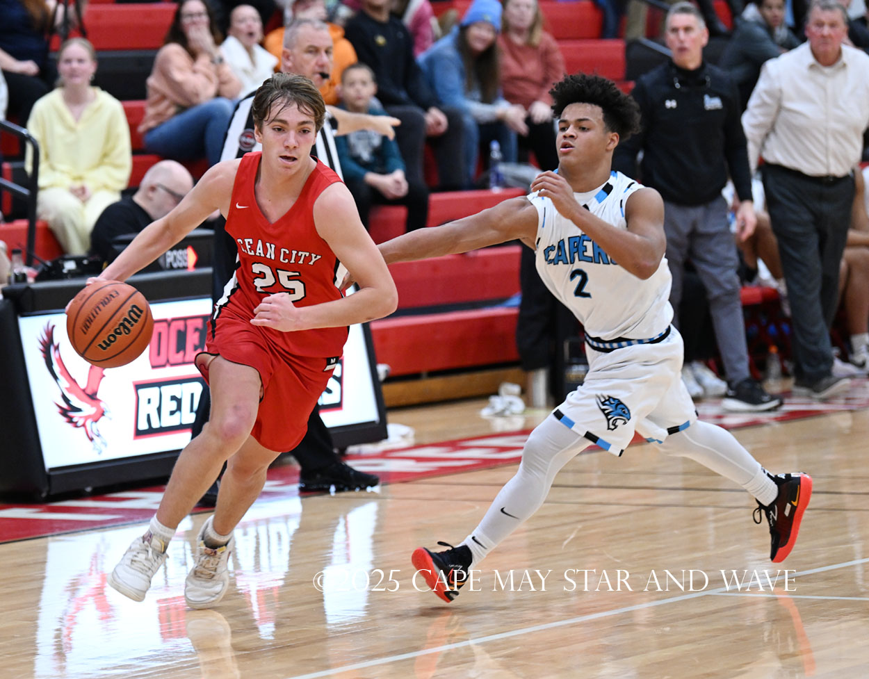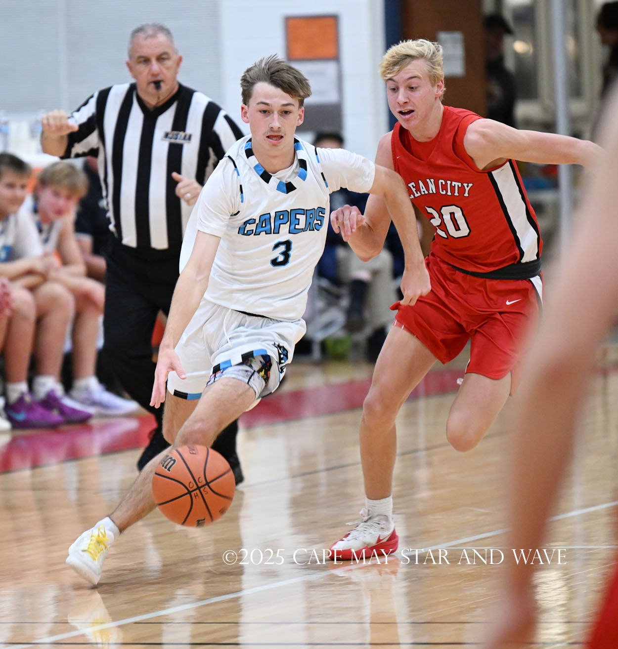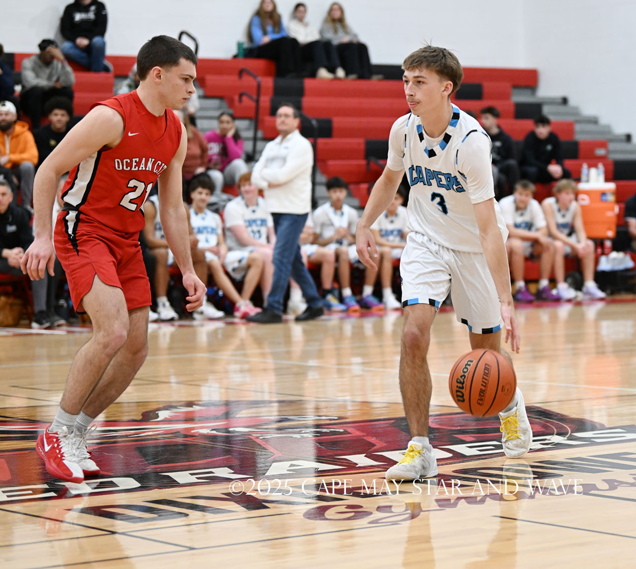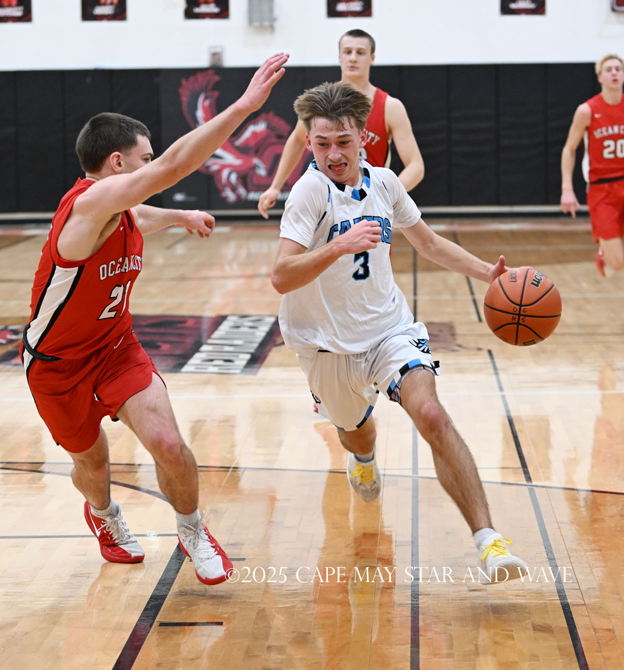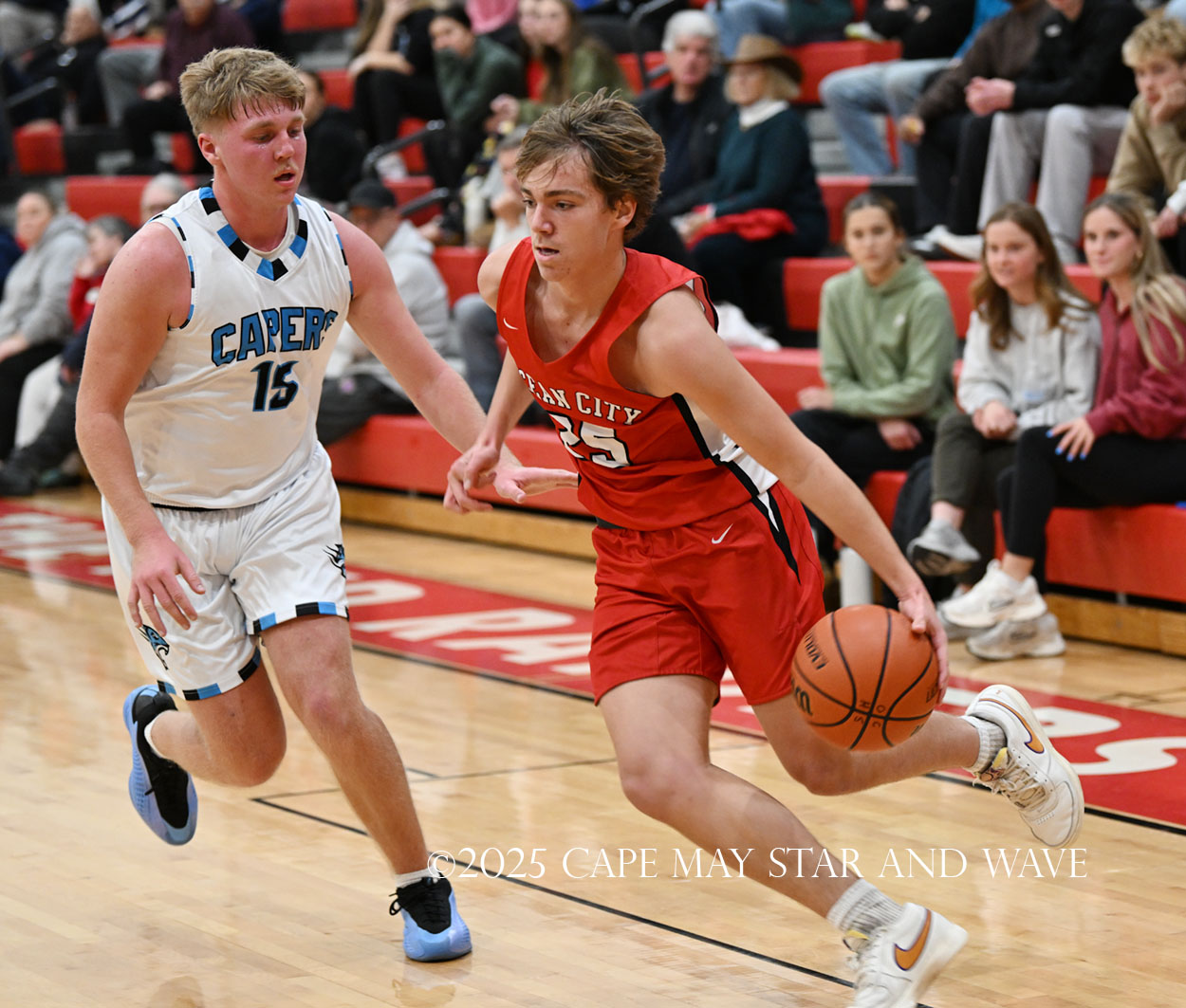 The two teams stayed neck and neck throughout the whole game but in the end Ocean City held on to win 57-53 on Dec. 21. Raider Josh Lenko led all scorers with a massive 32-point game in which he scored from all areas of the court. Caper Tiger Ty Bonner had 20 points for Lower, including eight in the fourth quarter to bring his team to within three points of the lead.