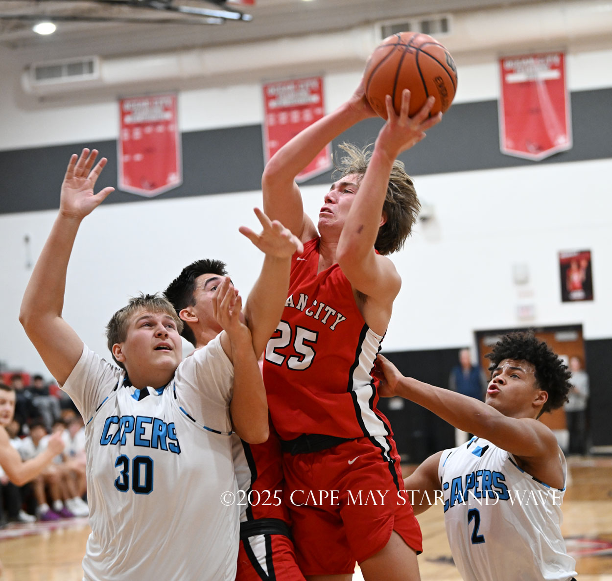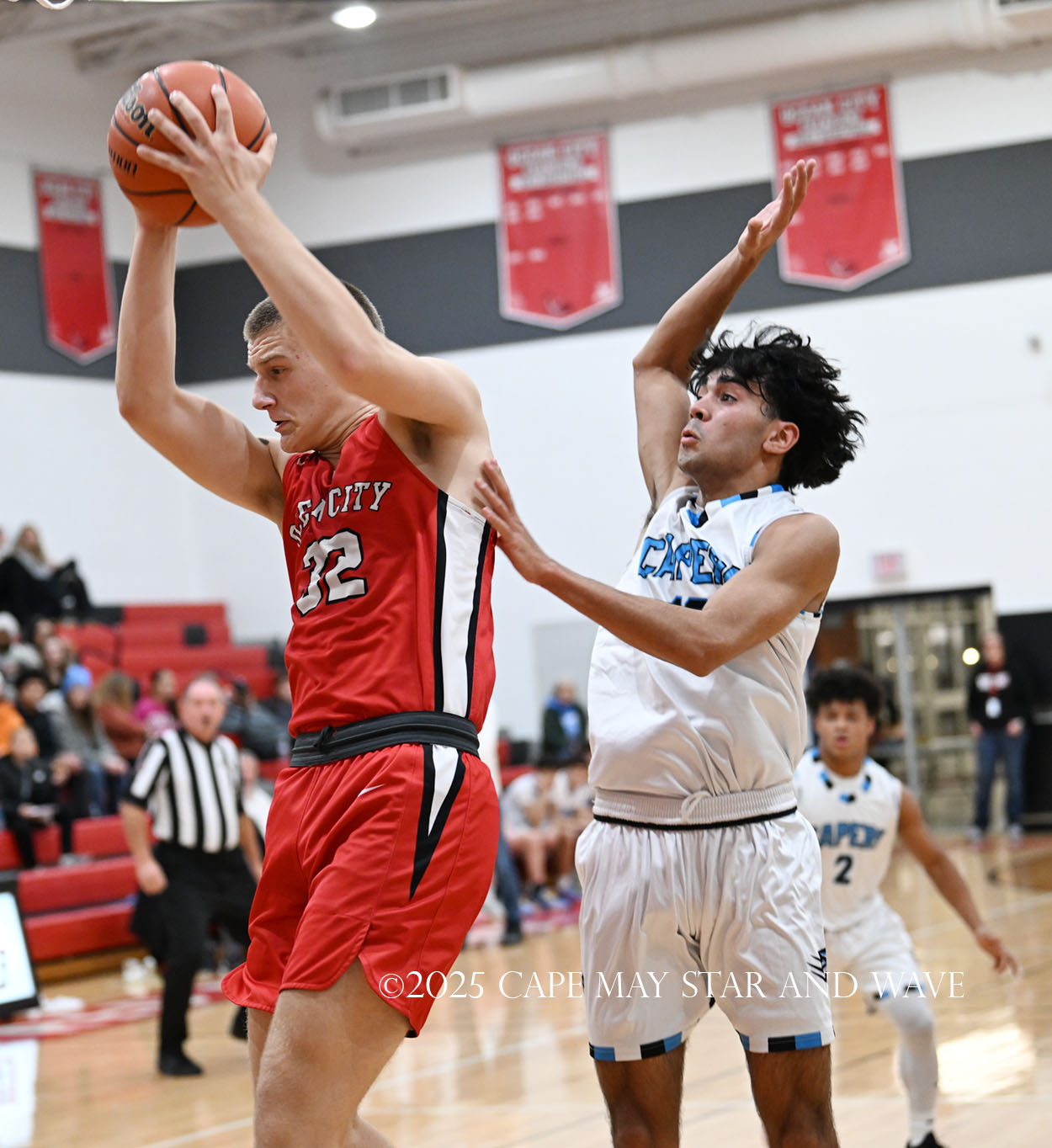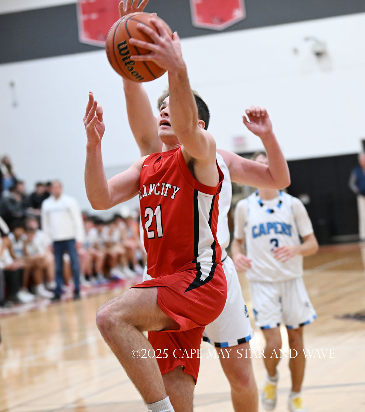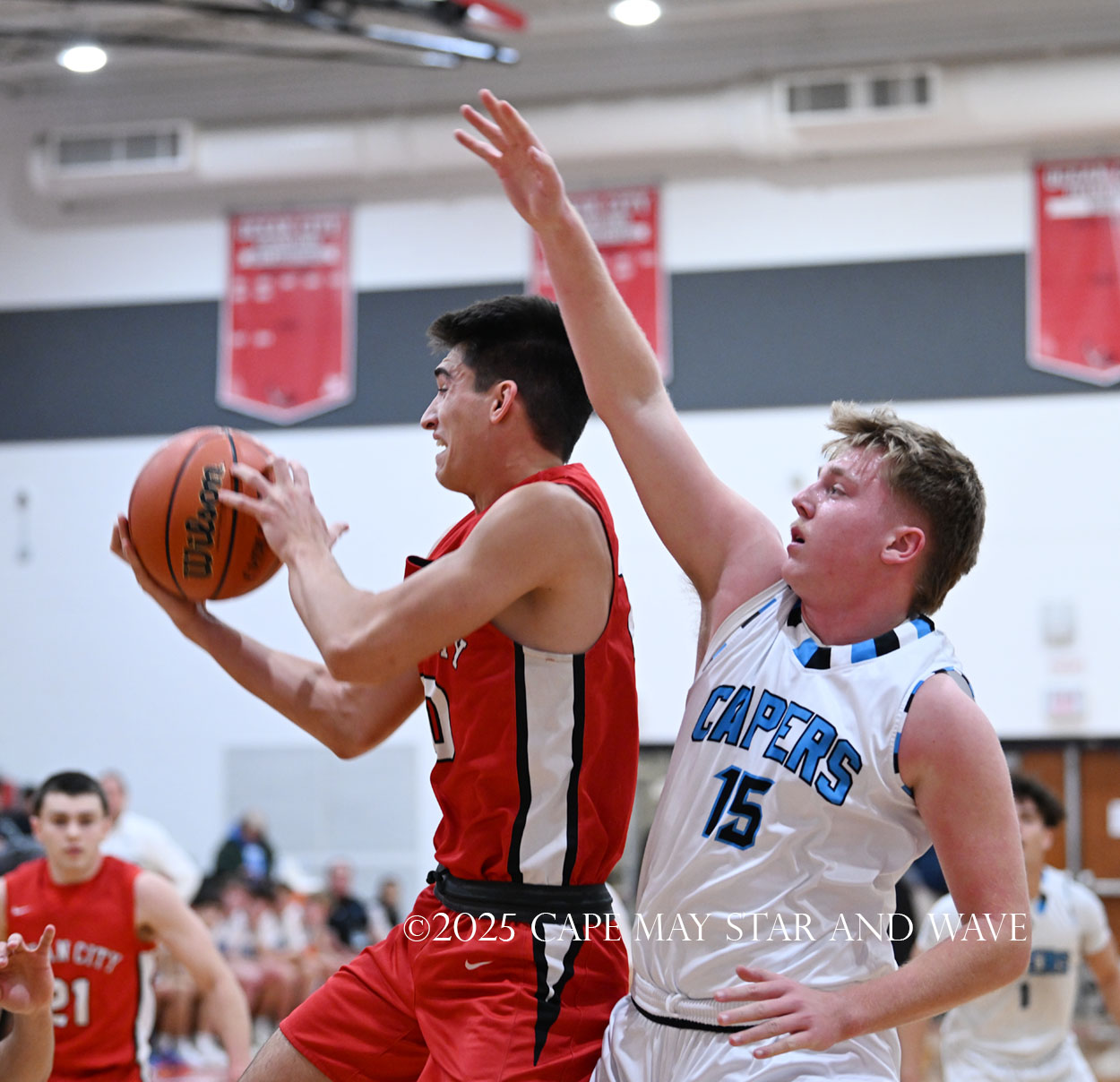 The two teams stayed neck and neck throughout the whole game but in the end Ocean City held on to win 57-53 on Dec. 21. Raider Josh Lenko led all scorers with a massive 32-point game in which he scored from all areas of the court. Caper Tiger Ty Bonner had 20 points for Lower, including eight in the fourth quarter to bring his team to within three points of the lead.