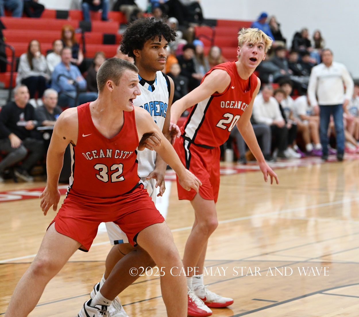 Cole Sederland and Gavin Ridgway both hit three big three-pointers to keep the pressure on Ocean City as the team’s primary long-range threats.