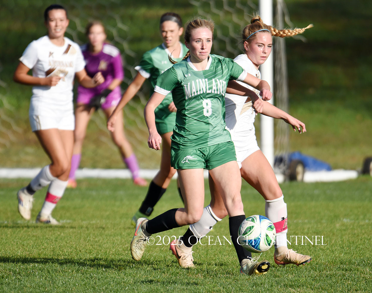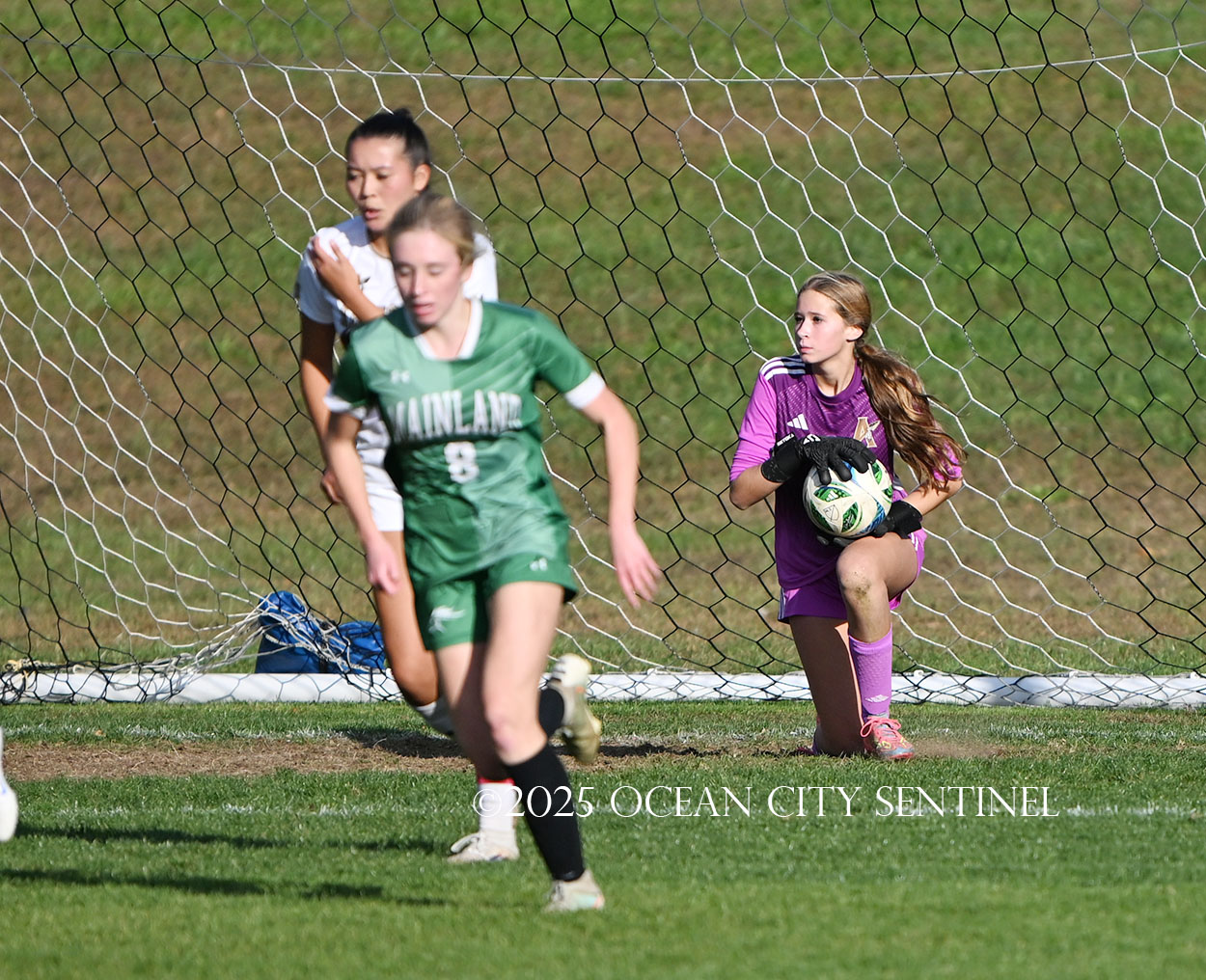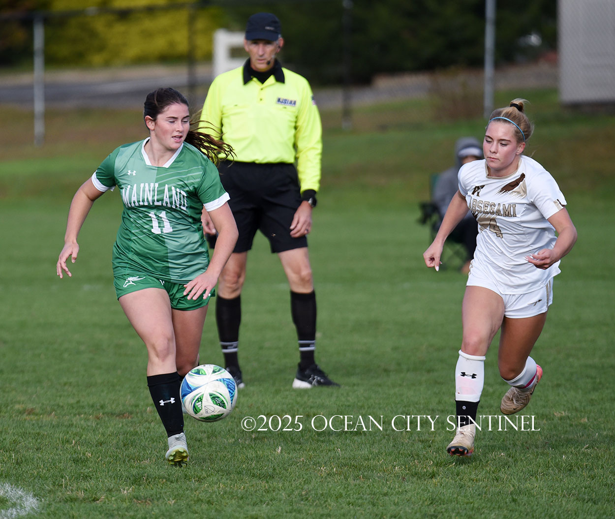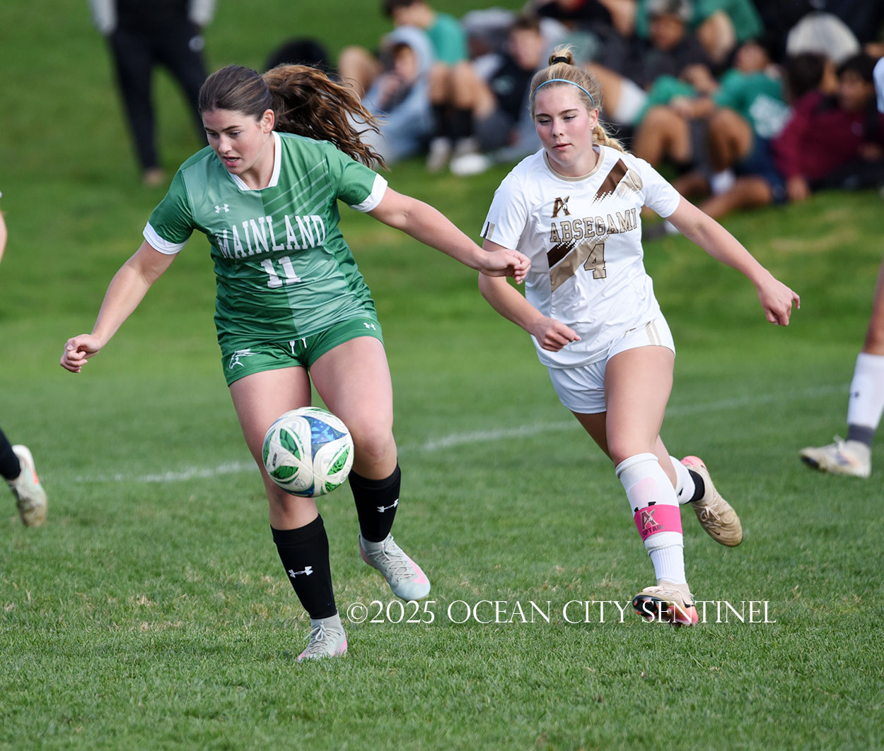 Mainland Regional High School (11-3 overall, 9-3 Cape-Atlantic League American Division) played an entertaining game against Absegami High School (13-2 overall, 12-0 CAL National) on Oct. 20 that ended in a 1-1 draw after 80 minutes of regular time and 20 more of overtime, forcing a penalty kick shootout for a chance to face Egg Harbor Township on Oct. 22 in the CAL final.