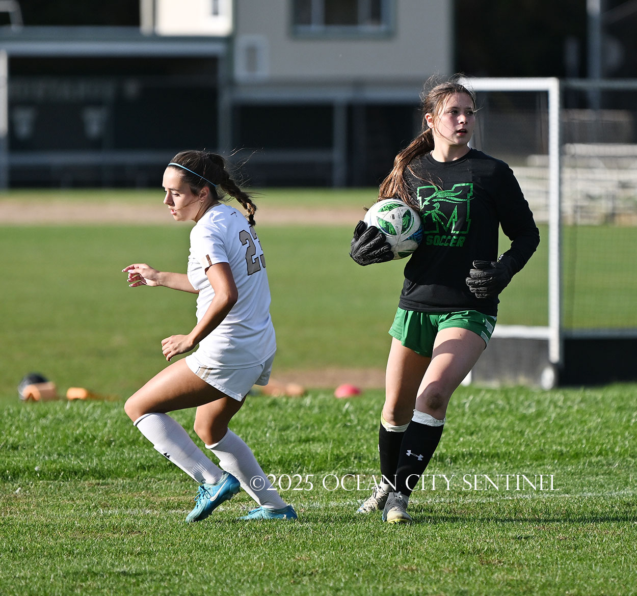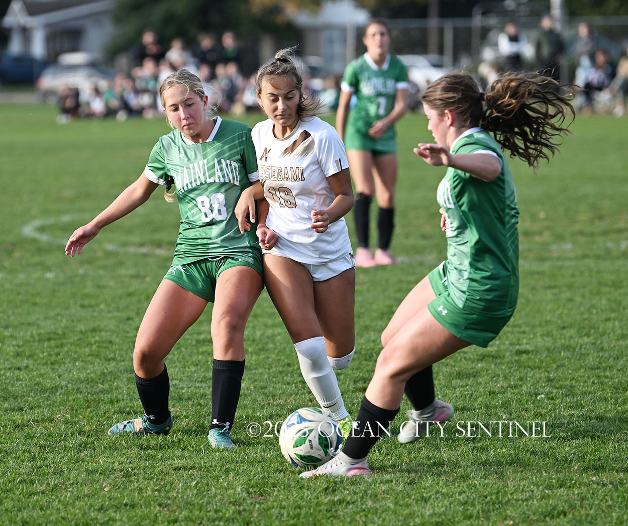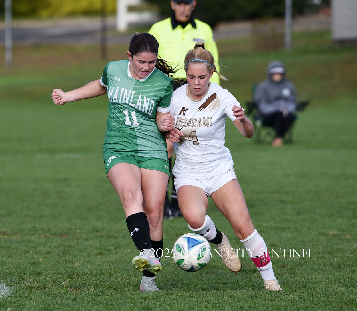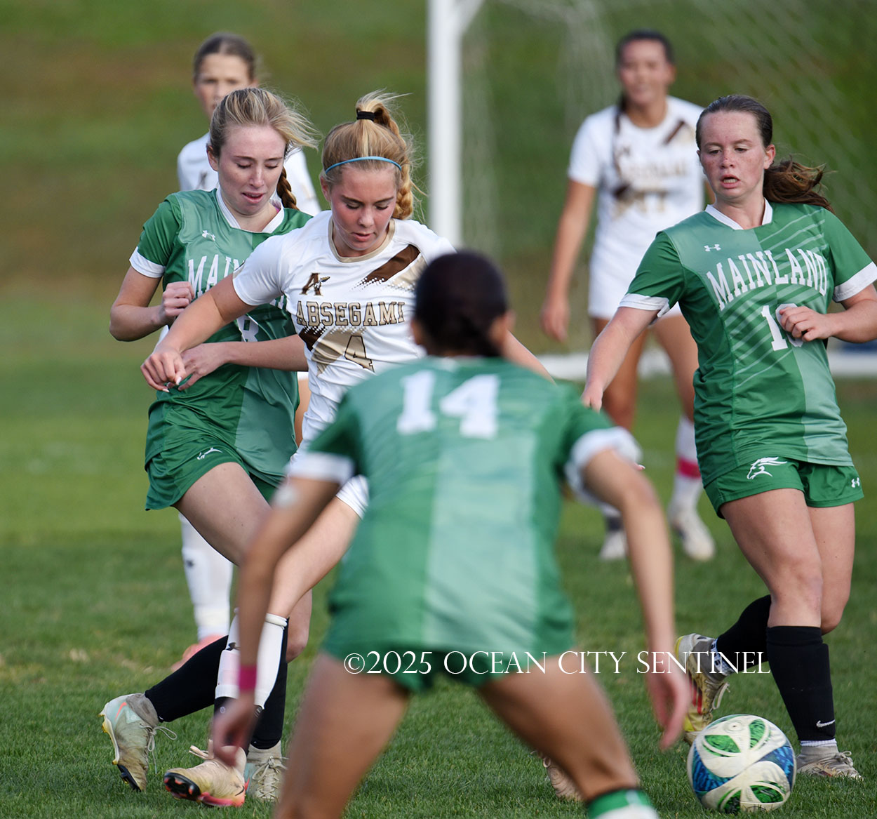 Mainland Regional High School (11-3 overall, 9-3 Cape-Atlantic League American Division) played an entertaining game against Absegami High School (13-2 overall, 12-0 CAL National) on Oct. 20 that ended in a 1-1 draw after 80 minutes of regular time and 20 more of overtime, forcing a penalty kick shootout for a chance to face Egg Harbor Township on Oct. 22 in the CAL final.