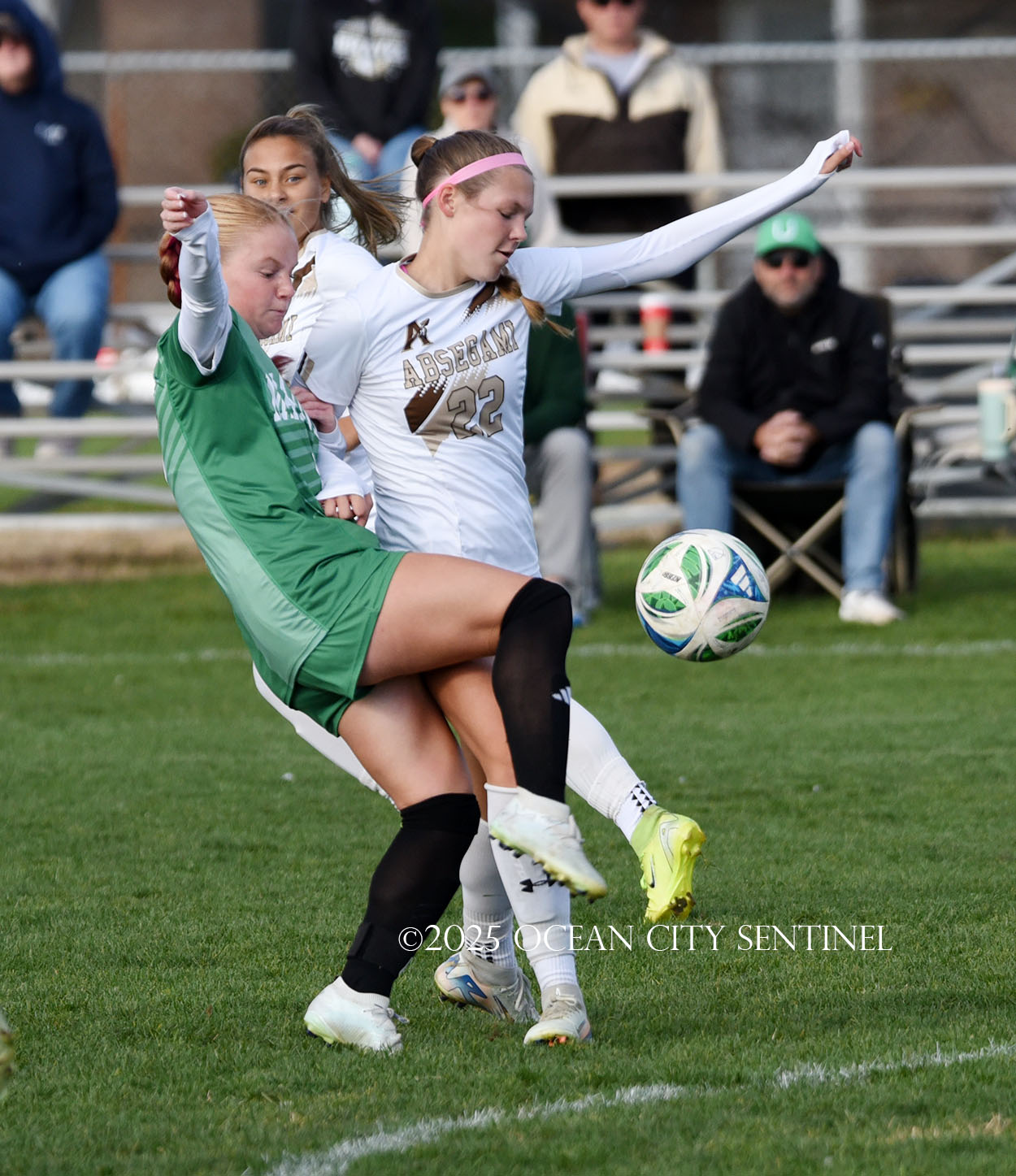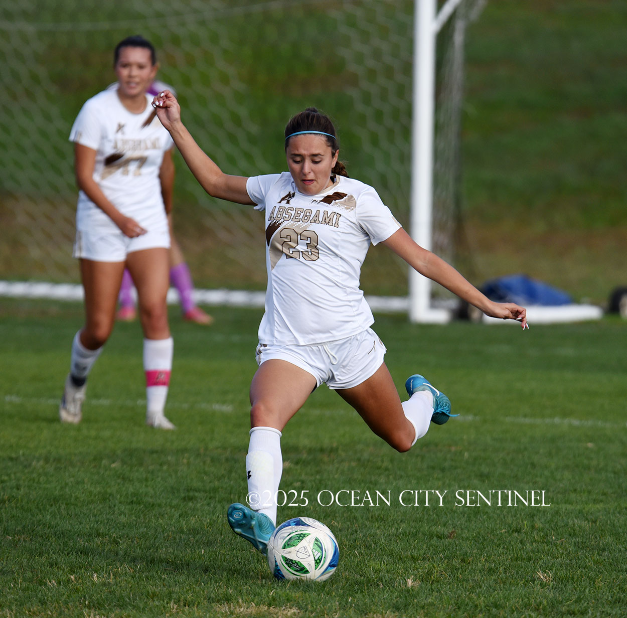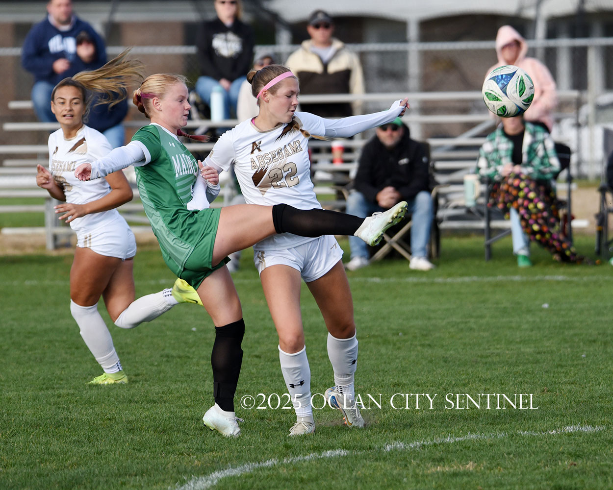 With a chance to tie, Absegami’s Natalie Moradel shot low to the right but Townsend made the save. However, it was determined that the goaltender moved early and the referee awarded another kick.