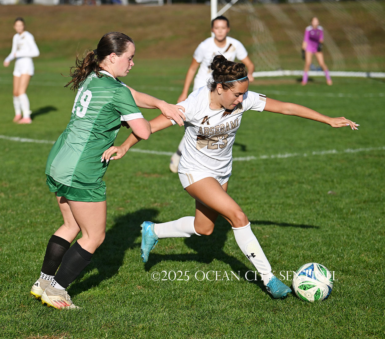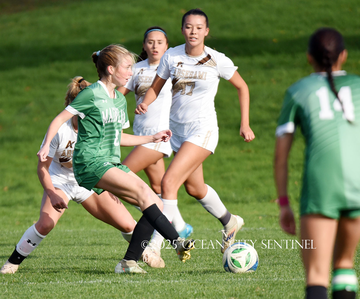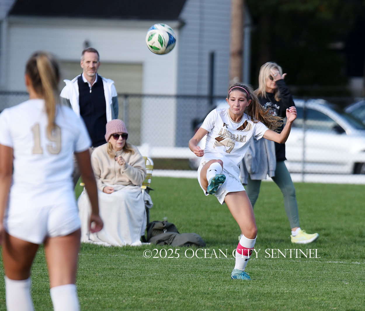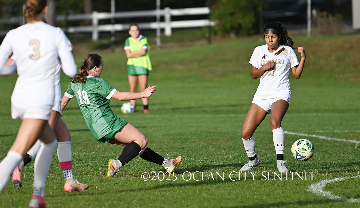 With a chance to tie, Absegami’s Natalie Moradel shot low to the right but Townsend made the save. However, it was determined that the goaltender moved early and the referee awarded another kick.