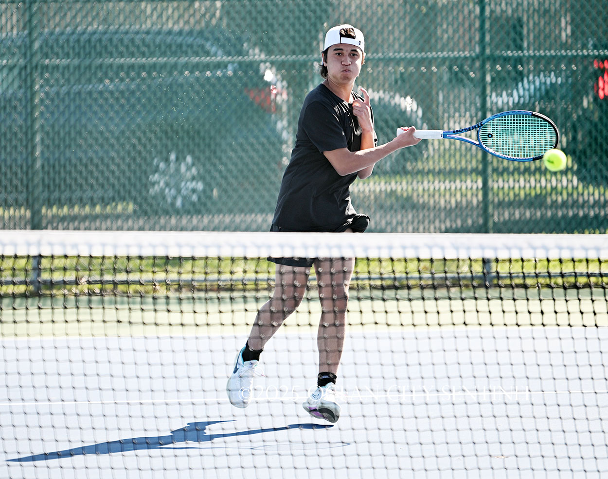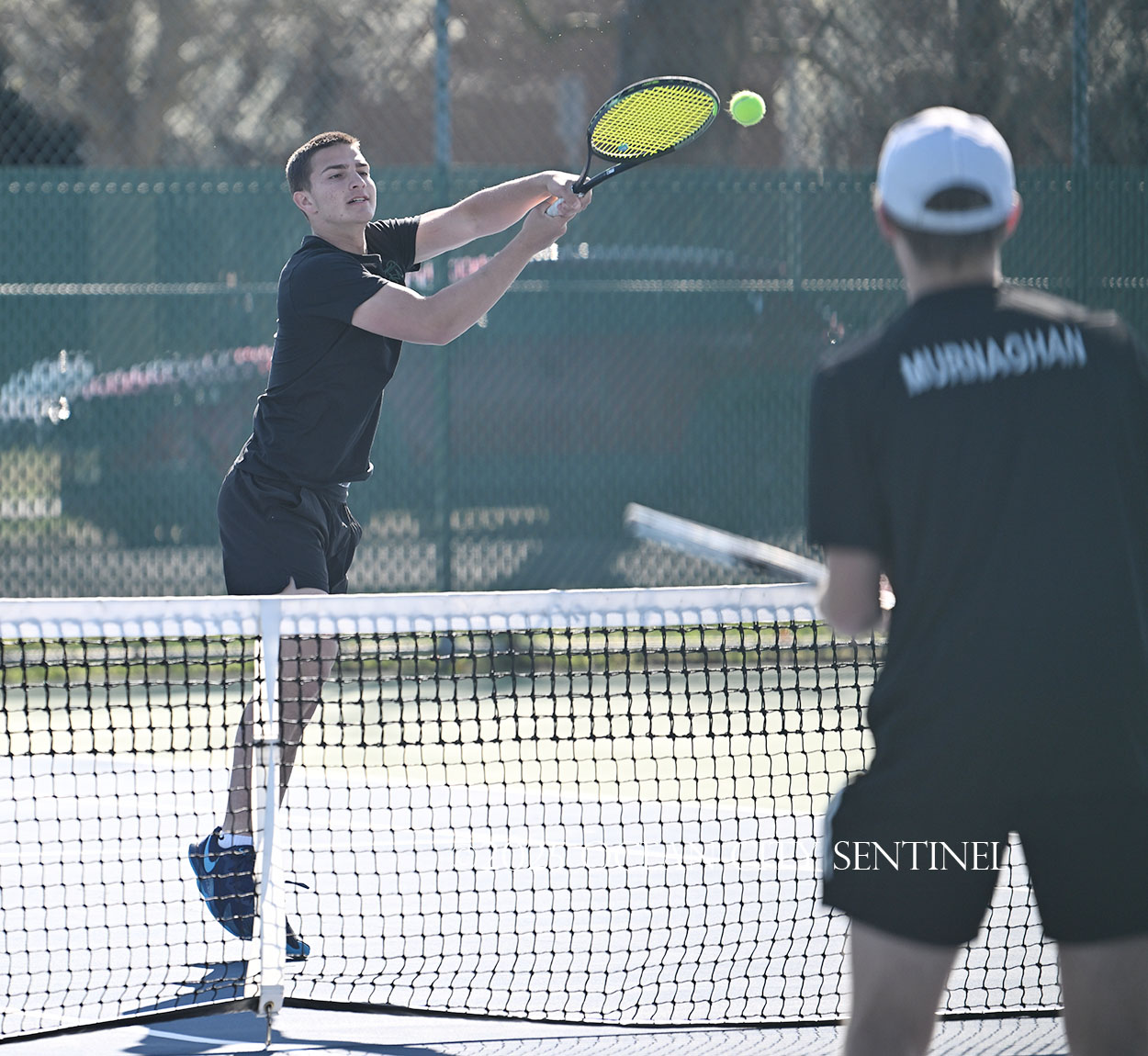 First doubles features senior Liam Angelo, who was second doubles last year. He is partnered with sophomore Laksh Patel, “who worked with Luigi all off-season … and improved tremendously. They’ve been playing very well together. They never played together before, but the chemistry has come along. They’ve done a real nice job together. They communicate well.”
