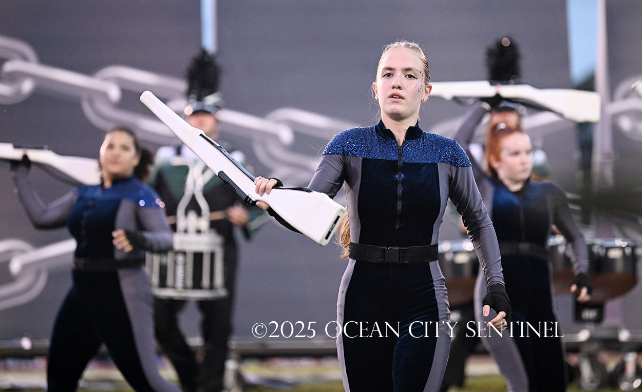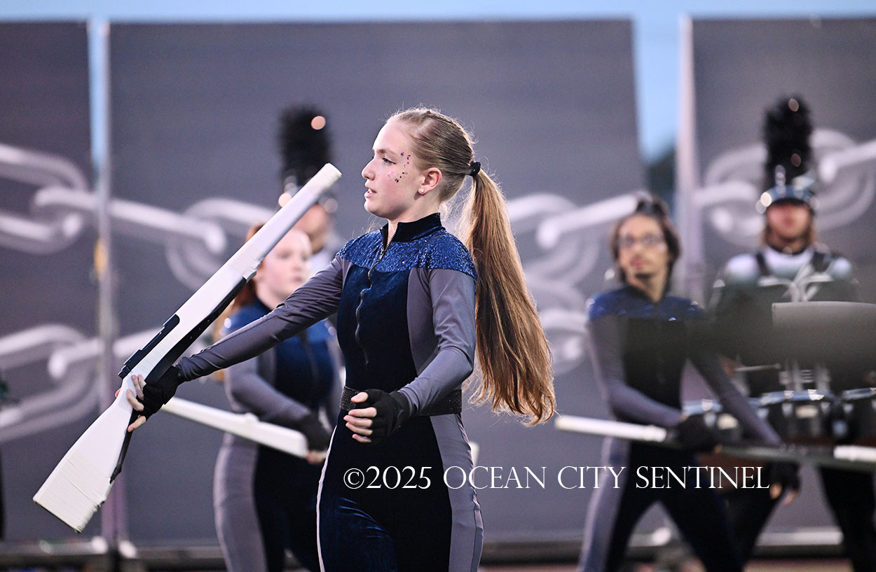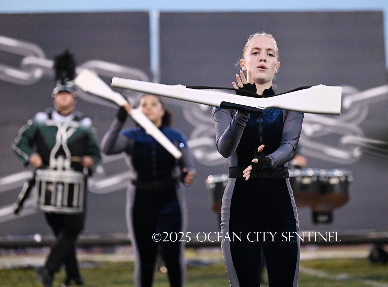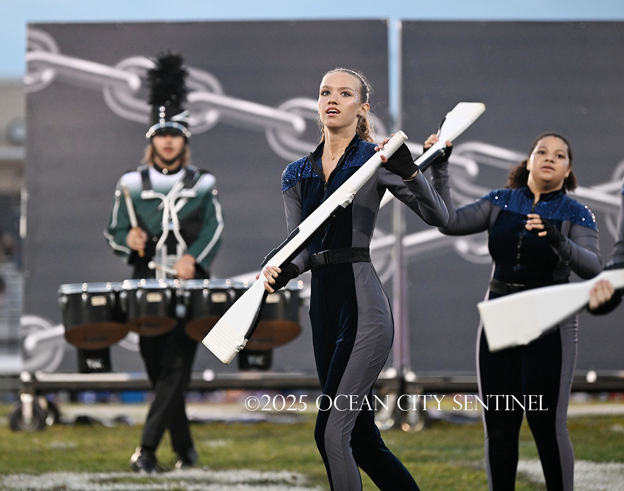 Continuing to earn higher scores, the band took first place Oct. 18 at Kingsway Regional High School with 81.9 points (Best Music, Best Visual, Best Overall Effect) and Oct. 25 at Egg Harbor Township High School (83.6), as well as captions for Best Music, Best Visual, Best Overall Effect.