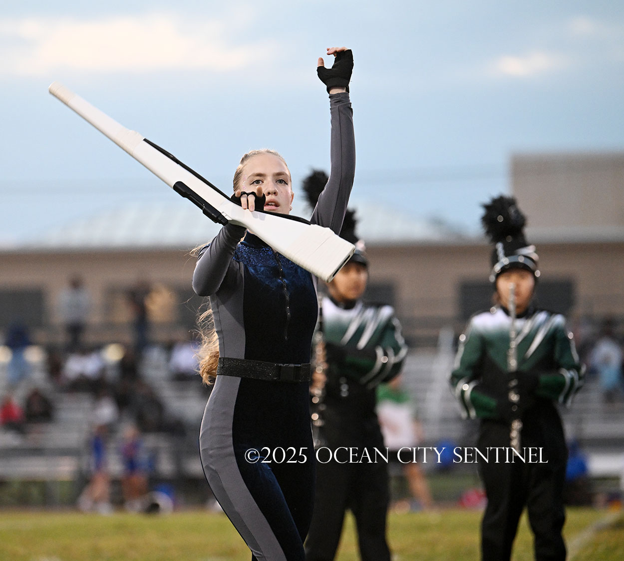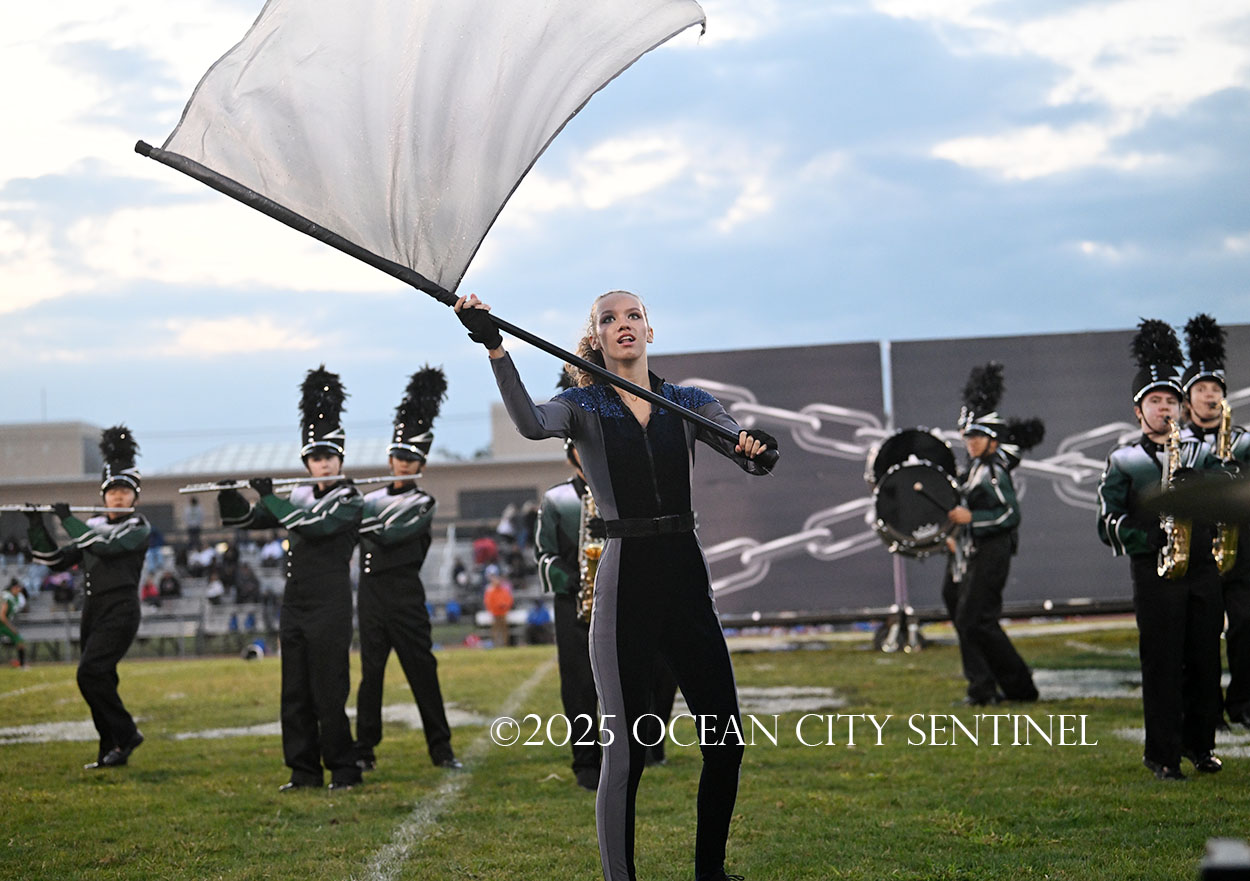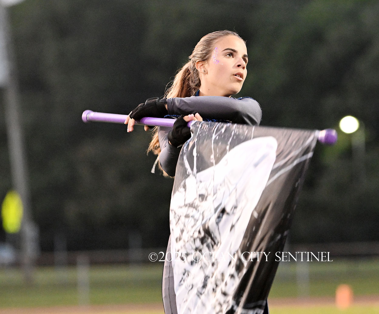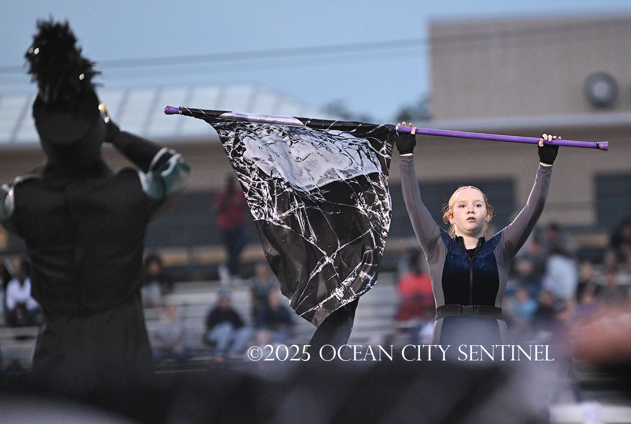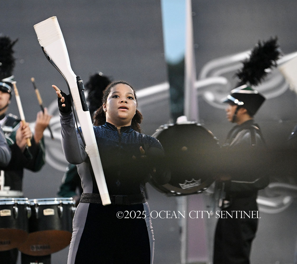 Continuing to earn higher scores, the band took first place Oct. 18 at Kingsway Regional High School with 81.9 points (Best Music, Best Visual, Best Overall Effect) and Oct. 25 at Egg Harbor Township High School (83.6), as well as captions for Best Music, Best Visual, Best Overall Effect.