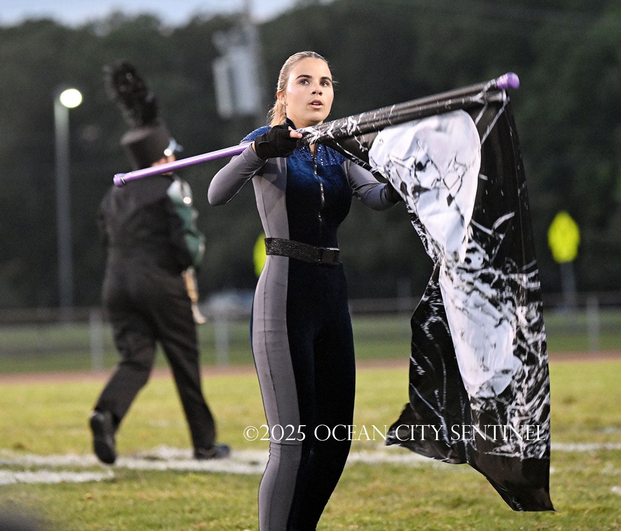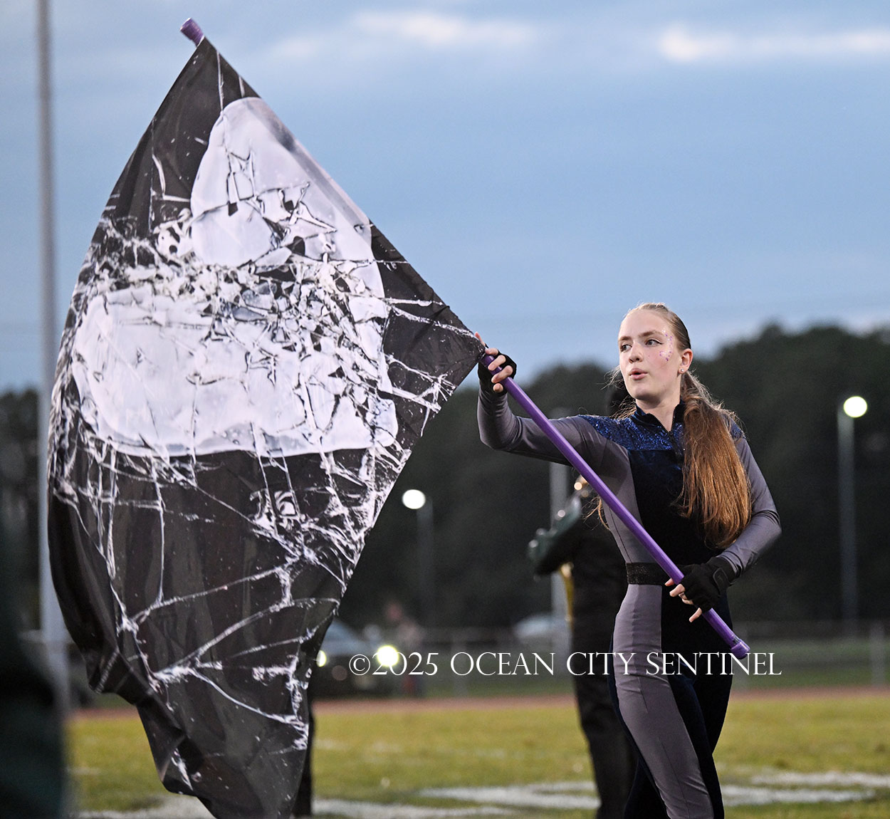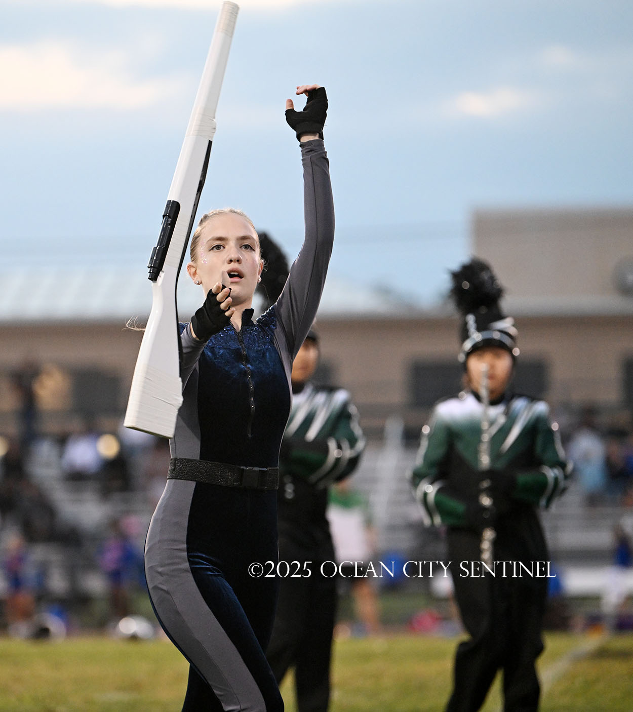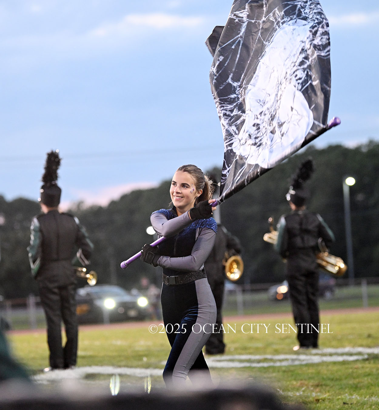 Continuing to earn higher scores, the band took first place Oct. 18 at Kingsway Regional High School with 81.9 points (Best Music, Best Visual, Best Overall Effect) and Oct. 25 at Egg Harbor Township High School (83.6), as well as captions for Best Music, Best Visual, Best Overall Effect.