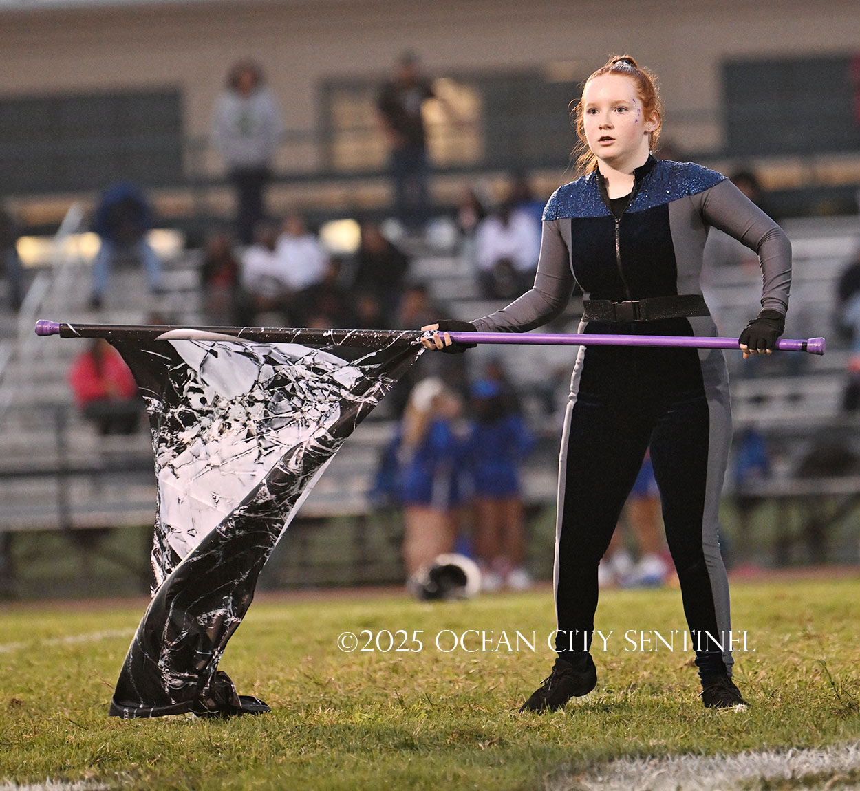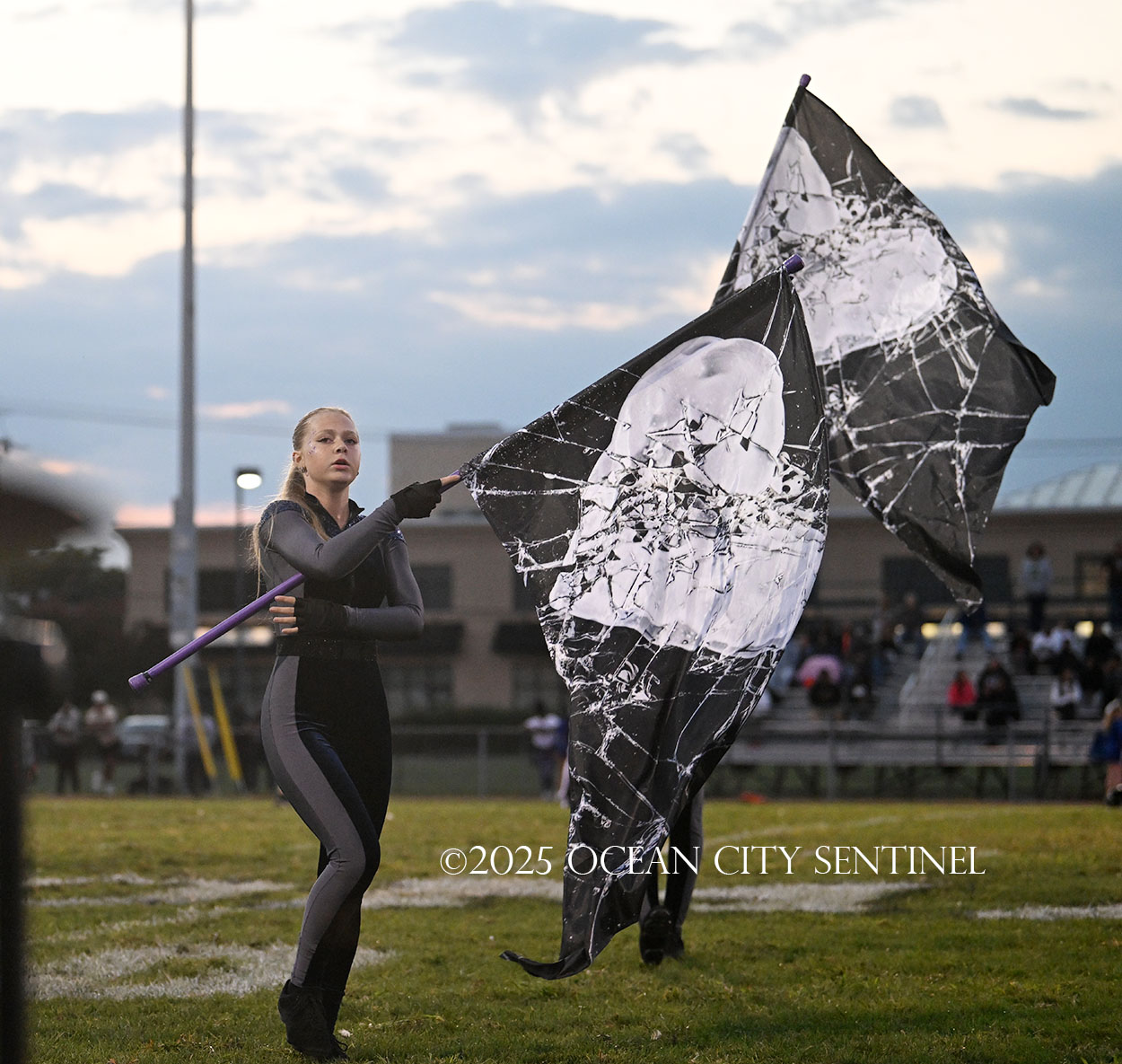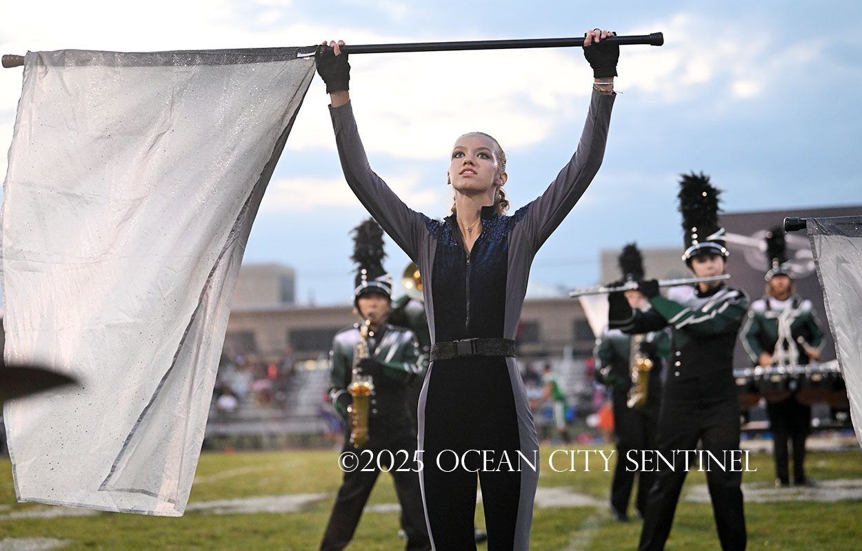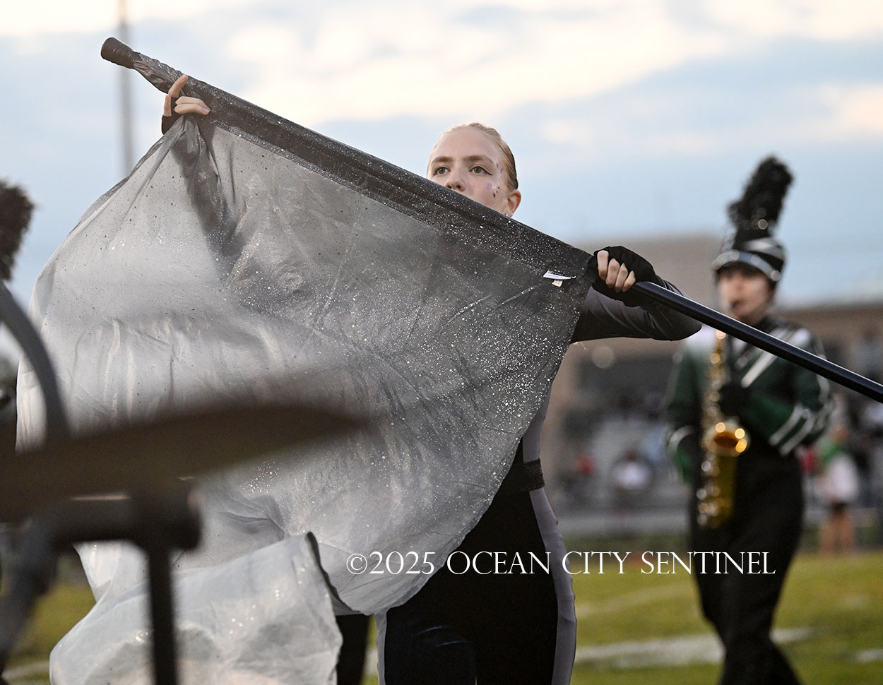 Continuing to earn higher scores, the band took first place Oct. 18 at Kingsway Regional High School with 81.9 points (Best Music, Best Visual, Best Overall Effect) and Oct. 25 at Egg Harbor Township High School (83.6), as well as captions for Best Music, Best Visual, Best Overall Effect.